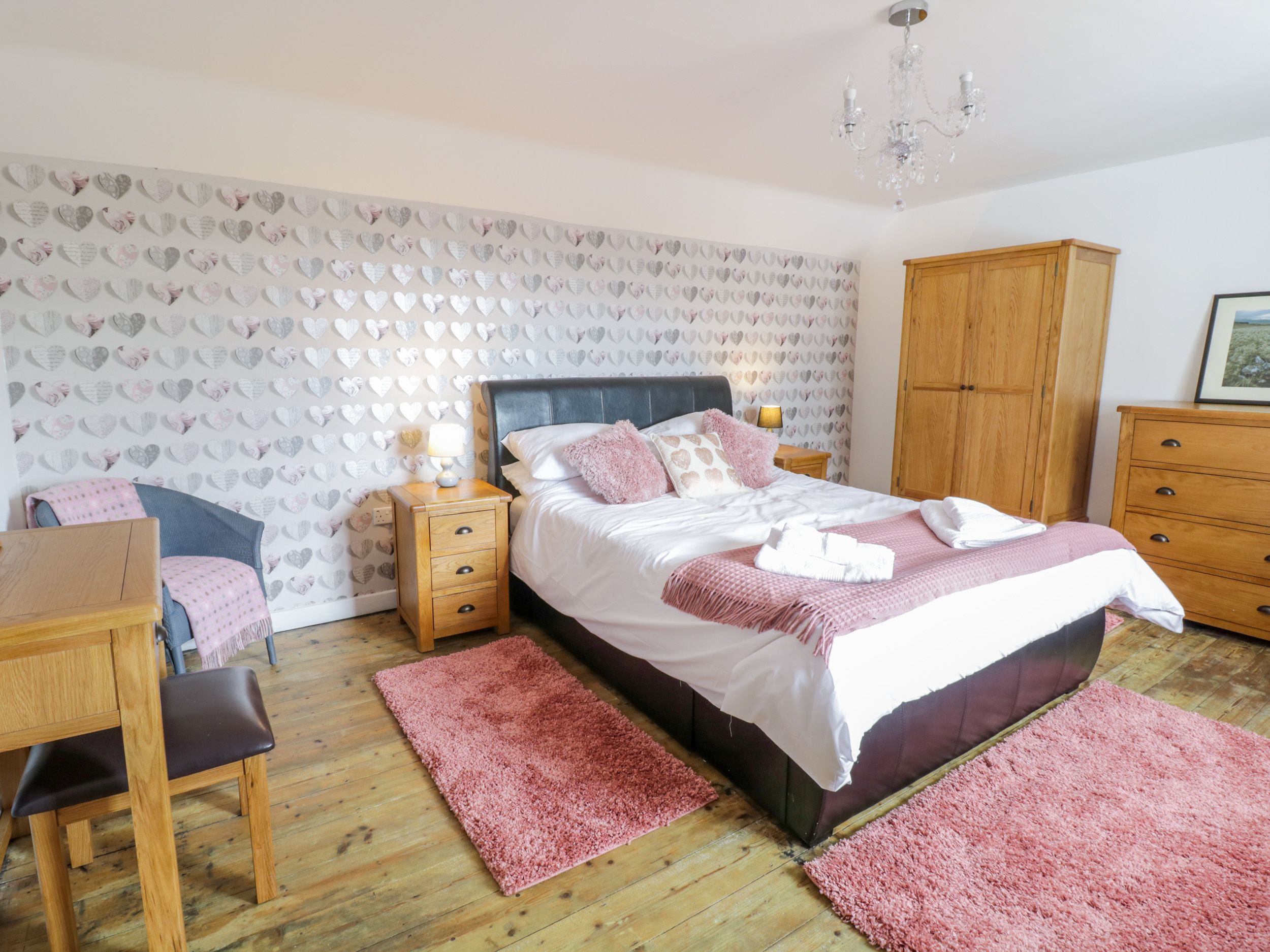 Over two floors. Four bedrooms: 1 x king-size double, 1 x double, 1 x single, 1 x family room with double, single and smart TV. Ground floor bathroom with bath, walk-in shower, basin, WC and Bluetooth mirror. First floor shower room with shower, basin, WC and shaving point. Kitchen with dining area and freeview TV. Sitting room with inglenook fire. Snug with electric fire has a Smart TV and Radio/CD player.