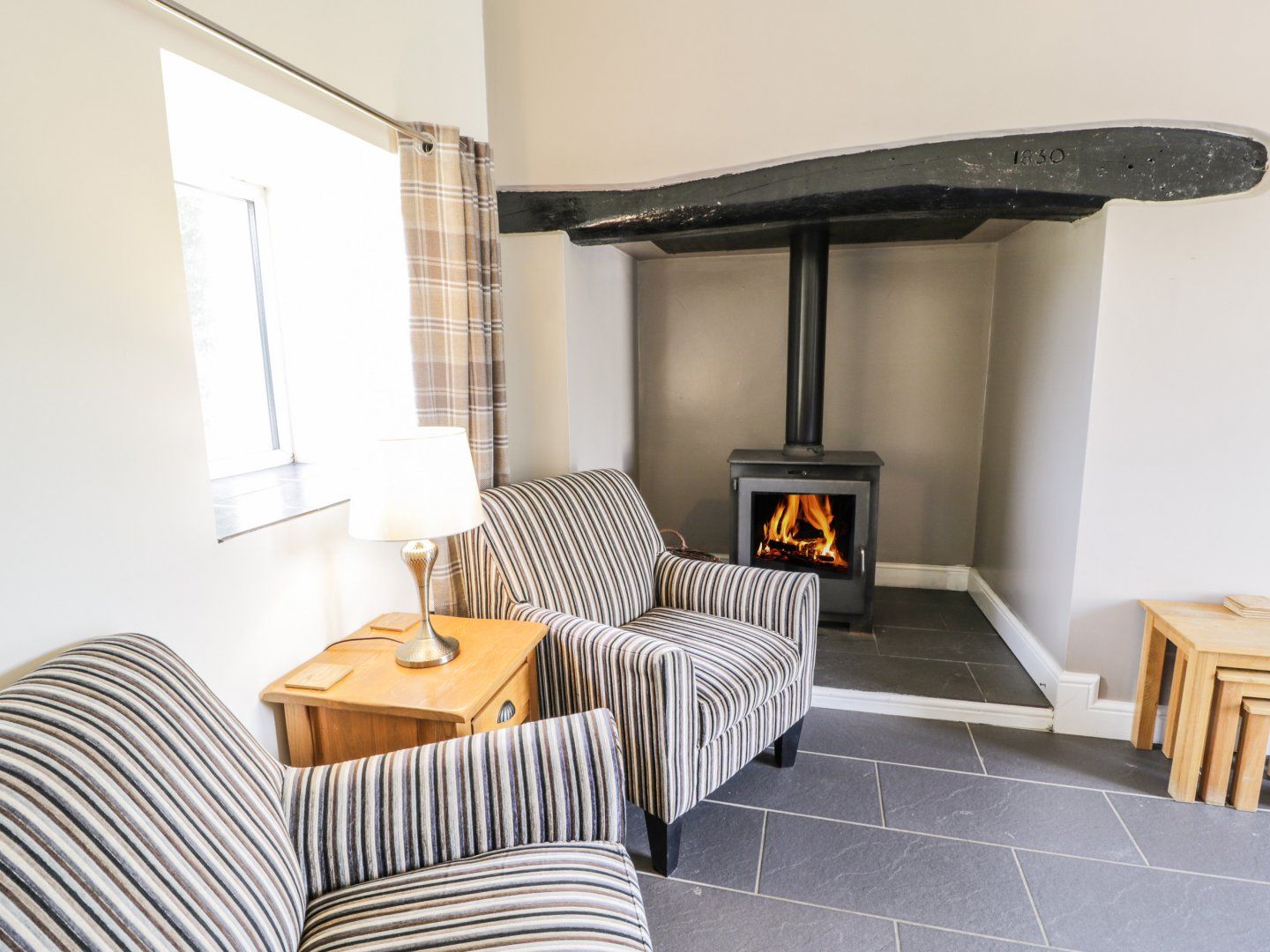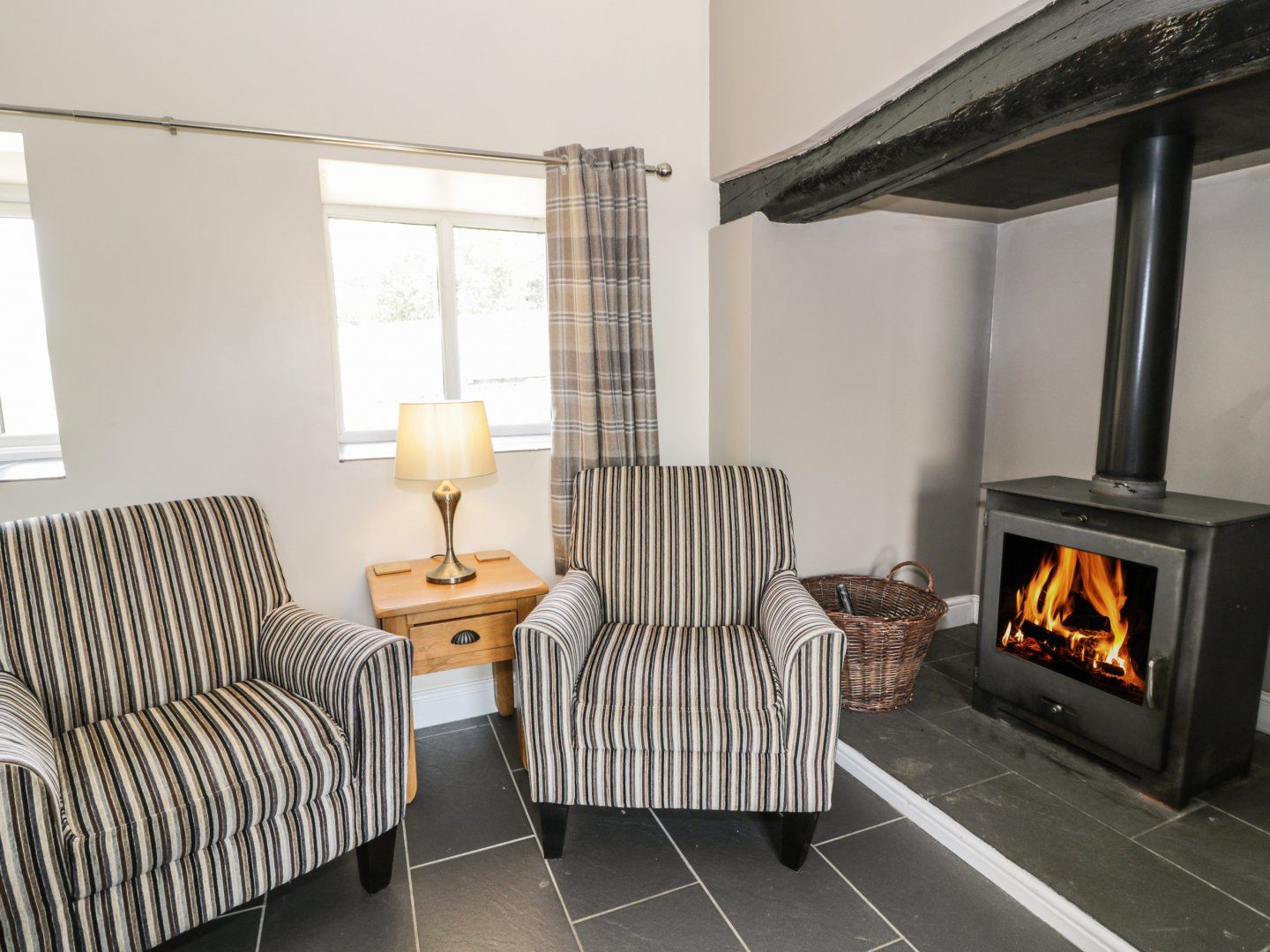 Accomodation Details Three bedrooms: 1 x double with TV and Firestick, 1 x ground-floor double with TV and Firestick, 1 x ground-floor twin with TV and Firestick. Ground-floor bathroom with bath, shower over, double basin and WC. Kitchen. Dining room. Sitting room with woodburning stove. Garage with utility/games room