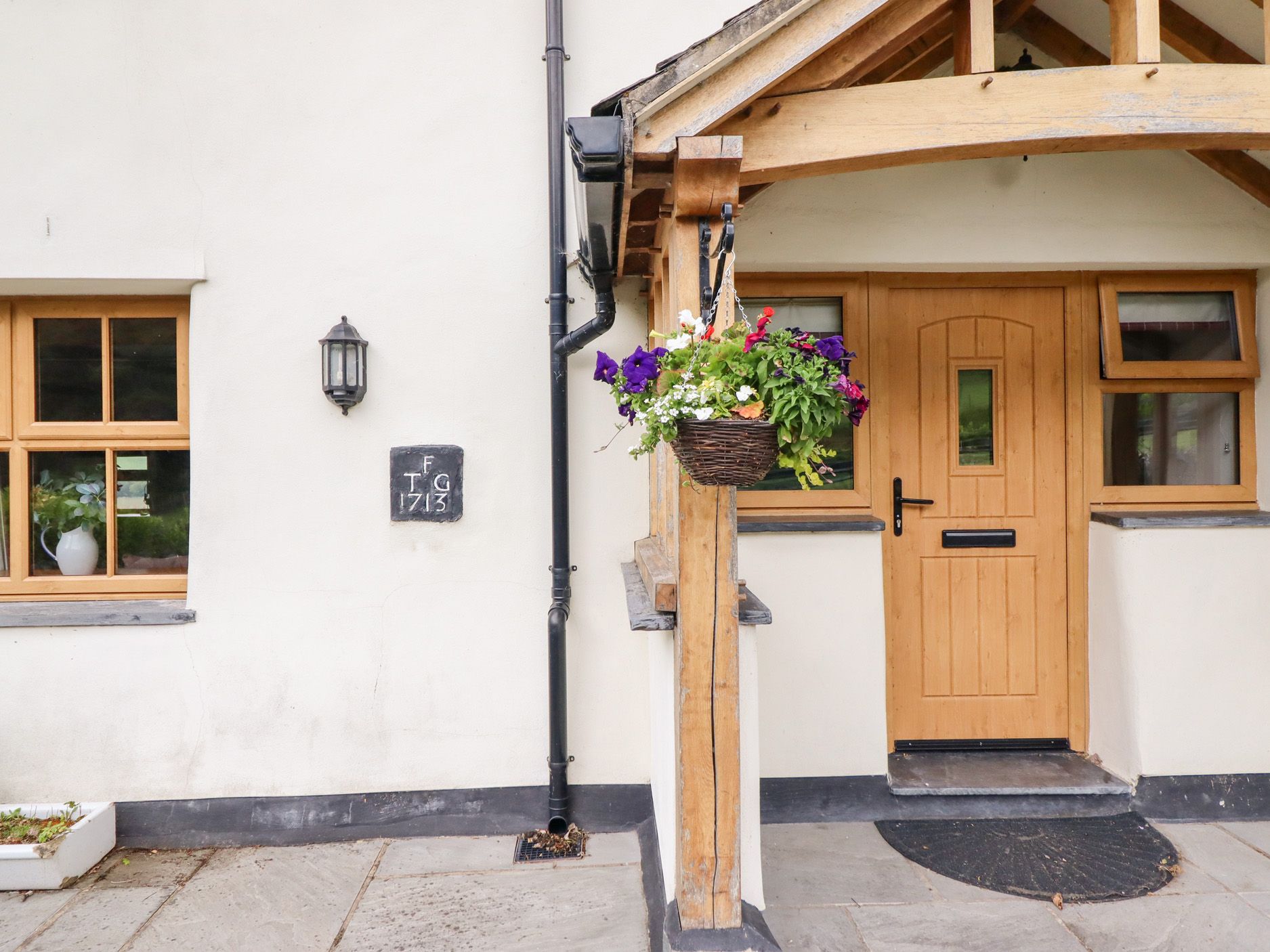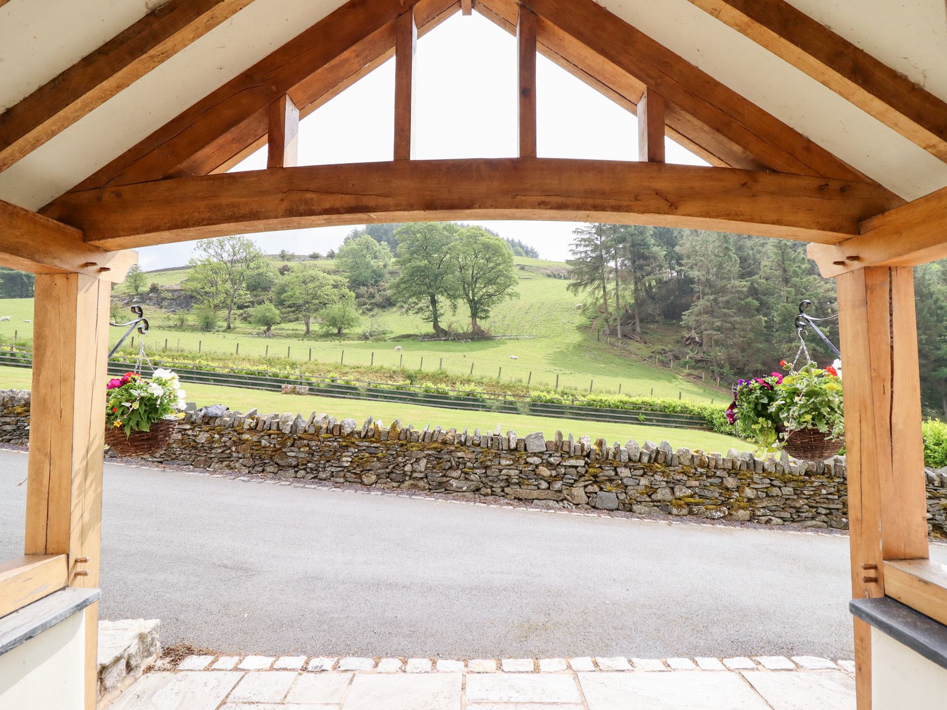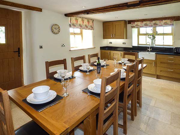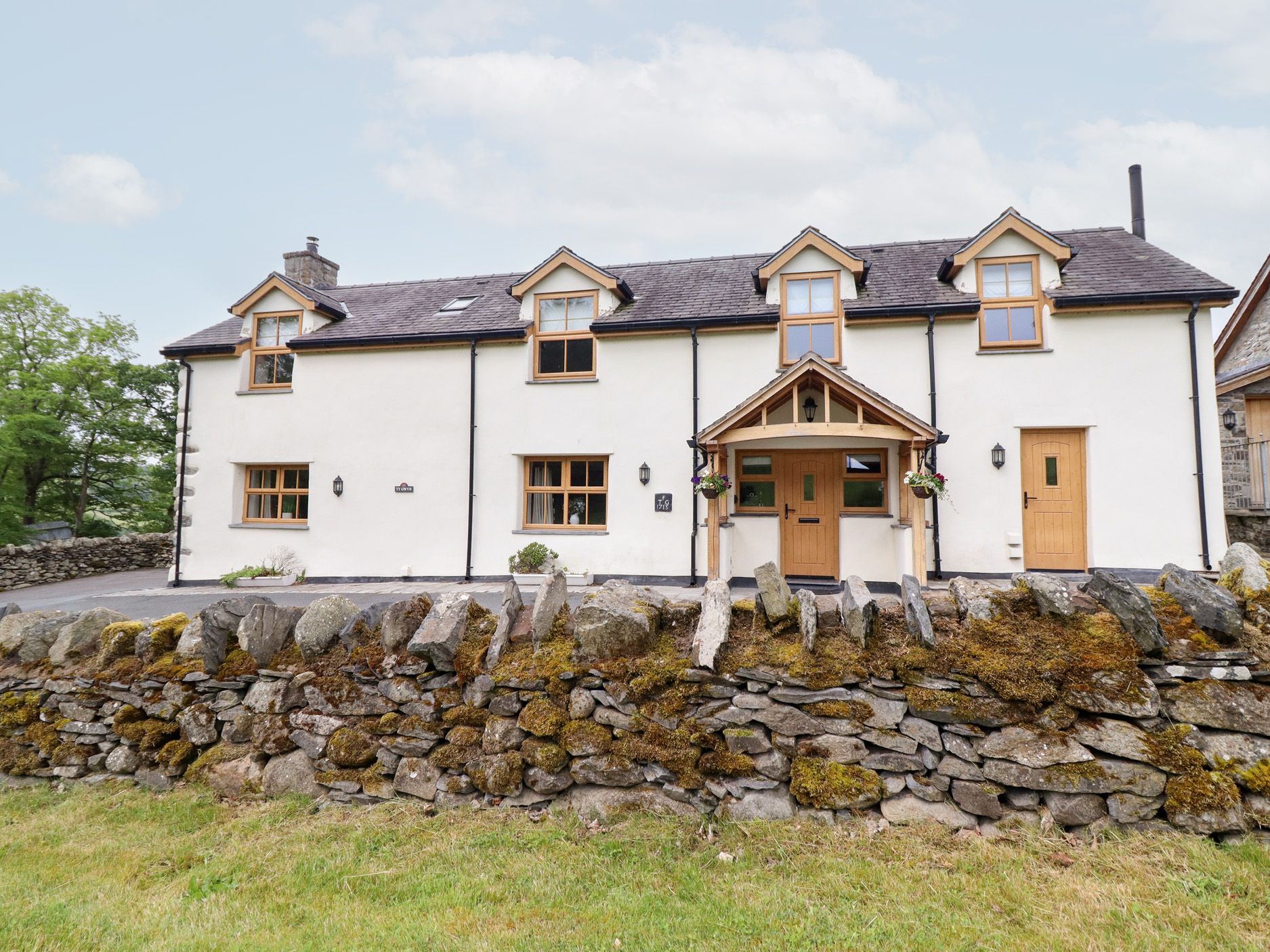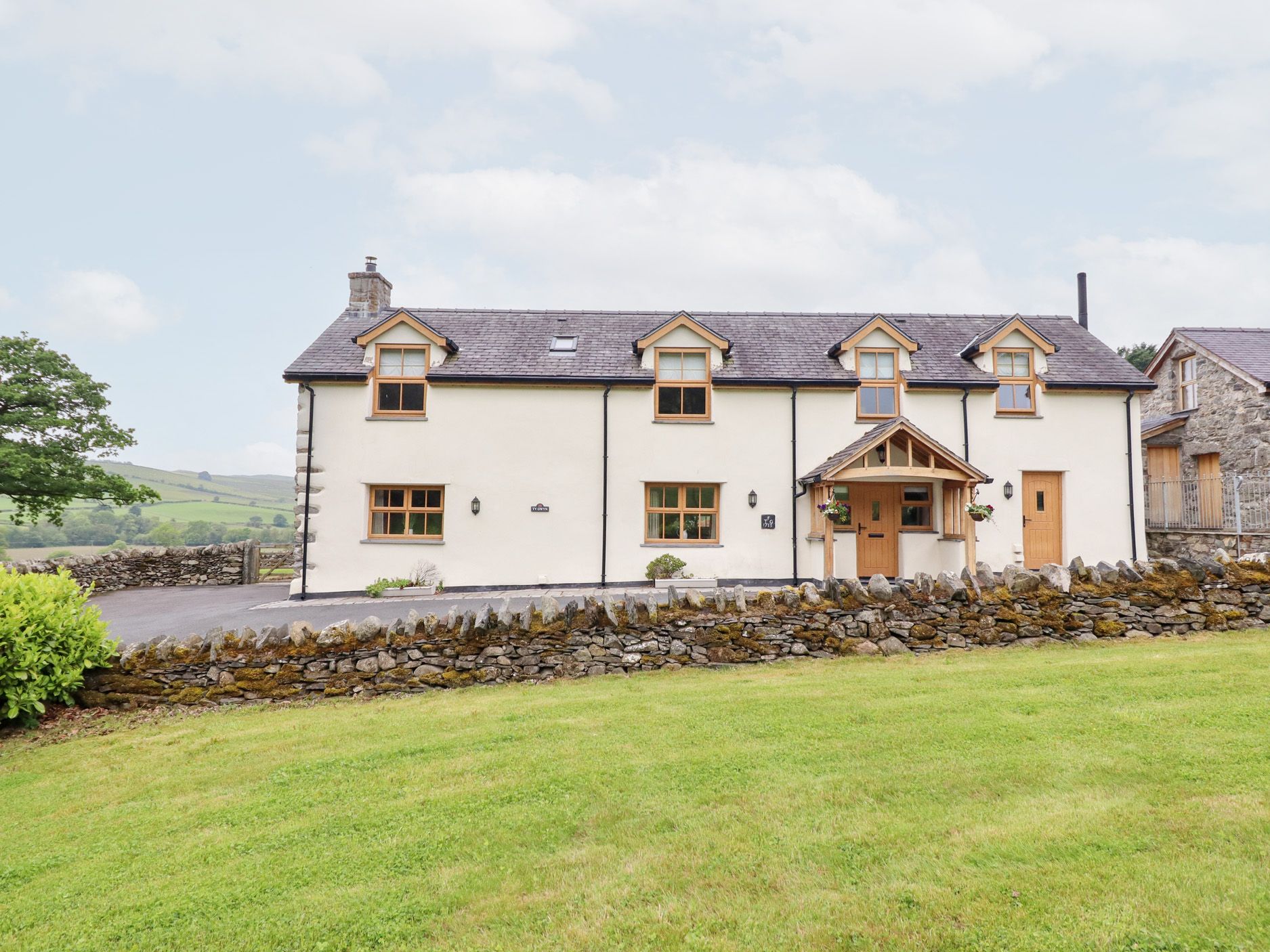 Holiday home Ty Gwyn is a wonderful, stylish, detached stone farmhouse, just two miles from Llangwm, between Llangollen and Betws-y-Coed, and can sleep ten people. There is a super king-size double bedroom with an en-suite shower room, two king-size double bedrooms (one with an en-suite shower room), a family room with four single beds with a dressing room and an en-suite shower room, a family bathroom, a ground floor basin and WC, a kitchen with dining area, a utility room and a sitting room with a woodburner. Outside there is off road parking for three cars, a lawn and patio with a hot tub, furniture and a barbecue and there is also a shared picnic bench area by the stream. Ty Gwyn is a wonderful base for your family holiday.