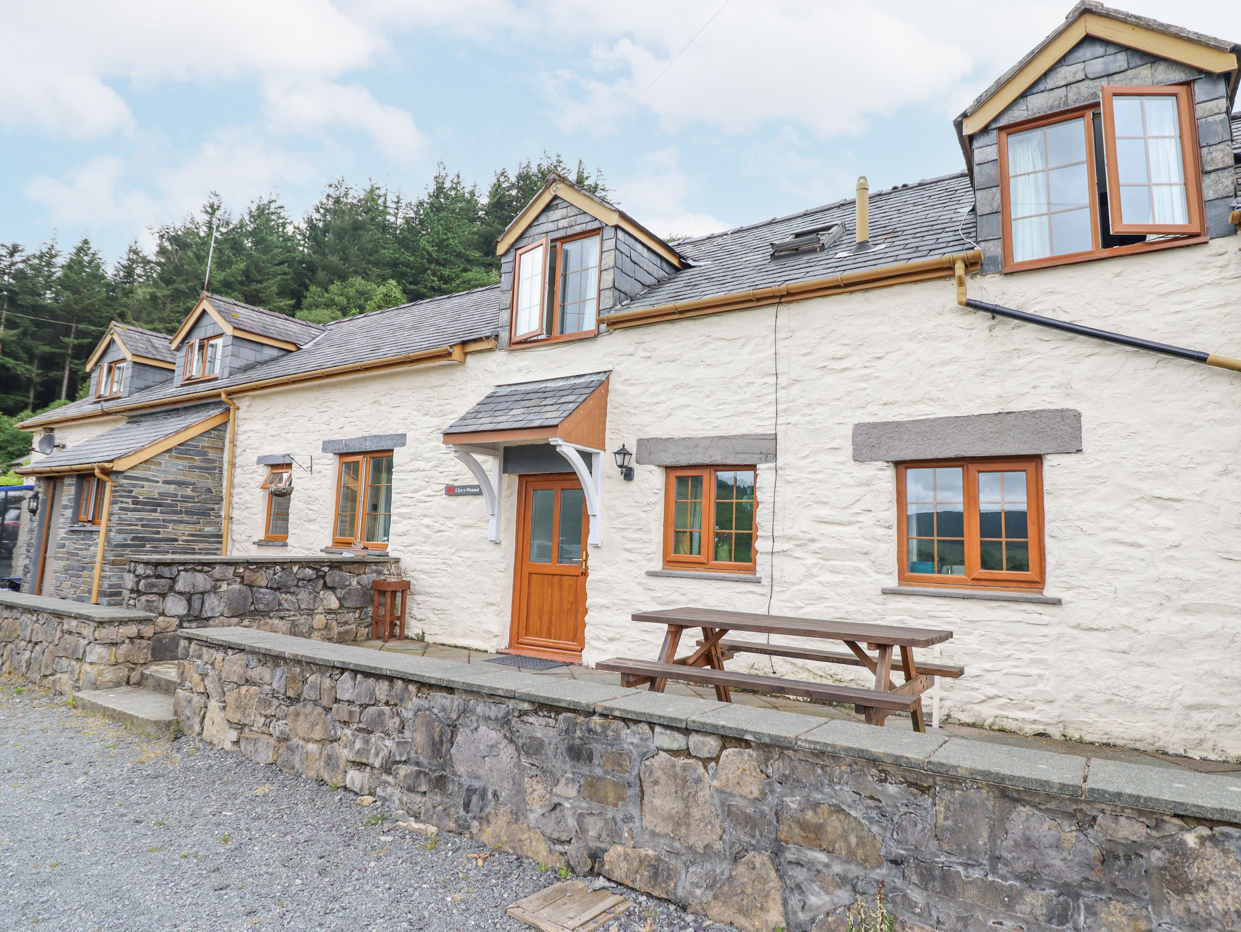Holiday home Llys-y-Wennol has one double and a twin room serviced by a shower room with walk-in shower, basin and WC. There’s a kitchen/diner equipped with an electric oven and hob, microwave, fridge with ice box, washing machine, kettle and toaster, and a sitting room with a Smart TV. Oil central heating, WiFi, fuel and power, bed linen and towels are included in the rent. A highchair, stairgate and travel cot are available on request. Outside there’s off-road parking for up to 3 cars and a non-enclosed front terrace and picnic bench. One well-behaved dog welcome, an additional pet is welcome upon agreement. Sorry, no smoking. Shop and pub 1.1 miles. A lovely retreat awaits at Llys-y-Wennol. Note: There are two steps up to the front terrace and entrance. Note: Please bring your own dog blanket and do not let pets on the furniture or bedrooms
