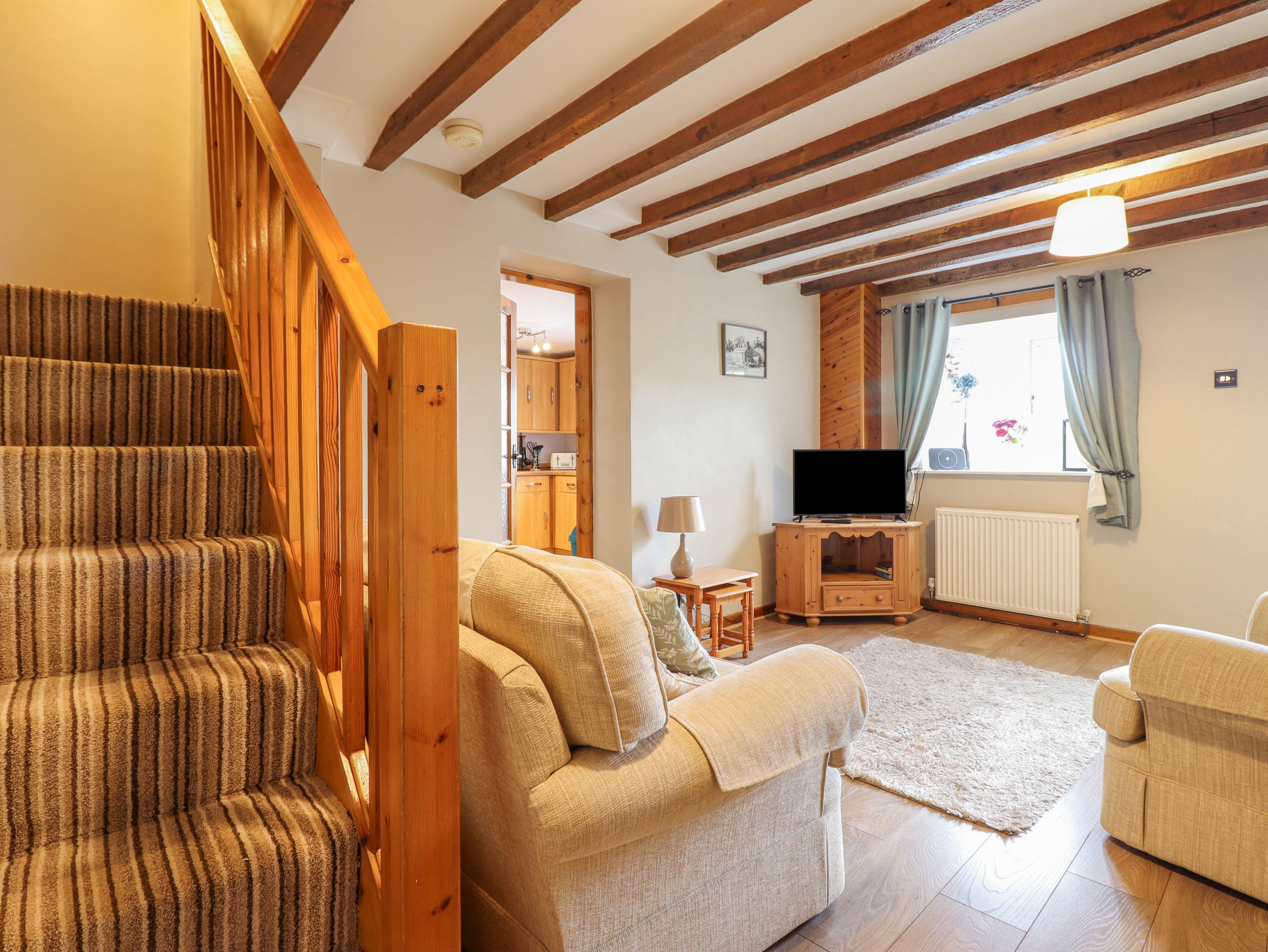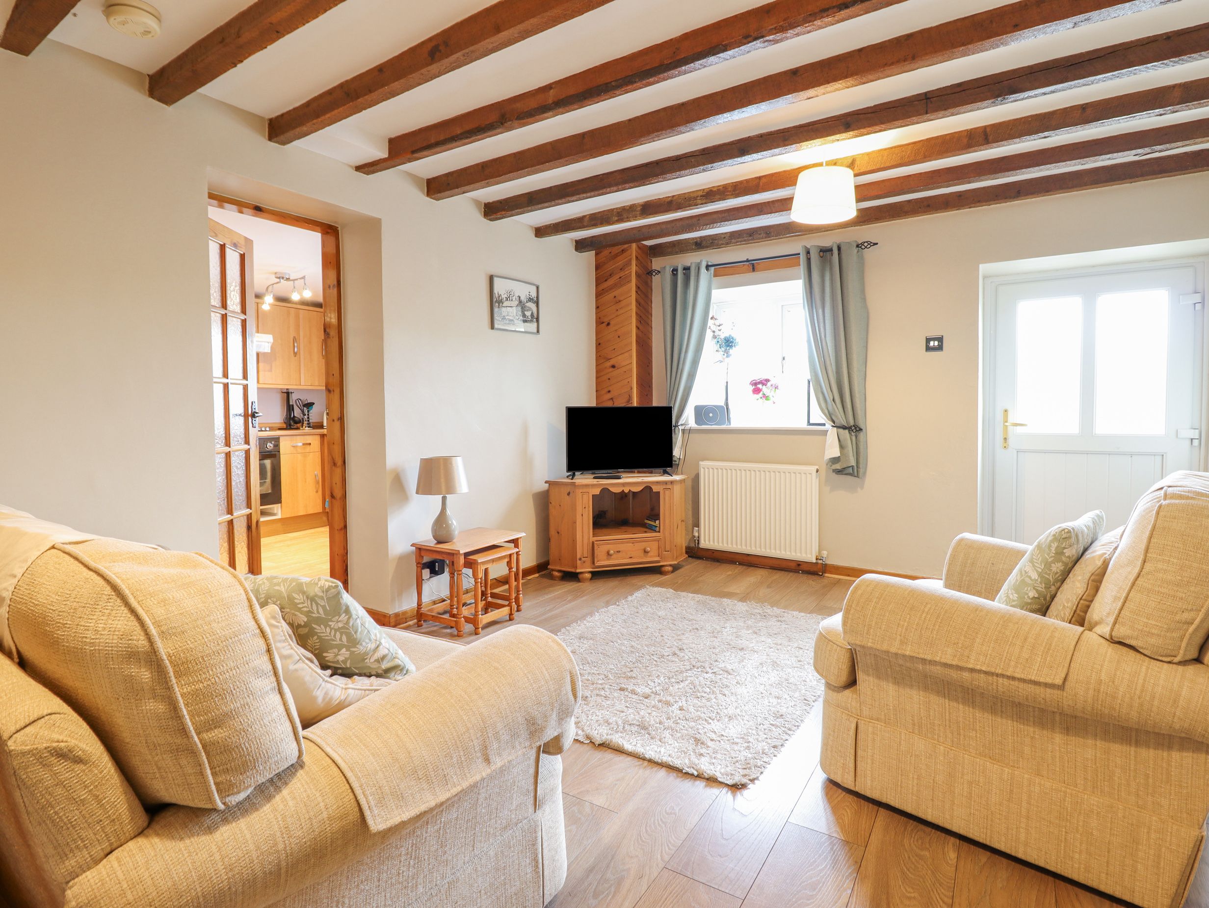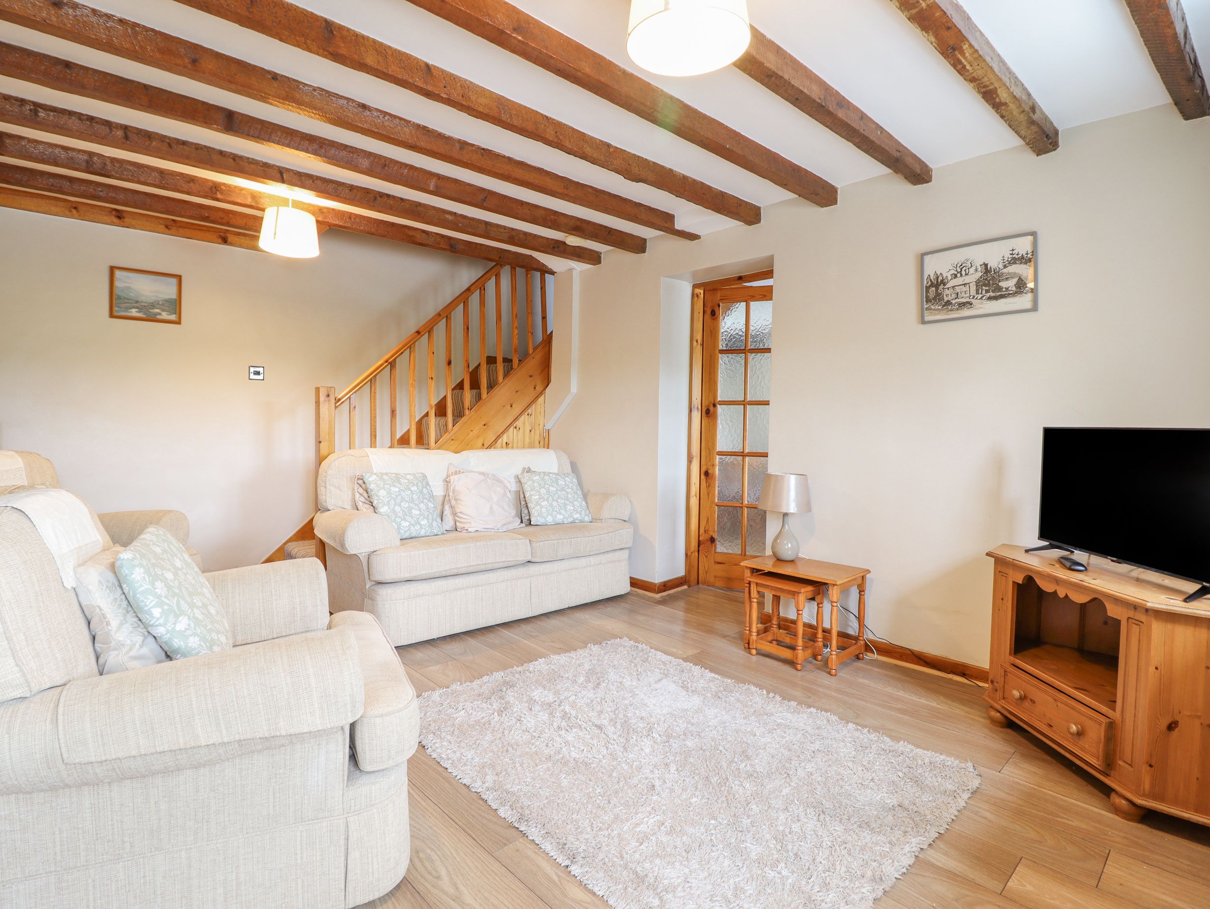 Amenities Oil central heating. Electric oven and hob, microwave, fridge with ice box, washing machine, kettle and toaster. Smart TV, WiFi. Fuel and power inc. in rent. Bed linen and towels inc. in rent. Highchair, stairgate and travel cot available on request. Off-road parking for up to 3 cars. Non-enclosed front terrace and picnic bench. One well-behaved dog welcome, an additional pet is welcome upon agreement. Sorry, no smoking. Shop and pub 1.1 miles. Note: There are two steps up to the front terrace and entrance. Note: Please bring your own dog blanket and do not let pets on the furniture or bedrooms. Note: Please keep dogs on a lead outdoors due to the livestock on the farm.