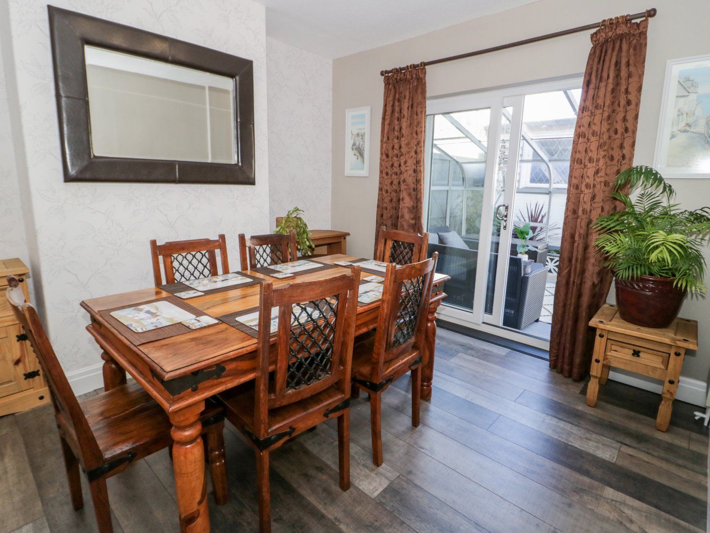 Accomodation Details Three bedrooms: 1 x king-size with TV, 1 x twin, 1 x single. Bathroom with bath, shower over, basin, towel rail, and WC. Kitchen. Dining room. Sitting room. Garden room
