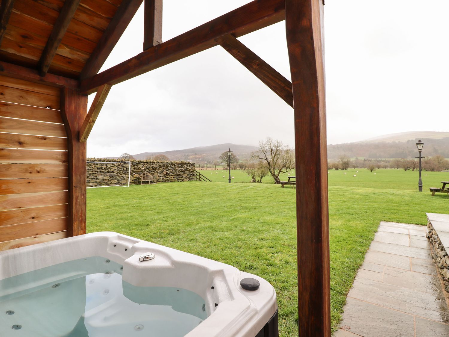 Holiday home The Barn is a beautiful cottage located in Corwen, Denbighshire. Hosting five bedrooms; a king-size with en-suite bathroom, and three doubles and a twin, all with en-suite shower rooms. Inside, there is also a cloakroom, and an open-plan sitting, kitchen and dining area with breakfast bar. To the outside is ample off-road parking, and a patio with hot tub, barbecue, and furniture. Within 0.3 miles, you will find a shop and pub. Please note, this property is pet-free and non-smoking. WiFi, fuel, power, bed linen, and towels are all included in the rent. Highchair and travel cot available on request. The Barn is a magnificent cottage in an outstanding part of Wales. Note: Split-level landing. Note: Check-in from 5pm, check-out by 10am. Note: Low door frames in bedrooms. Note: Good WiFi for general browsing. Note: No music played after 10.30 pm. Note: Group bookings need to be over the age of 25. Note: Parasols are not provided or permitted. Note: Drones at the properties is not permitted. Note: No hen/stag/ similar group parties.