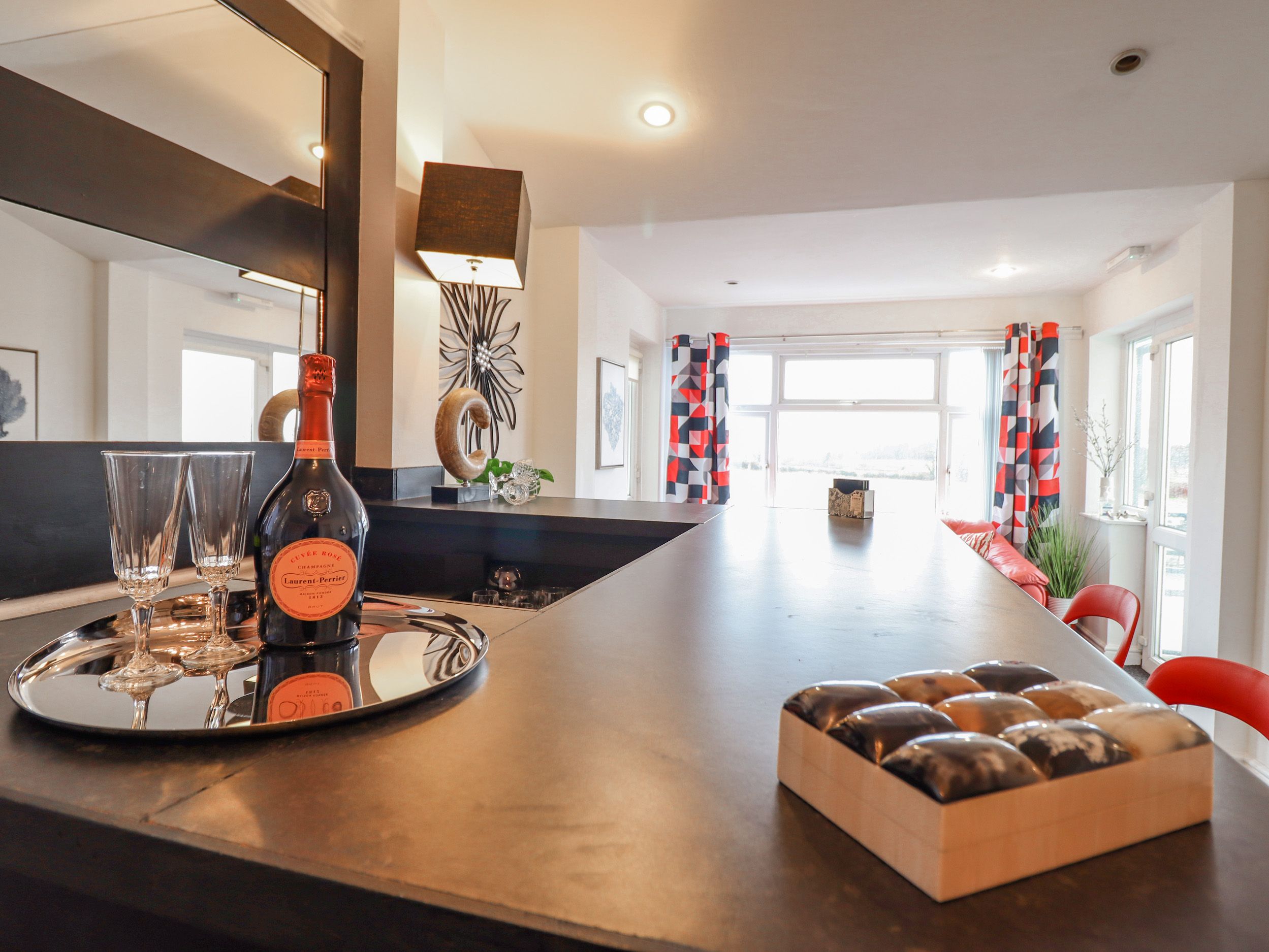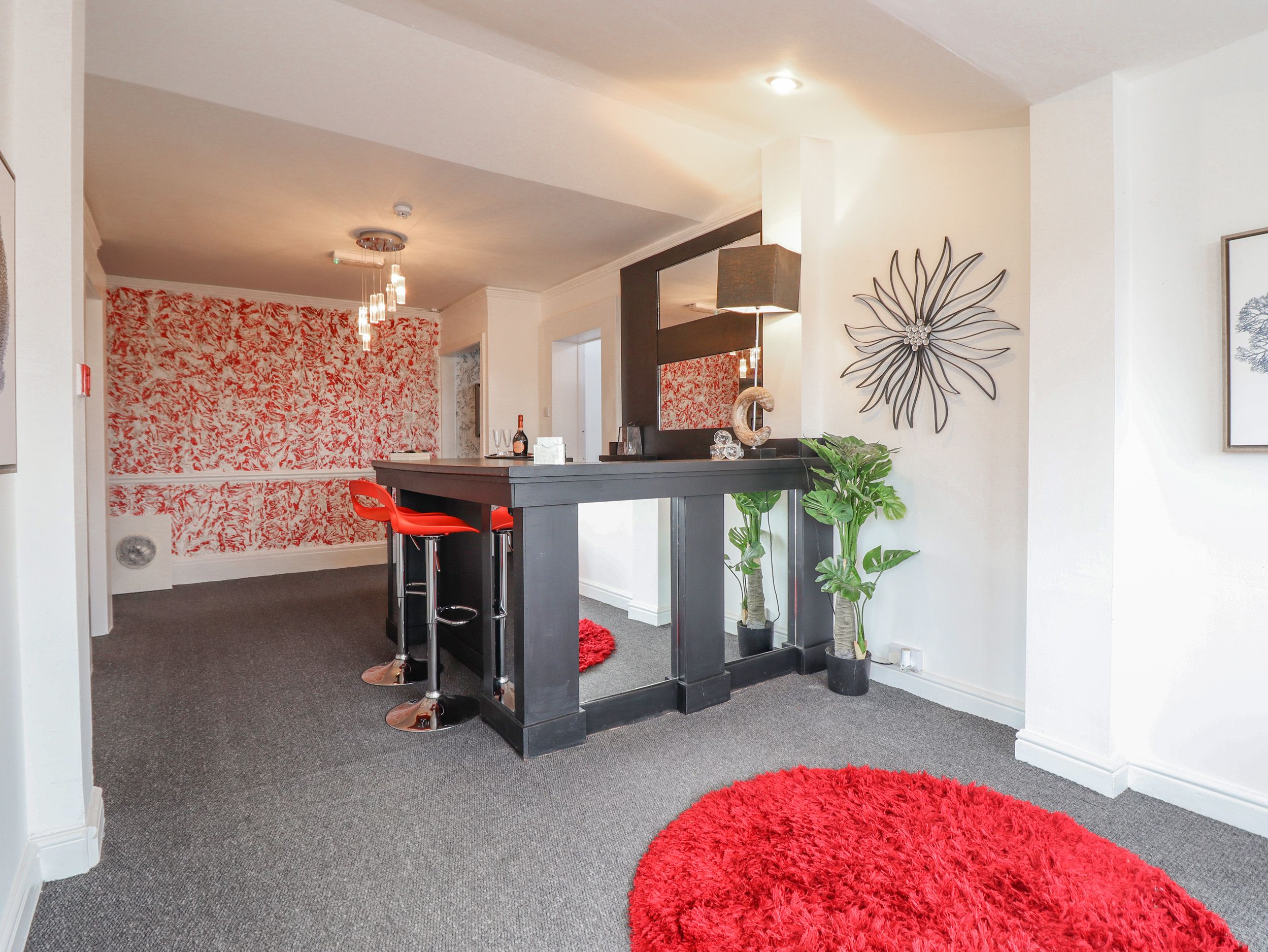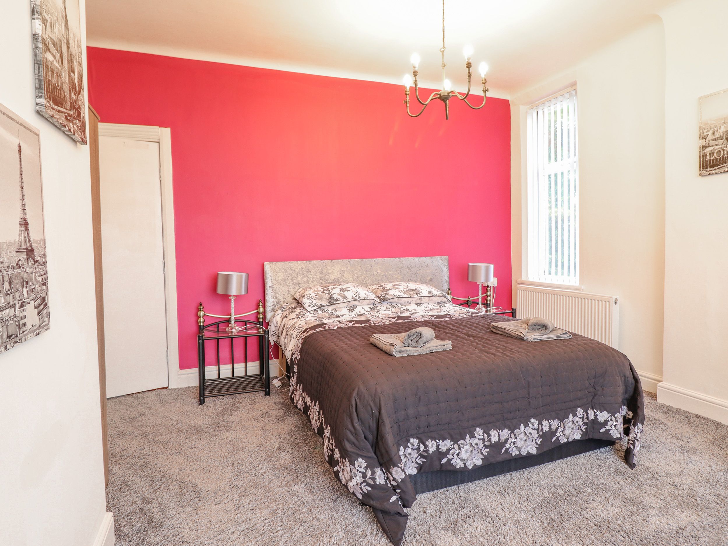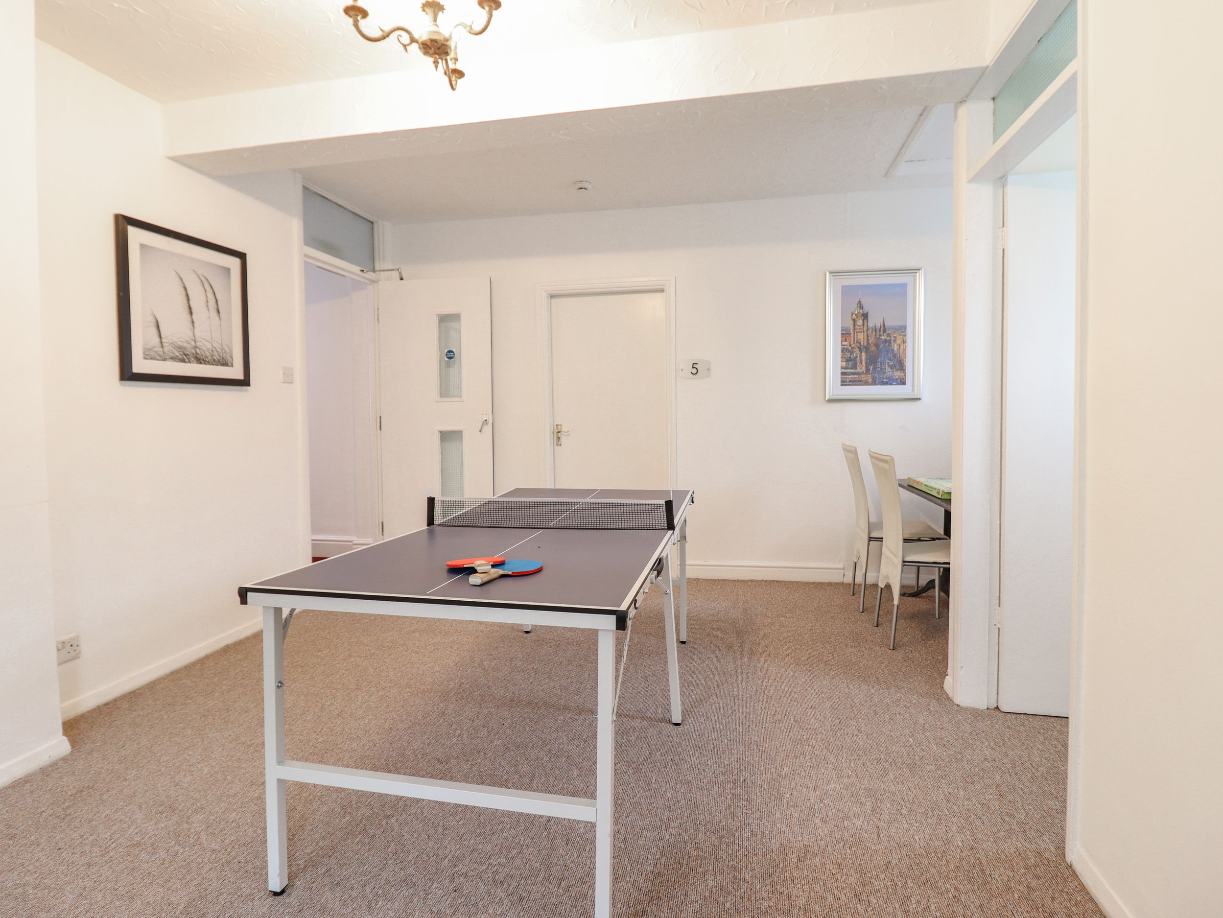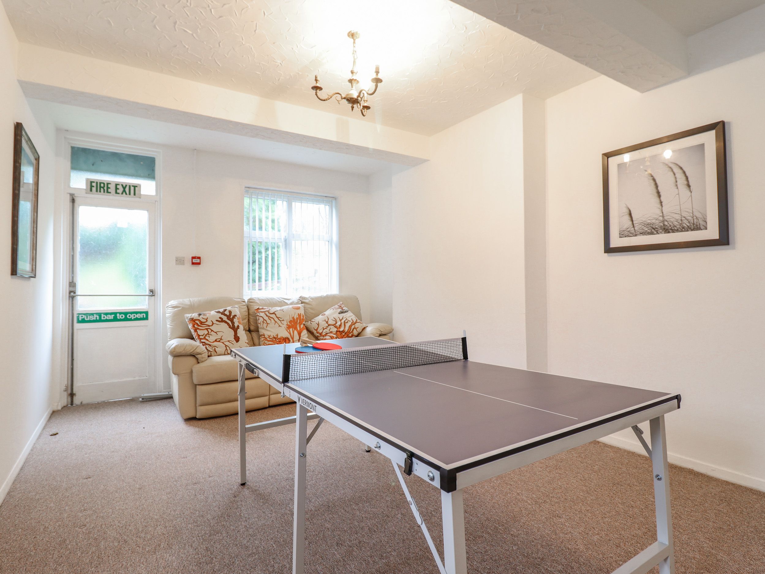 Accomodation Details Semi-detached property. Over three floors. Nine bedrooms. Ground floor: 1 x double with en-suite basin and WC. First Floor: 1 x king-size with en-suite shower, basin and WC, 1 x bunk bed with en-suite basin and WC (bunks are not suitable for adults), 1 x double with en-suite shower, basin and WC, 1 x double with basin and WC, 1 x double (zip/link, can be twin on request) with Jack-and-Jill bath, walk-in shower, basin and WC, 1 x double with basin and WC. Second floor: 1 x double with en-suite bath, basin and WC, 1 x double with ensuite shower and curtain, basin and WC. Ground-floor wet room with hand-held shower, basin and WC. First floor: Jack-and-Jill bathroom with bath, shower, basin and WC. Kitchen/diner (seats 12). Kitchen offers an electric oven and 4 ring touch hob, an extra 2 ring touch hob, a combi microwave/oven, air fryer, 2 x fridge/freezer and a dishwasher. Dining room with electric fire. Sitting room with electric fire. Snug/reading room. Reception/bar area with drinks fridge and ice maker. First-floor games room. Second-floor sitting room (seats 4)