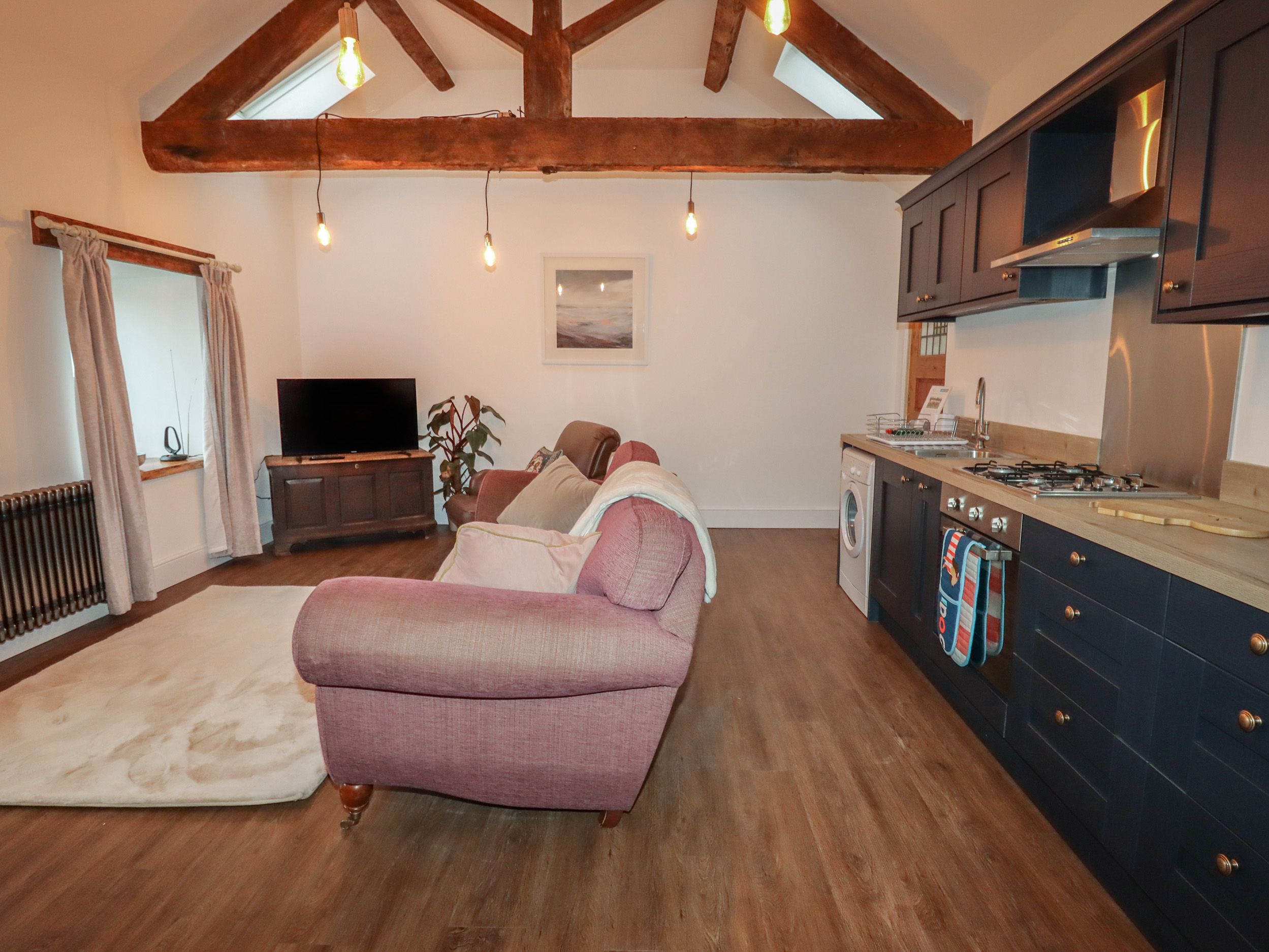 Holiday home The Old Parlour consists of an open-plan living space with a kitchen with electric oven, gas hob, fridge, washing machine, dining space, and sitting area with Smart TV. There is a king-size bedroom with en-suite shower room. Outside there is an enclosed rear courtyard with furniture, plus off-road parking for one car. Within 1.5 miles you will find a shop, and within 1.6 miles, a pub, and within 5 miles a beach. Sorry, no pets and no smoking. WiFi, fuel, power, bed linen, and towels included in the rent. Explore Denbighshire with a stay at The Old Parlour. Please Note: The owner does not take bookings longer than 2 weeks