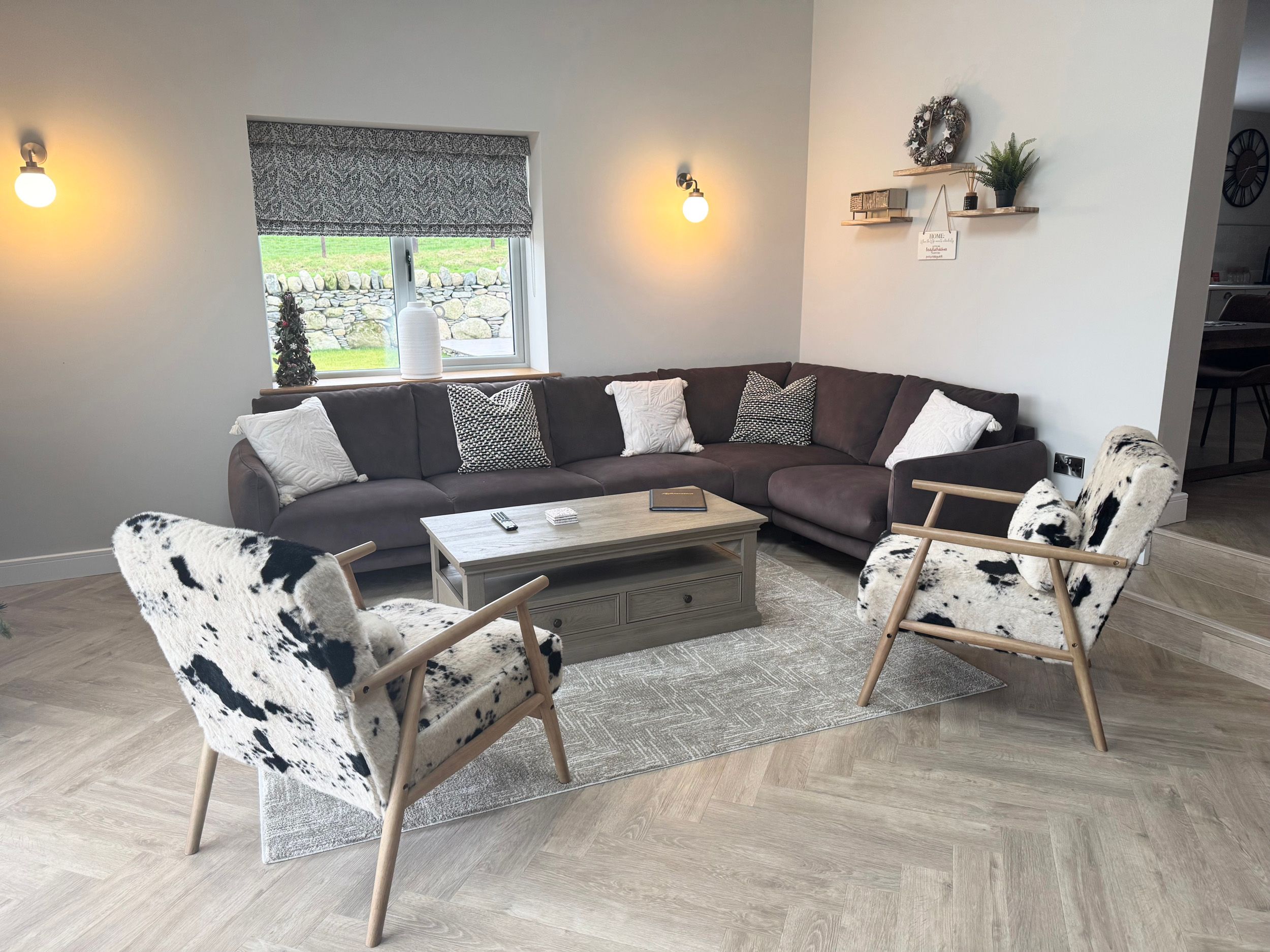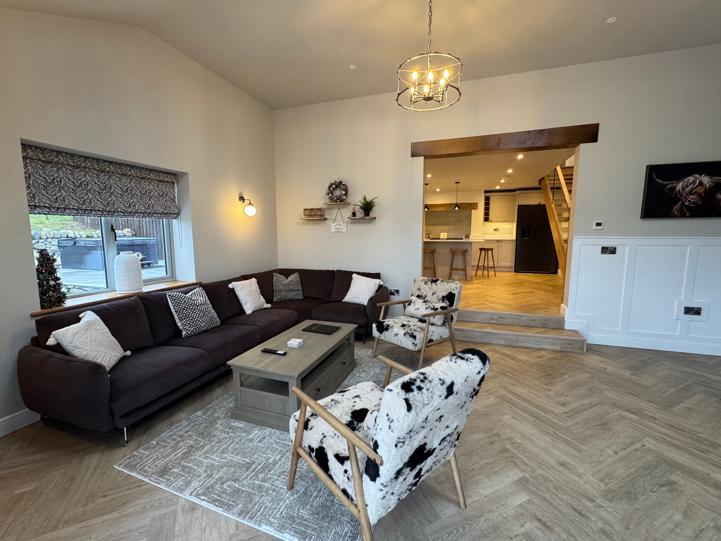 Accomodation Details Three bedrooms: 1 x king-size with freestanding bath and en-suite with walk-in shower, basin, heated towel rail and WC, 1 x king-size with en-suite with walk-in shower, basin, heated towel rail and WC, 1 x ground-floor family room with king-size and single day bed. Ground-floor bathroom with bath, walk-in shower, basin and WC. Kitchen/diner. Utility. Sitting room with electric fire