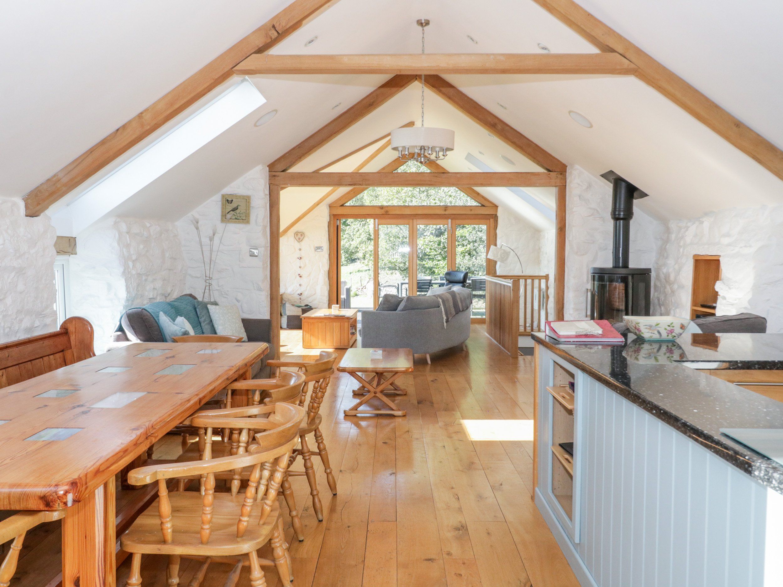 Accomodation Details Four bedrooms: 1 x king-size double, 1 x double, 1 x ground floor double, 1 x twin. Bathroom with corner bath, shower, basin and WC. Ground floor shower room with shower, basin and WC. Kitchen with dining area and comfy seating with woodburning stove. Utility. Sitting room with woodburning stove. Conservatory.