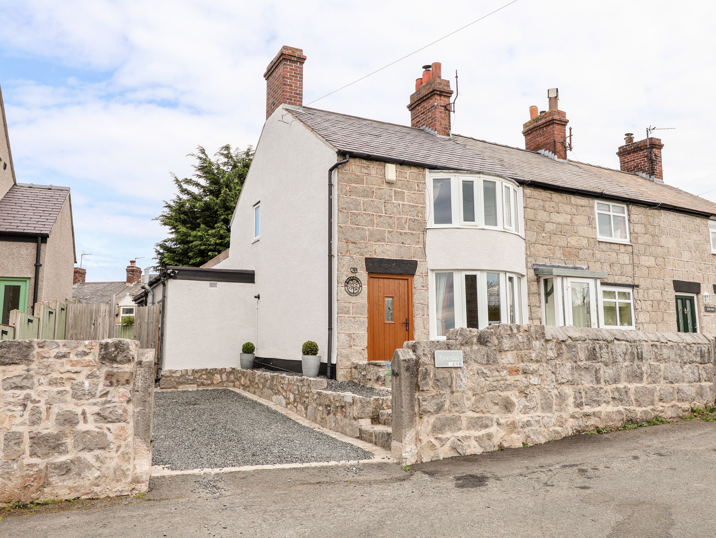 Holiday home The living areas in this home consist of a kitchen/diner with an electric oven, gas hob, microwave, and fridge with ice box, a utility with washing machine and dishwasher, a dining room, and a sitting room with woodburning stove and Smart TV. The bedrooms consist of a king-size and a twin, serviced by a ground-floor bathroom. Outside there is a front garden with astroturf and furniture, an enclosed rear garden with astroturf, patio, and furniture, off-road parking for one car, and further roadside parking. Two well-behaved dogs welcomed, btu sorry, no smoking. WiFi, fuel, power, bed linen and towels are all included in the price. You'll find a shop in 0.3 miles, a pub in 0.1 miles, and the river in 0.3 miles. Riverdale is a charming base for a Denbighshire escape. Note: Please contact the owners for additional pets Note: There are steps and an unfenced drop to the exterior of the home; please be careful. Note: Low doorways throughout the home; please be careful.