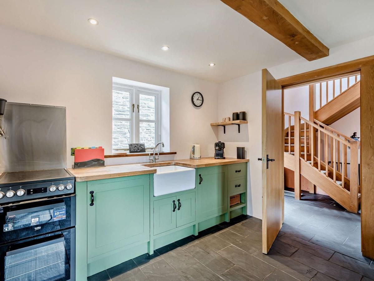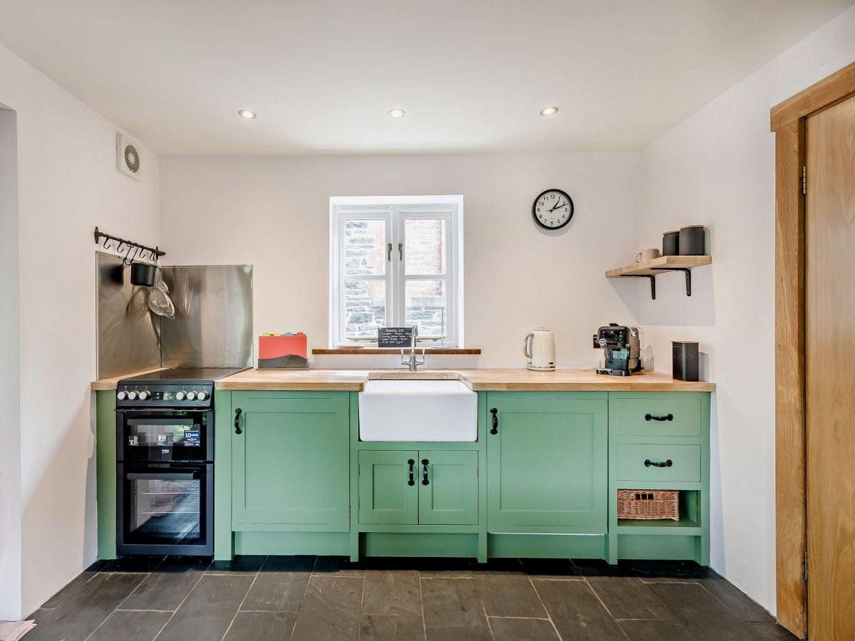 It has an enclosed, decked and terraced private garden and is next to the owner’s one-acre garden, and you’ll find scenic walks, pretty towns, and the River Clyweldg nearby.