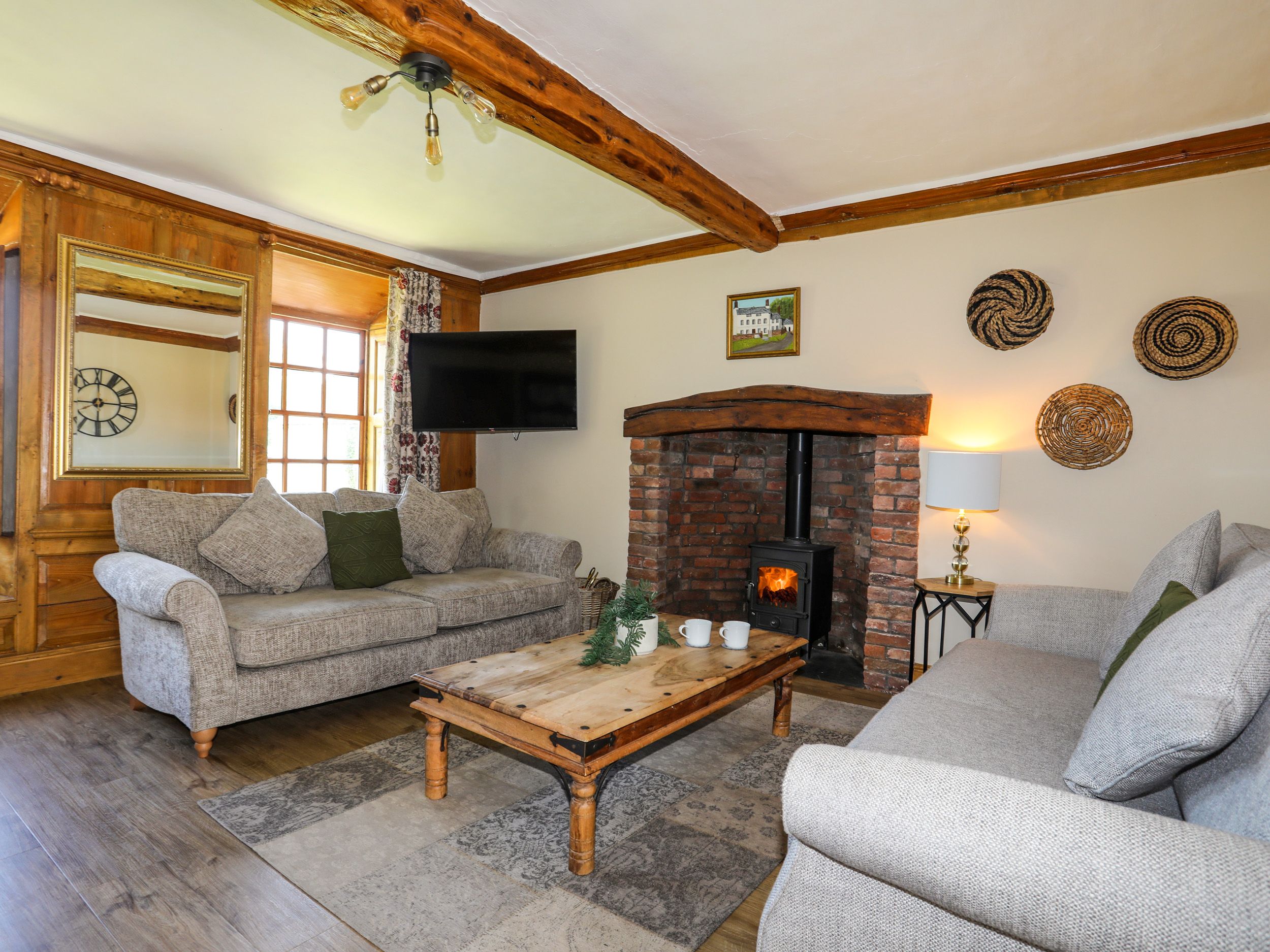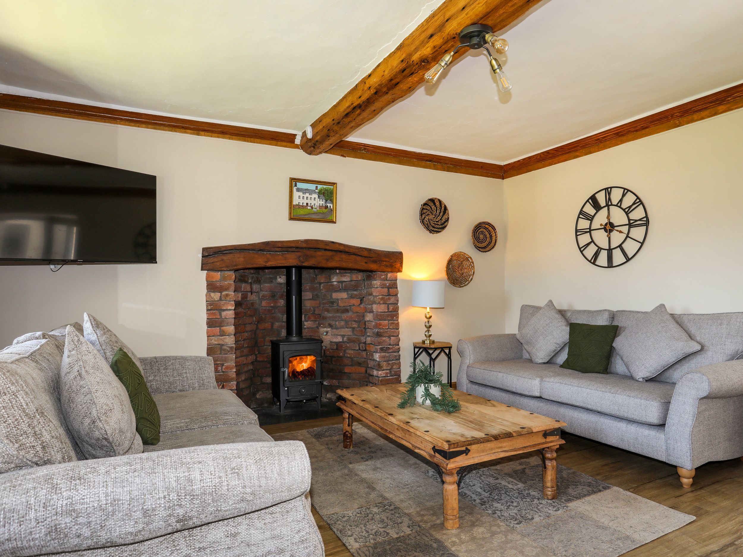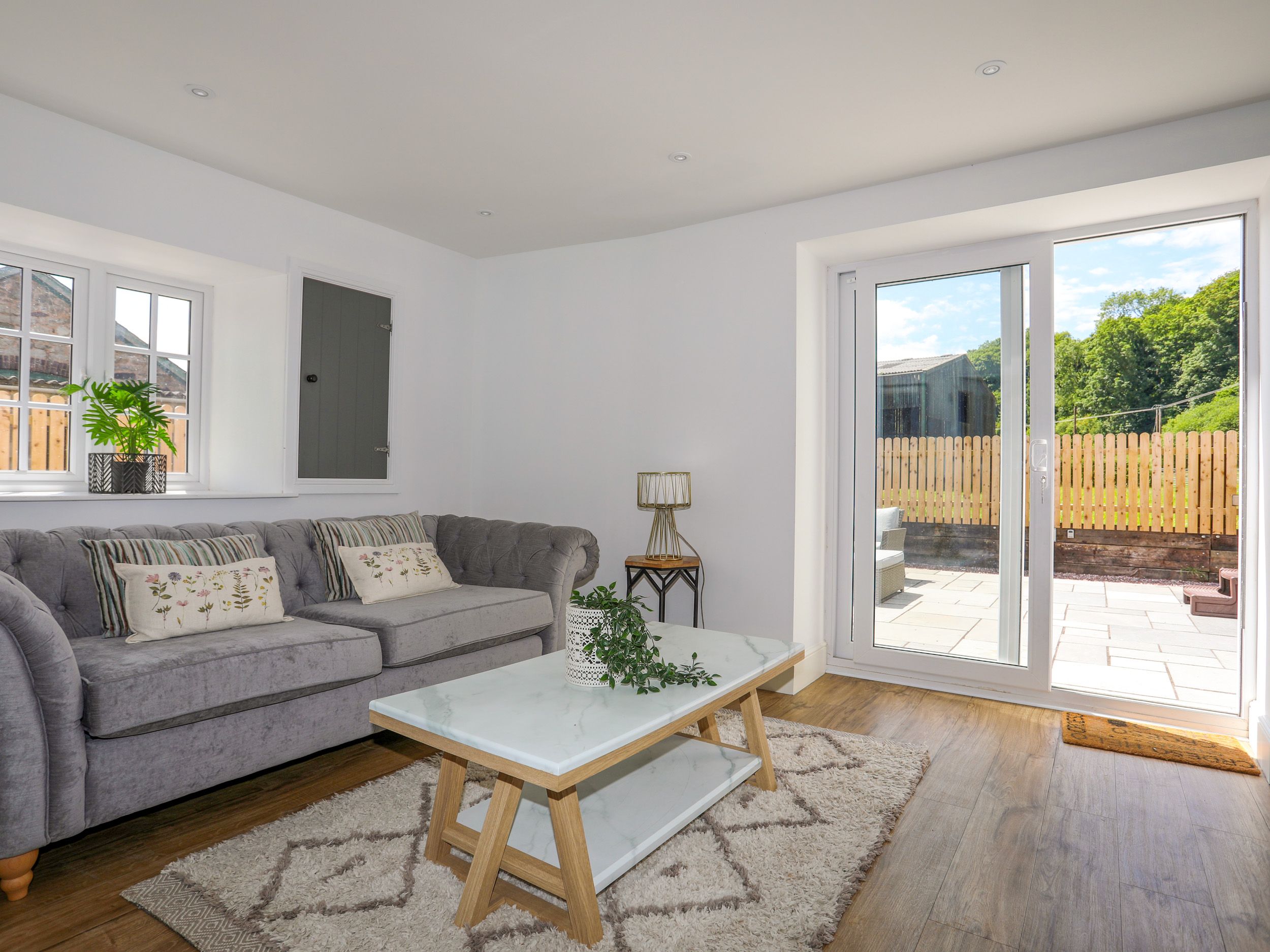 Amenities Underfloor heating. Clear View log burning stove. Starter pack of logs and firelighters (additional logs can be purchased by contacting the owner). Neff Electric double oven and hob,Neff microwave, Bosh hot plate, fridge/freezer, washing machine, tumble dryer, dishwasher. TV, WiFi. Fuel and power inc. in rent. Bed linen and towels inc. in rent. Travel Cot available please bring own baby bed linen. Ample off-road parking. Enclosed front and rear garden with hot tub, lawn and furniture. One well-behaved dog by prior agreement with owner. Sorry, no smoking. Shop 1.6 miles, pub 1.3 miles, river 0.1 miles. Note: The double bedroom on the first floor leads out onto a half landing with a step, please take care. There is a £500 Good Housekeeping Bond at this property, No Stag Hen or similar parties. 7 night booking for October half term 2024, enquire first for shorter breaks.