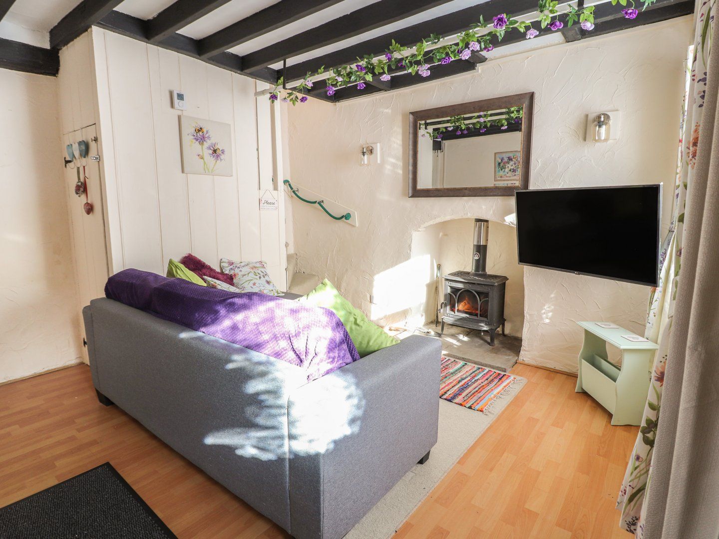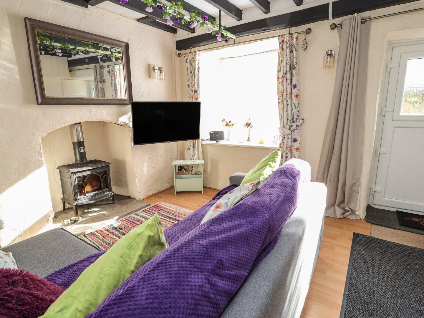 Oil fired central heating and woodburning stove. Electric oven and hob, microwave, fridge/freezer, dishwasher, Smart TV and WiFi. Fuel and power inc. in rent. Bed linen and towels inc. in rent. Roadside parking. Rear enclosed patio with furniture. Two well-behaved pets welcome. Sorry, no smoking. Shop 3.2 miles, pub 0.1 miles. Note: Due to the age of the property there are low door frames, steps down into kitchen and bathroom and steep, winding stairs, please take care. Note: Low banister in king-size bedroom, children to be supervised at all times. Note: The single bedroom accessed via master king-size. Note: Communal access to bins in rear garden