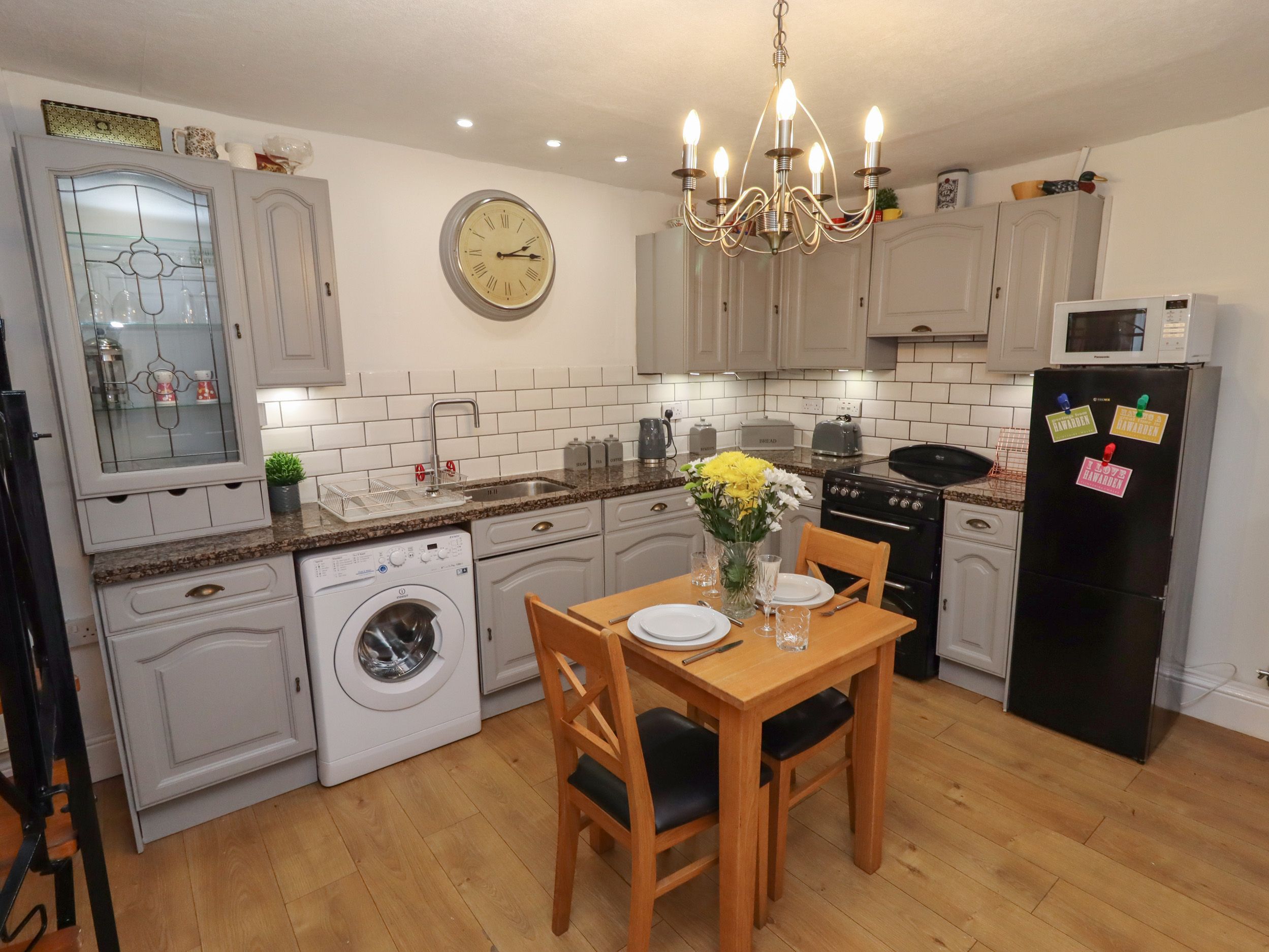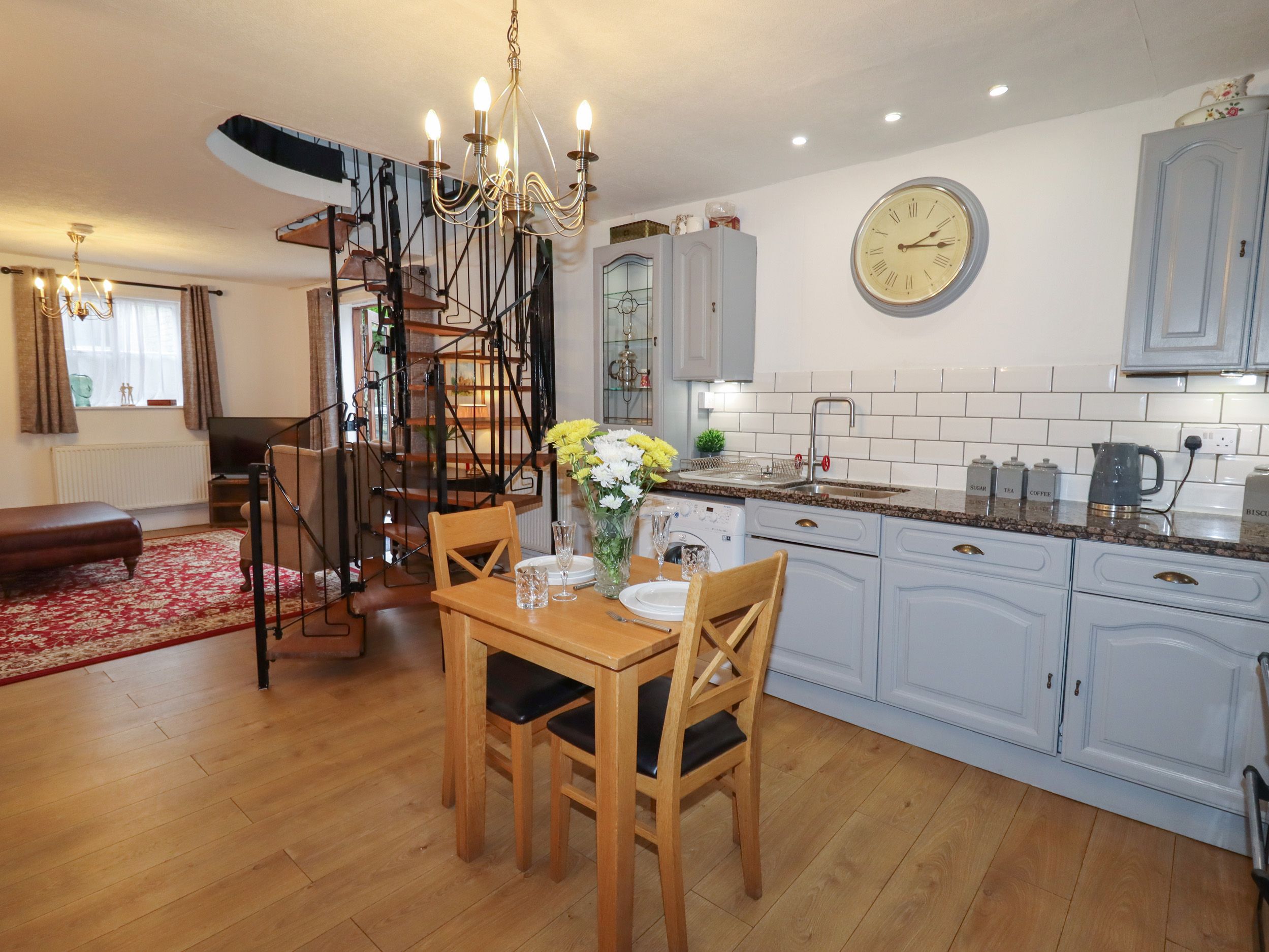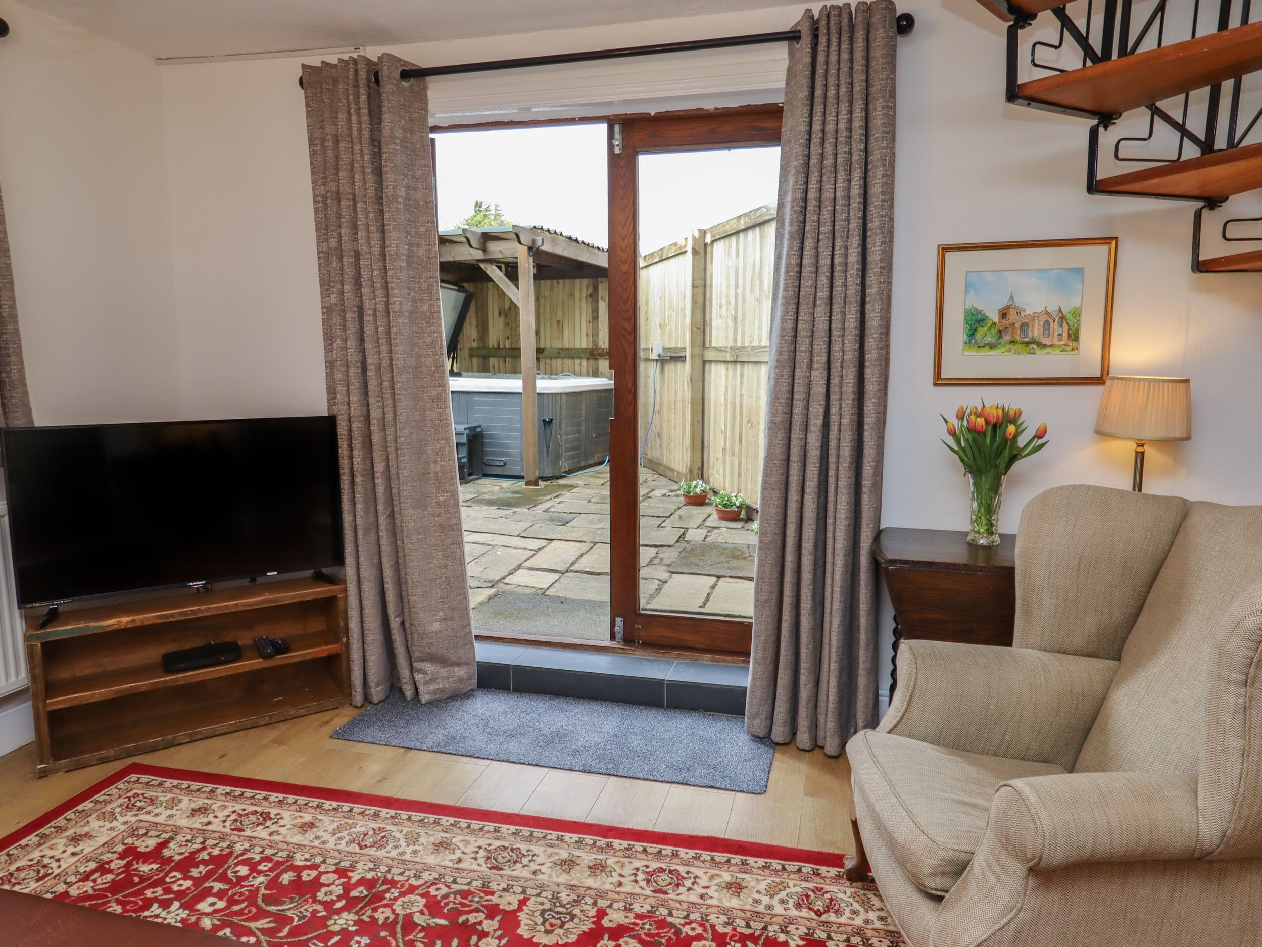 Gas central heating. Electric oven and hob, microwave, fridge, washing machine, dishwasher, kettle, toaster. Smart TV, WiFi. Fuel and power inc. in rent. Bed linen and towels inc. in rent. Designated Parking space for 1 car on neighbouring property. Enclosed garden with patio, hot tub and furniture. Two well behaved pets welcome but please be aware of the stairs within the property and the flagstone yard. Sorry, no smoking. Shop and pub 0.1 mile. Note: Open-tread, spiral staircase with gaps at the top, please take care. Note: No children or babes-in-arms. Please Note: Pets are only allowed downstairs and not on the furniture. Please note: The patio can be slippery when wet.