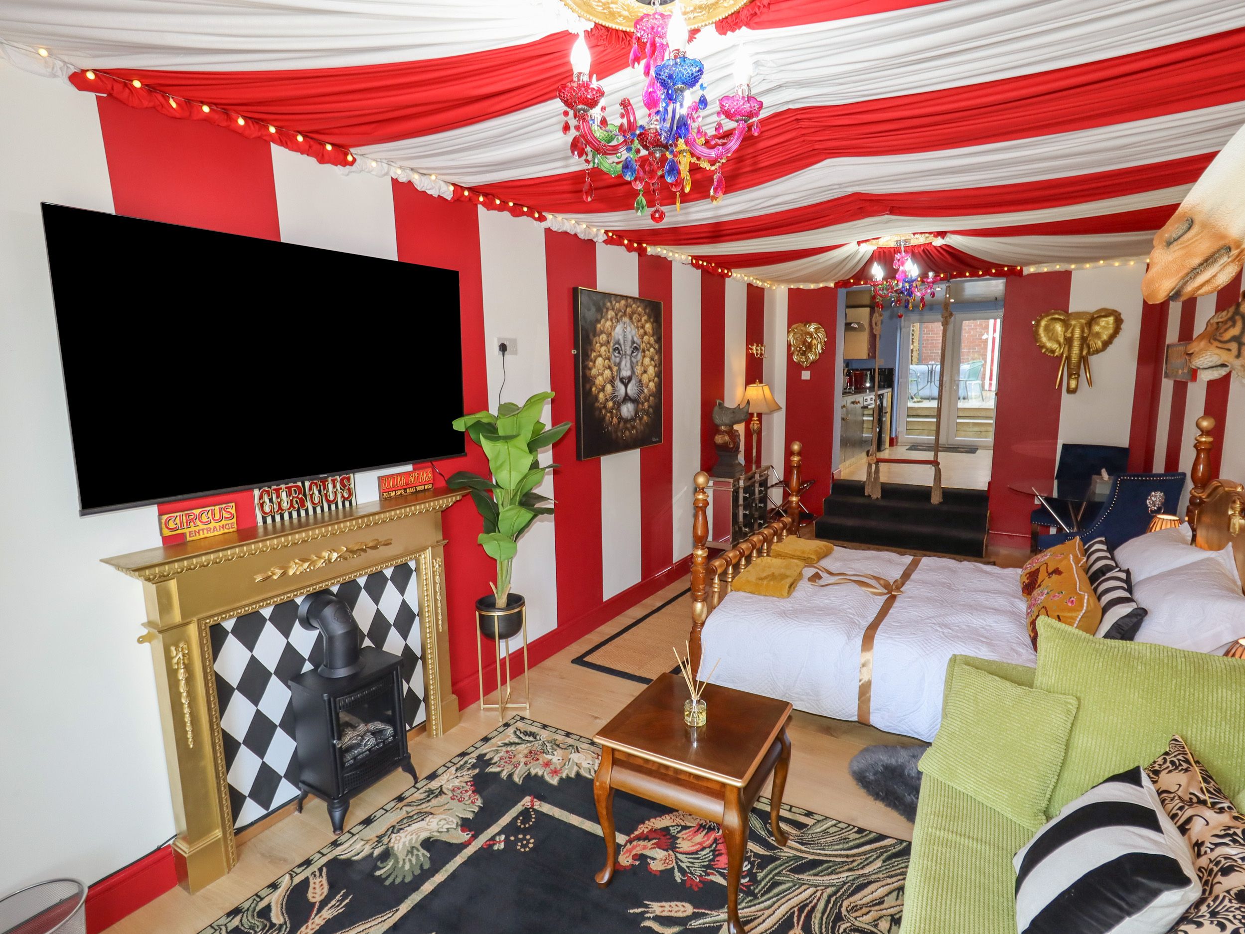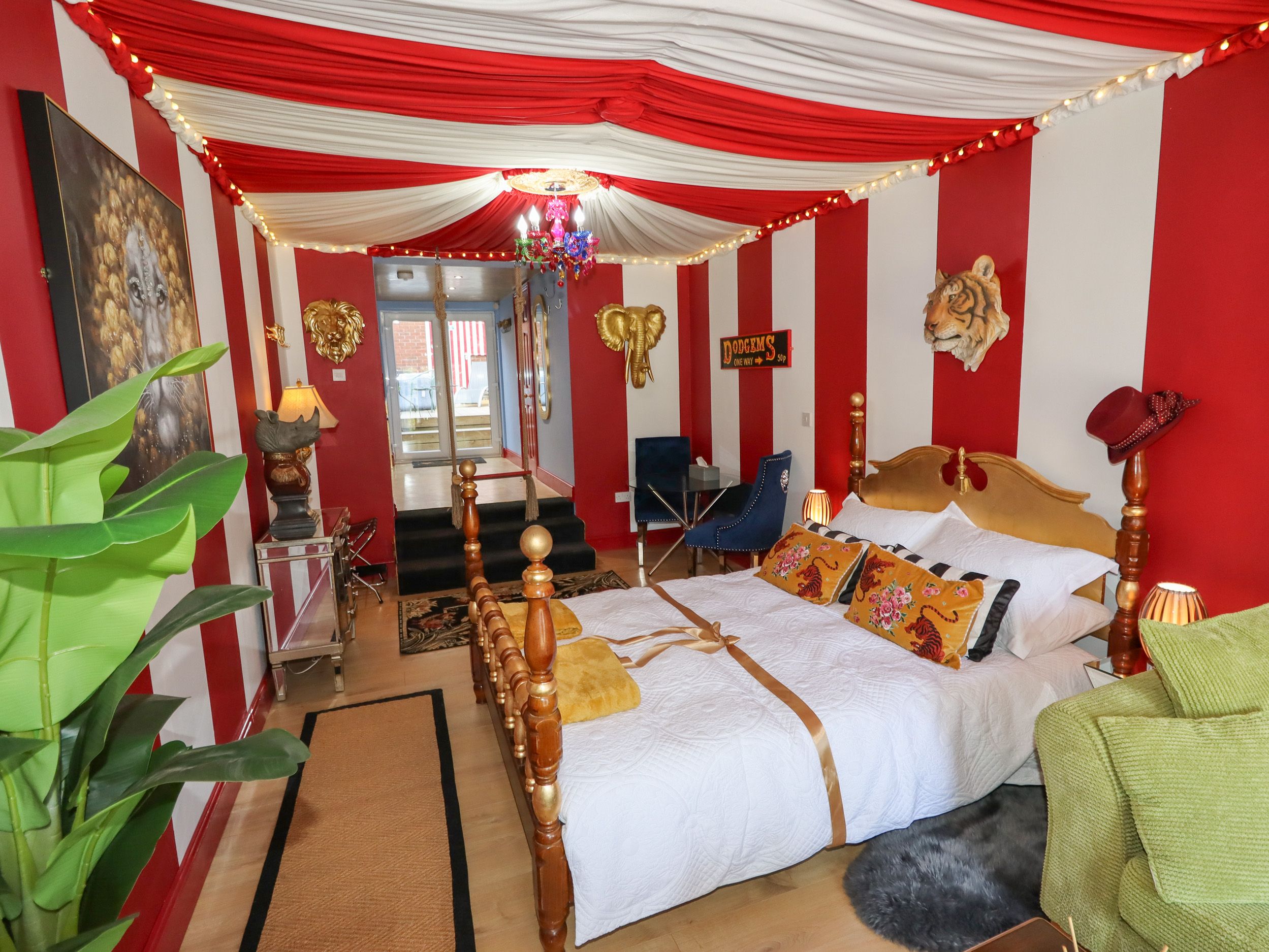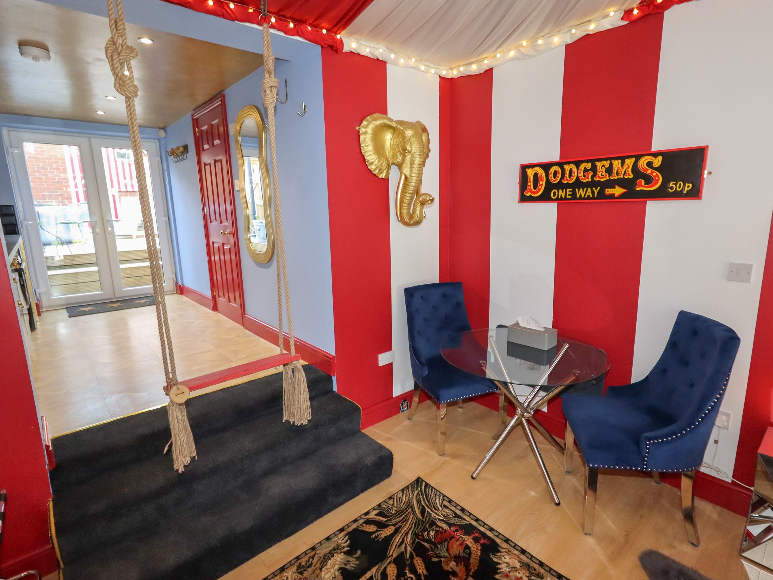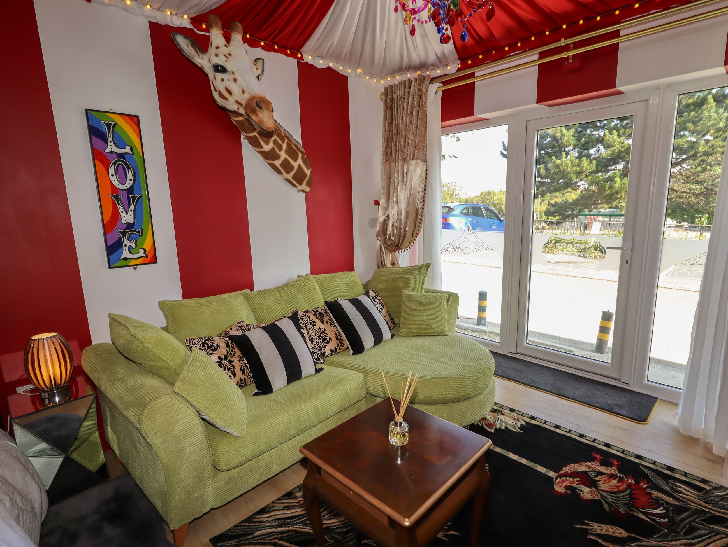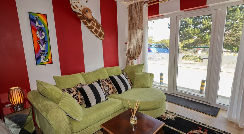 Holiday home Circus Circus consists of a kitchen with oven, hob, dishwasher, kettle, toaster, coffee maker, microwave, and washing machine, a dining room with dining seating for two, and a sitting room with Smart TV. The bedroom is a double and is serviced by a shower room. Sauna. WiFi, fuel, power, bed linen, and towels are included in the rent. Outside, there is an enclosed rear decking with two sun loungers, furniture, hot tub and a free public car park for up to ten cars. Two well-behaved pets are welcome. Sorry, no smoking no at this property. Guests are able to find a shop in 0.1 mile and then a pub within 0.2 miles. Enjoy your trip to the property Circus Circus. Please note this property can be booked alongside ref 1142344 sleeping a total of 8 guests. Please note at present there is not hot tub at the property