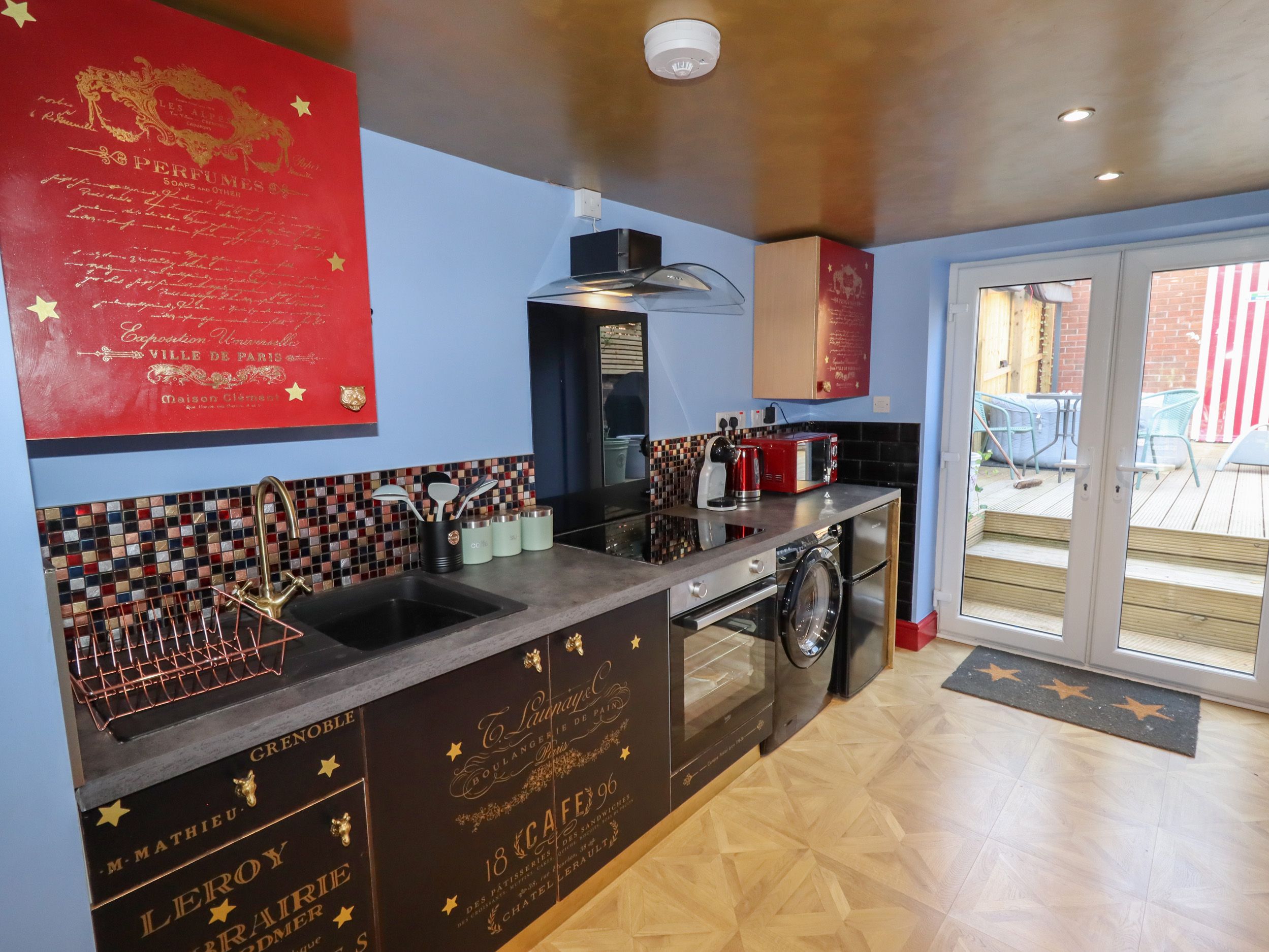 Amenities Electric heating. Oven, hob, microwave, washing machine, kettle, toaster, coffee maker. Smart 65" TV, WiFi, Alexa. Fuel and power inc. in rent. Bed linen, towels & robes inc. in rent. Free public car park for up to 10 cars. Enclosed rear decking with 2 x sun loungers, furniture and gas barbecue. Two well-behaved pets welcome. Sorry, no smoking. Shop 0.1 mile, pub 0.2 miles. Please note this property can be booked alongside ref 1142344 sleeping a total of 8 guests