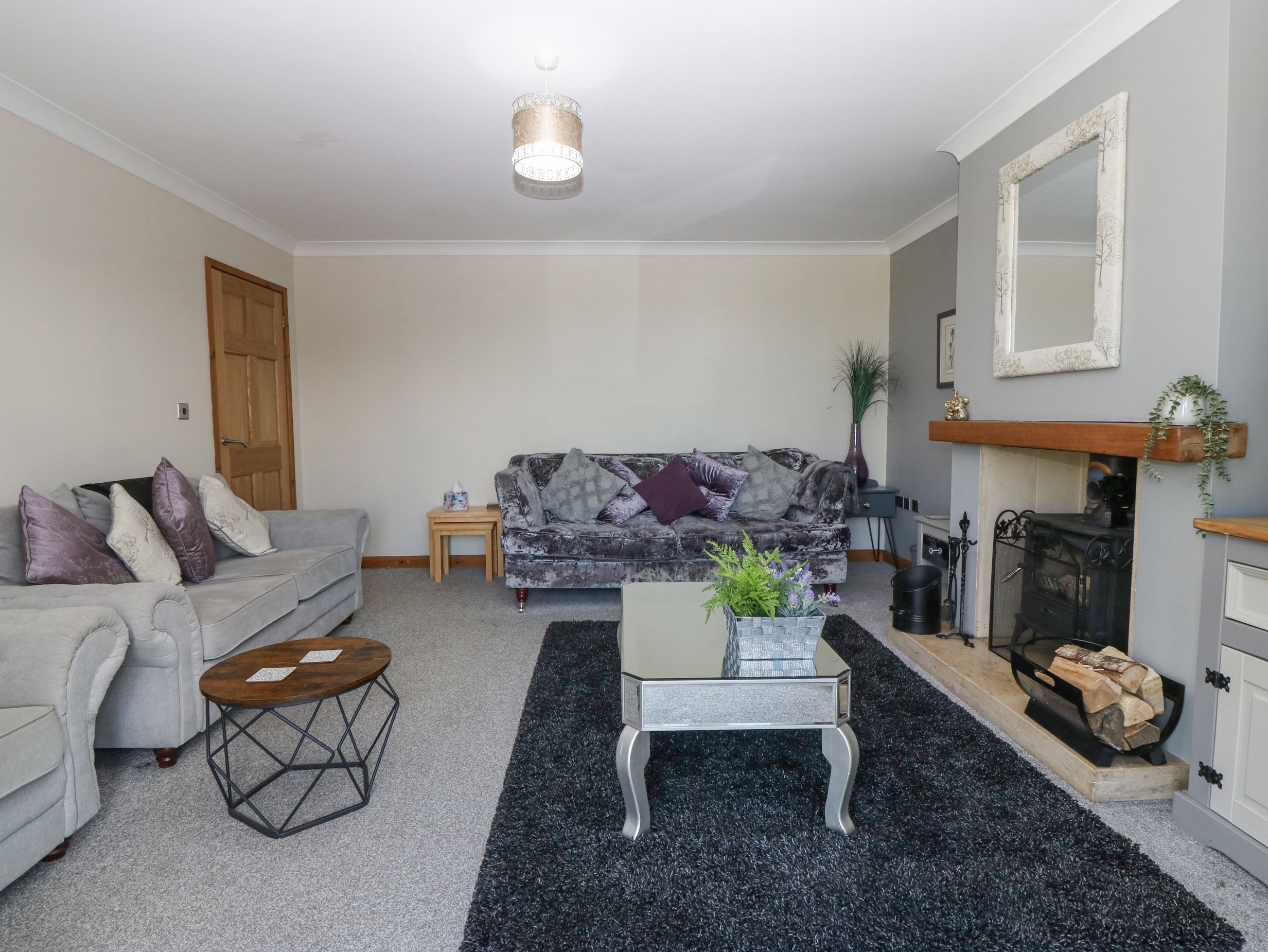 Amenities Oil central heating. Electric oven and hob, microwave, fridge/freezer, washing machine, dishwasher. Smart TV with Netflix, TV, WiFi, a selection of books, game room activities, pool table, darts board. Fuel, power, and starter pack for woodburning stove inc. in rent. Bed linen and towels inc. in rent. Highchair and travel cot available. Private driveway parking for 7 cars. Enclosed rear garden with lawn, patio, furniture, and barbecue. Non-enclosed front garden with lawn. Four well-behaved pets welcome. Sorry, no smoking. Shop 2.6 miles, pub and beach 2.7 miles. Note: There is a step up to bath in bathroom, please take care. Note: Check-in from 4pm, check-out by 10am. Note: The ceilings are slightly sloped in the first-floor bedrooms
