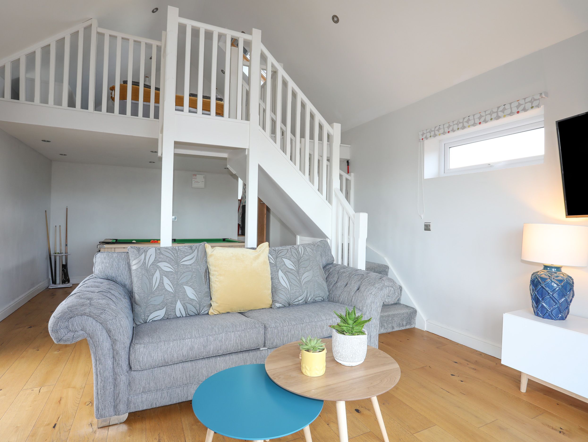 Accomodation Details Main house. Four bedrooms: 1 x king-size with Smart TV, en-suite walk-in shower, basin and WC, 1 x king-size with en-suite walk-in shower, basin and WC, 1 x king-size, 1 x bunk. Bathroom with freestanding bath, hand-held shower, basin and WC. Shower room/utility with walk-in shower, WC. Open-plan living space with kitchen, woodburning stove, dining area and sitting area with woodburning stove. Annex with mezzanine double bedroom. Games room