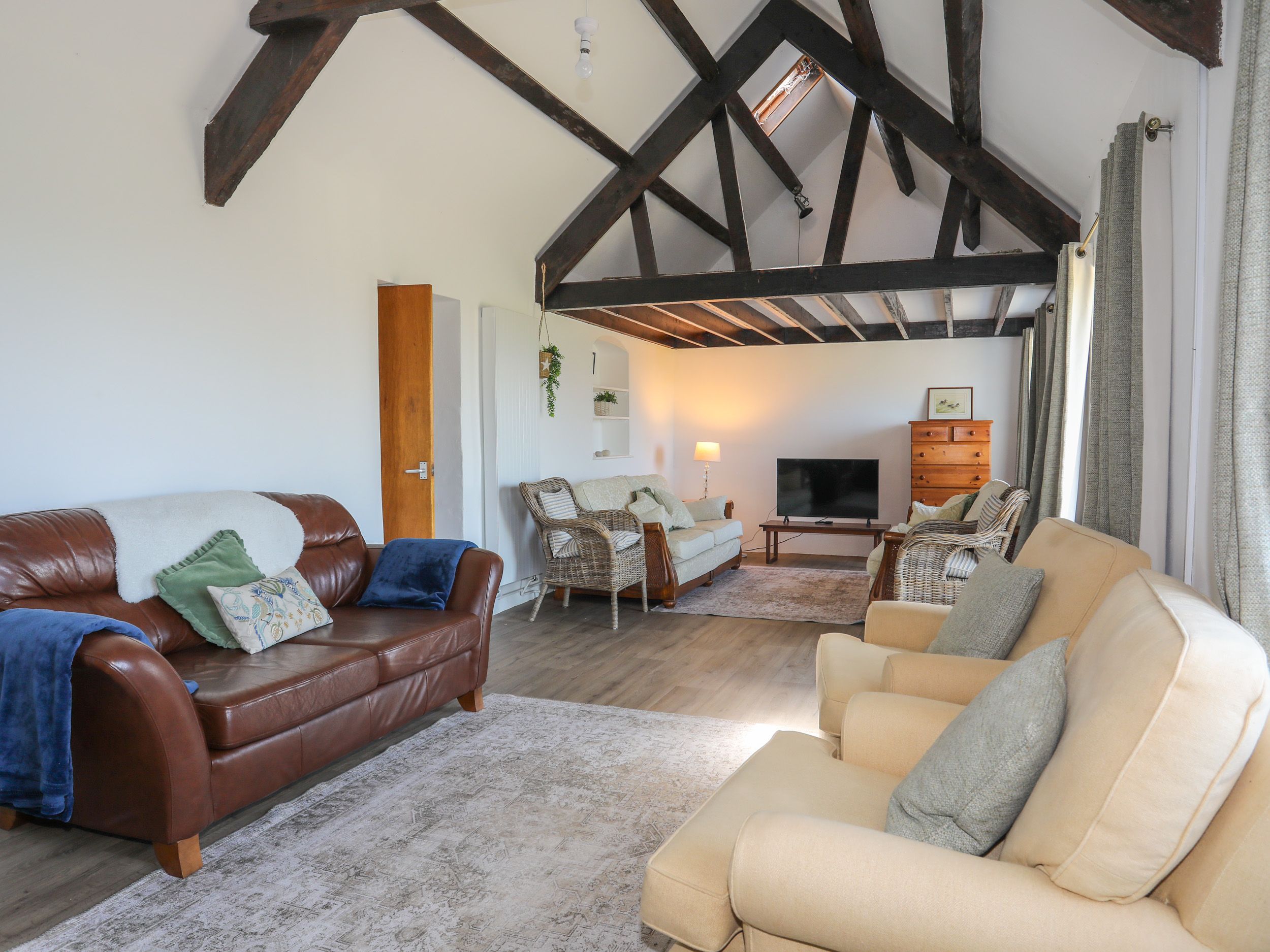 Accomodation Details Five bedrooms: 1 x ground-floor king-size, 1 x ground floor double, 1 x ground-floor single with truckle, 1x first floor king, 1 x first floor twin. Bathroom with bath, walk-in shower, basin, heated towel rail, WC. Shower room with walk-in shower, basin, WC. Kitchen/diner. Utility. Sitting room with woodburning stove and Smart TV. Conservatory. Snug with TV
