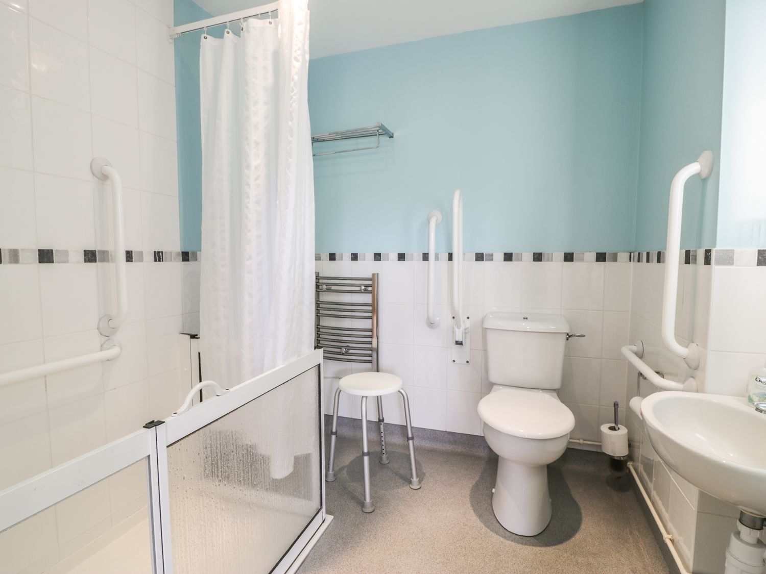 Oil central heating with woodburning stove. Range cooker, fridge/freezer, dishwasher, washing machine, TV with Freeview, DVD, WIFI. Fuel, power and starter pack inc. in rent. Bed linen and towels inc. in rent. Ample off road parking for 3 cars. Outside storage for bikes. Rear patio with furniture and BBQ. Two small well-behaved pets welcome. Sorry, no smoking. Shop and pub 6 mins walk. Note: Hospital electric bed available upon request for a fee of £40.00. Note: Property is suitable for persons with limited mobility, fully wheelchair accessible, with rise and recline chair and two wet rooms, both with wheel-in showers. Note: There is also a 'Tramper all-terrain buggy' for less able guests to use on the beach