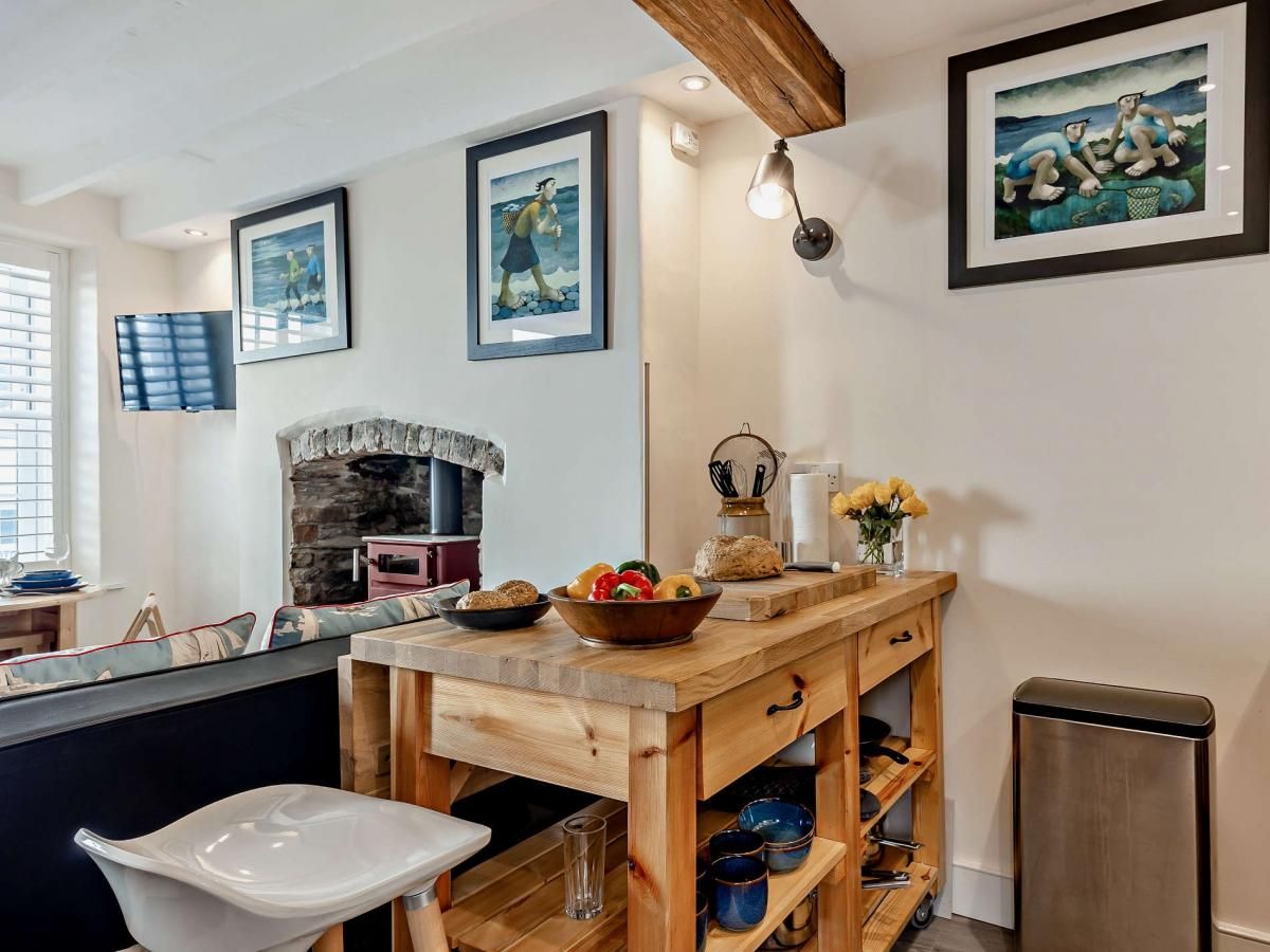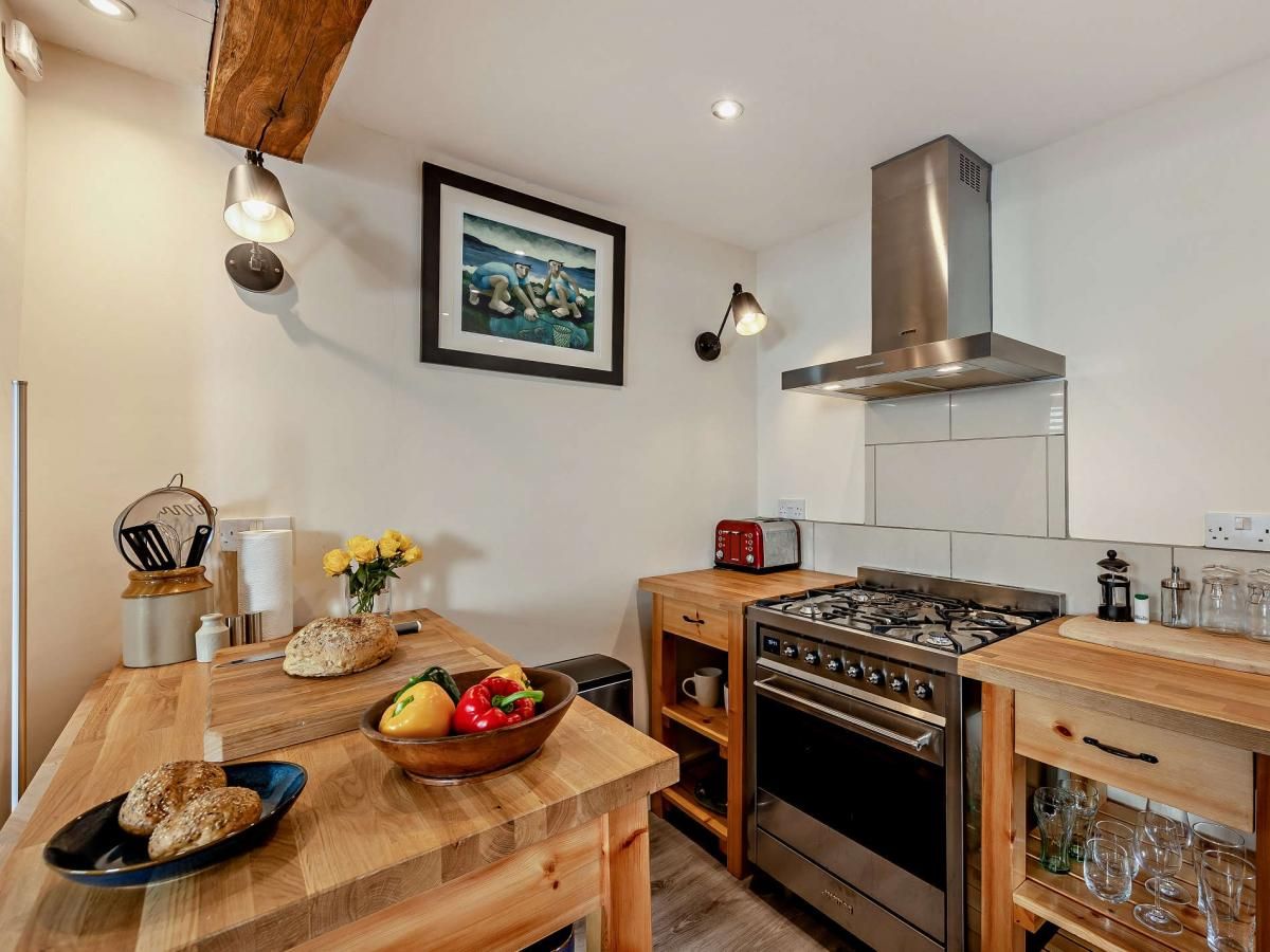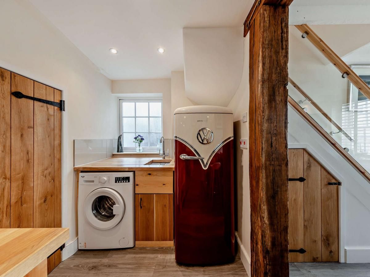 Enter the kitchen/diner, where a captivating feature fireplace takes centre stage alongside the wood burner. Should you choose to dine in, the kitchen provides a sociable space with a breakfast bar, an inviting sofa, and all the necessary equipment to whip up a delicious meal.