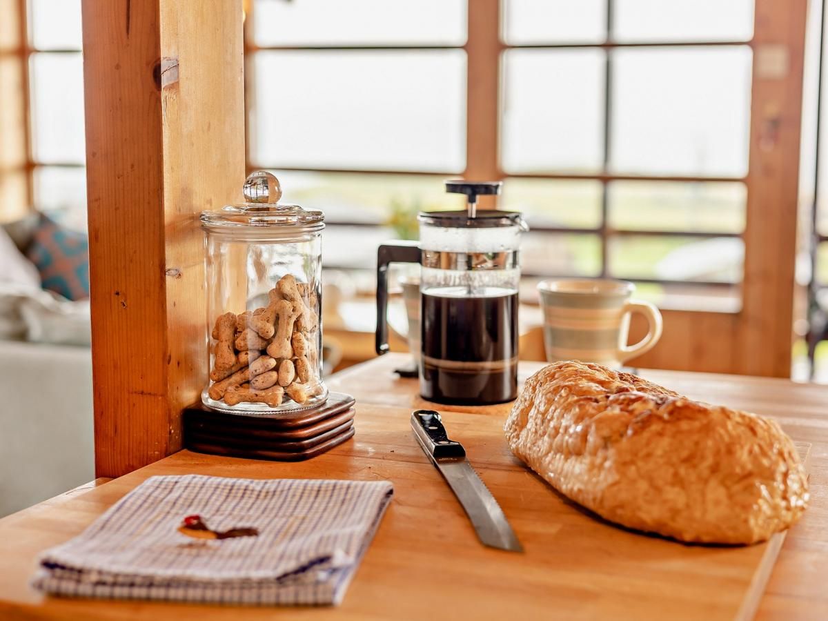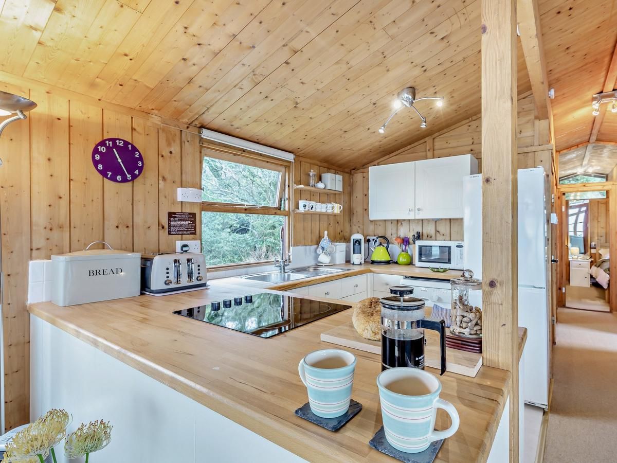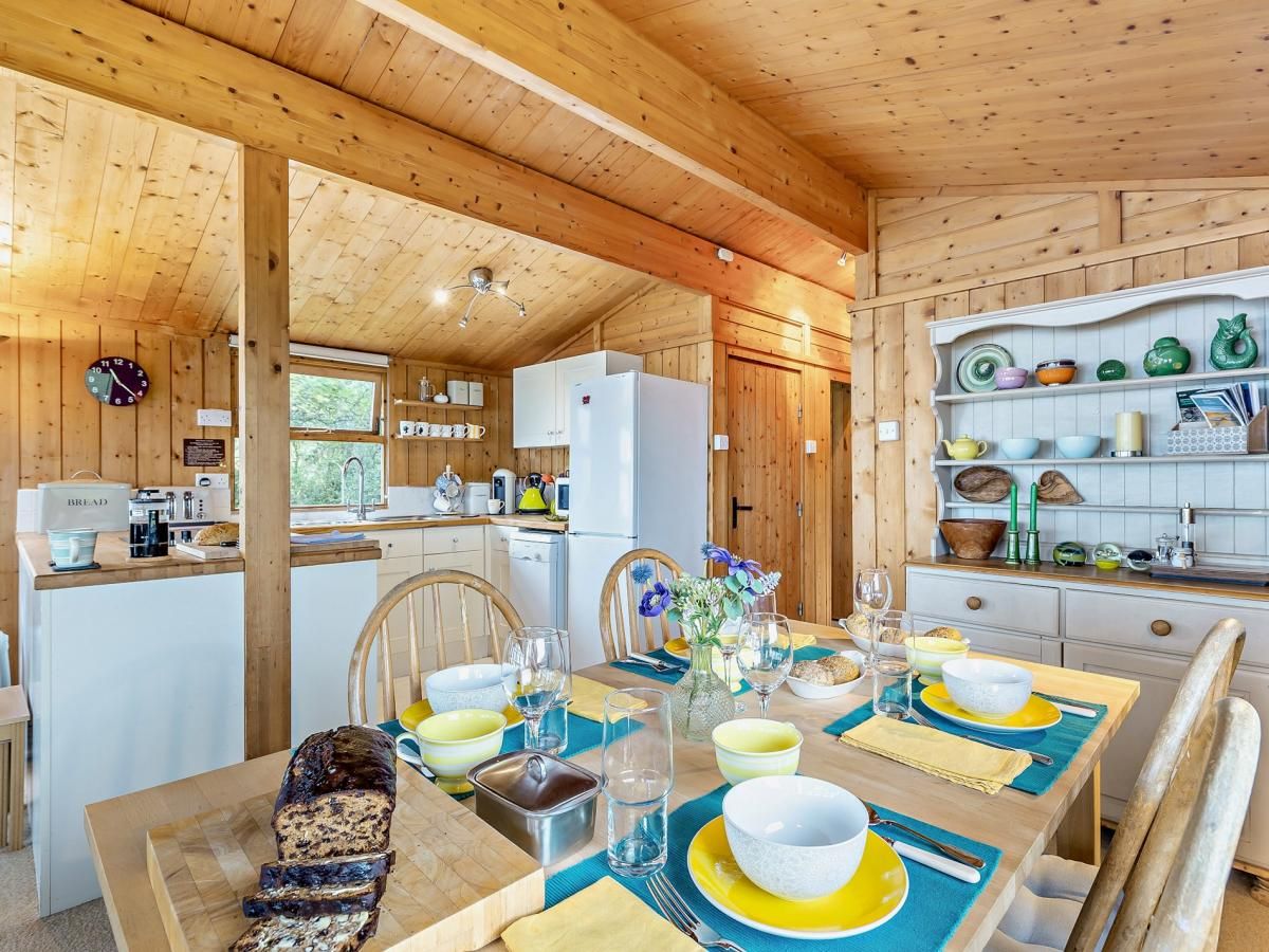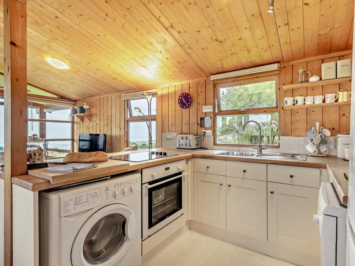 This single-storey Swiss-style lodge, set on a hillside within the Plas Panteidal holiday park, boasts breathtaking views across Cardigan Bay.