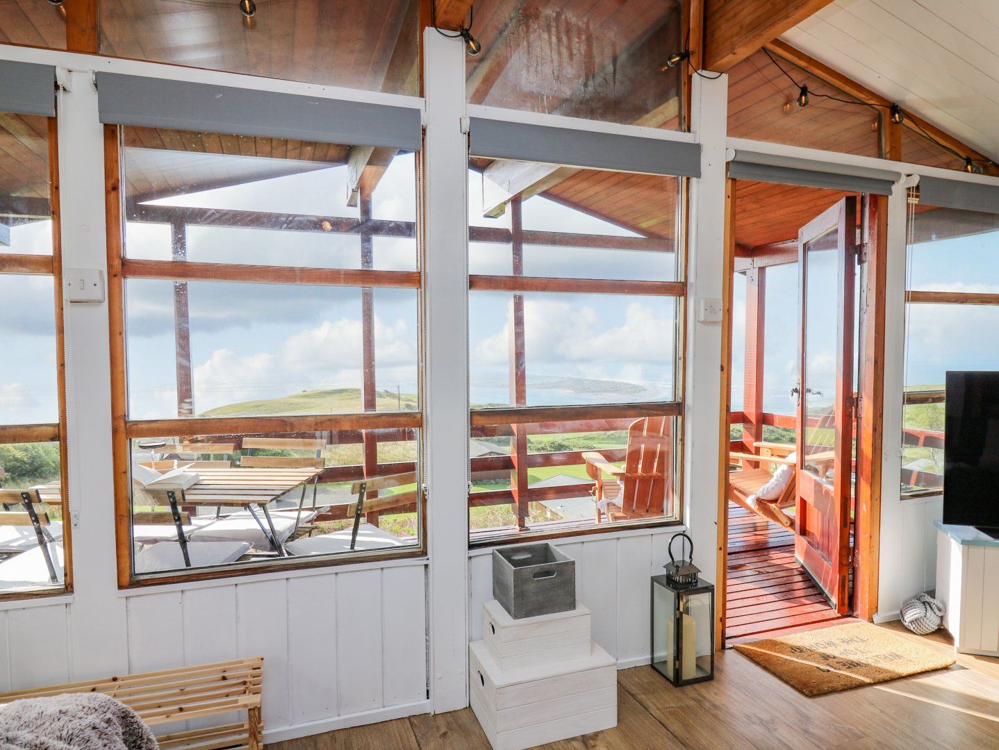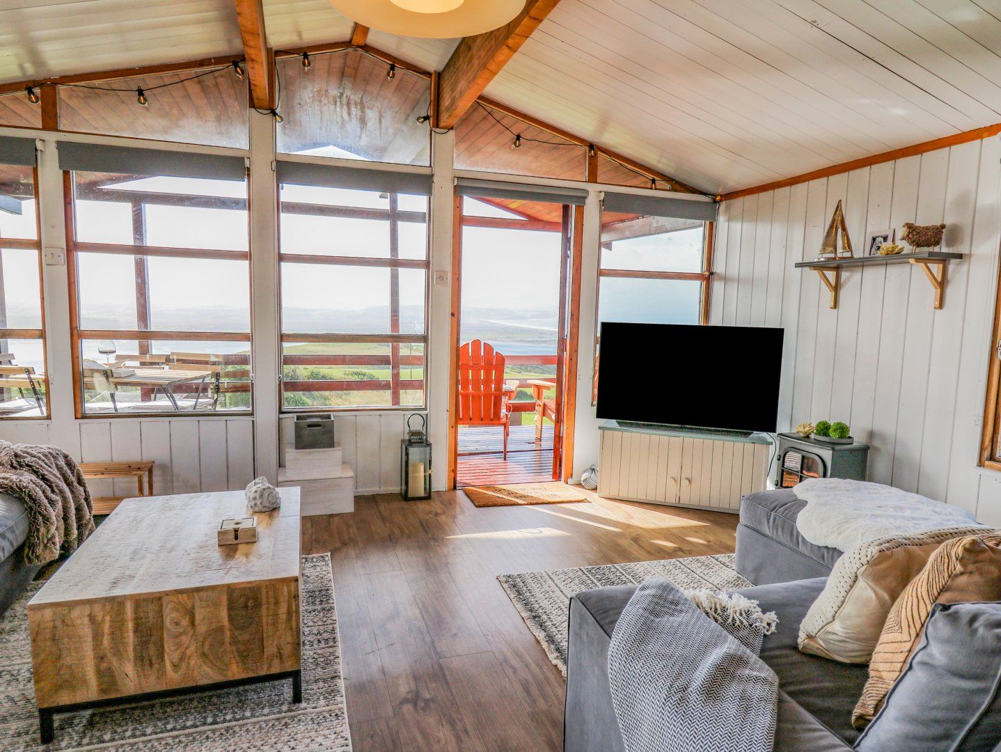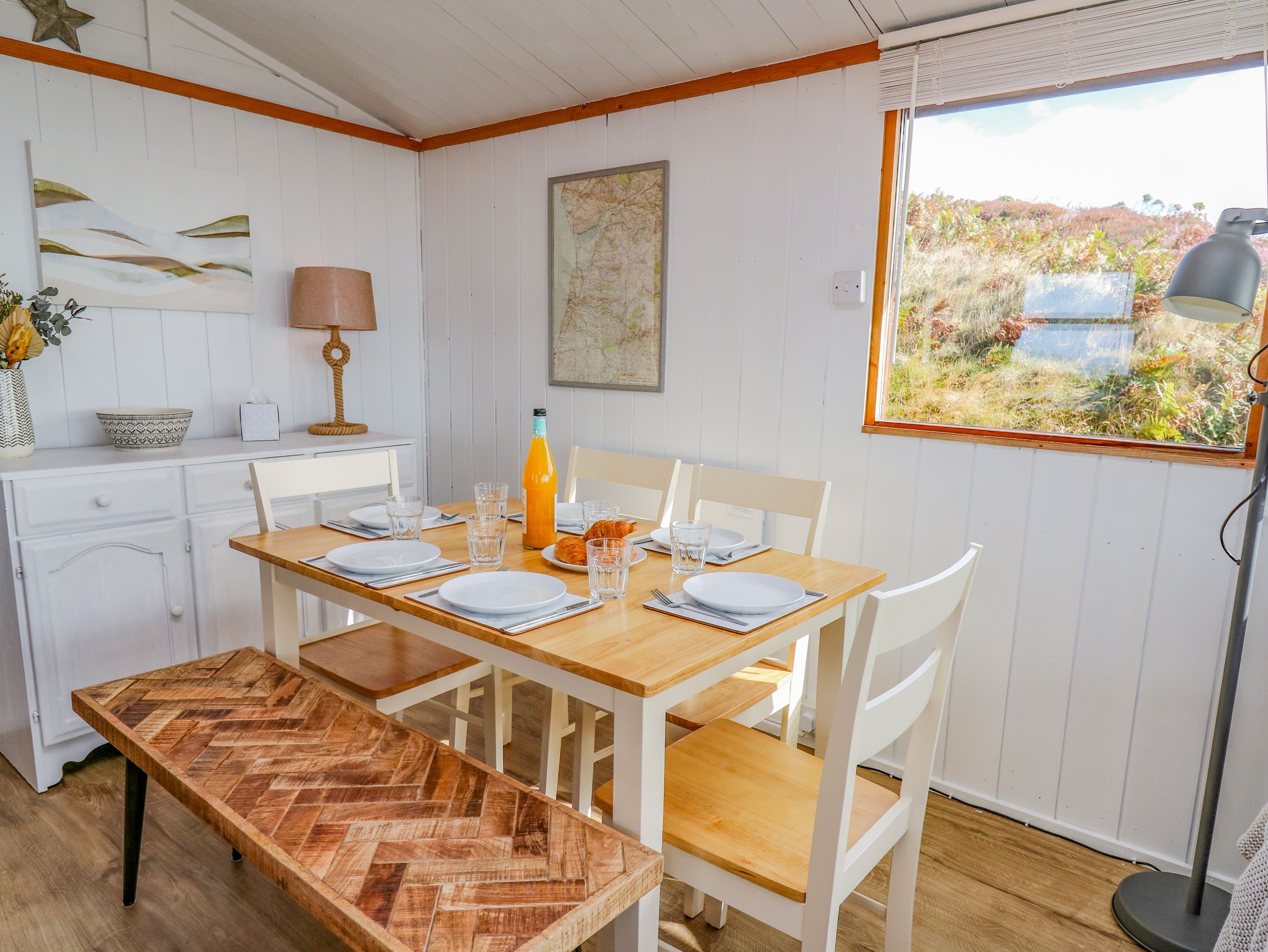 Amenities Electric heating. Electric oven and hob, microwave, fridge with ice box. Iron, ironing board, hairdryer. Smart TV and WiFi. Fuel and power inc. in rent. Bed linen and towels inc. in rent. Ample parking in shared car park. Enclosed veranda with furniture. Two well-behaved dogs welcome. Sorry, no smoking. Shop 1.5 miles, pub 1.3 miles, beach 2 miles. Note: The lodge isn't suitable for those with limited mobility, due to exterior steps and sloped access: Care should be taken on the grassy slope and steps when wet; Children should be supervised on the veranda as there is a drop; dogs must be supervised when outside at all times. Please note: This property accepts a minimum 3 nights.