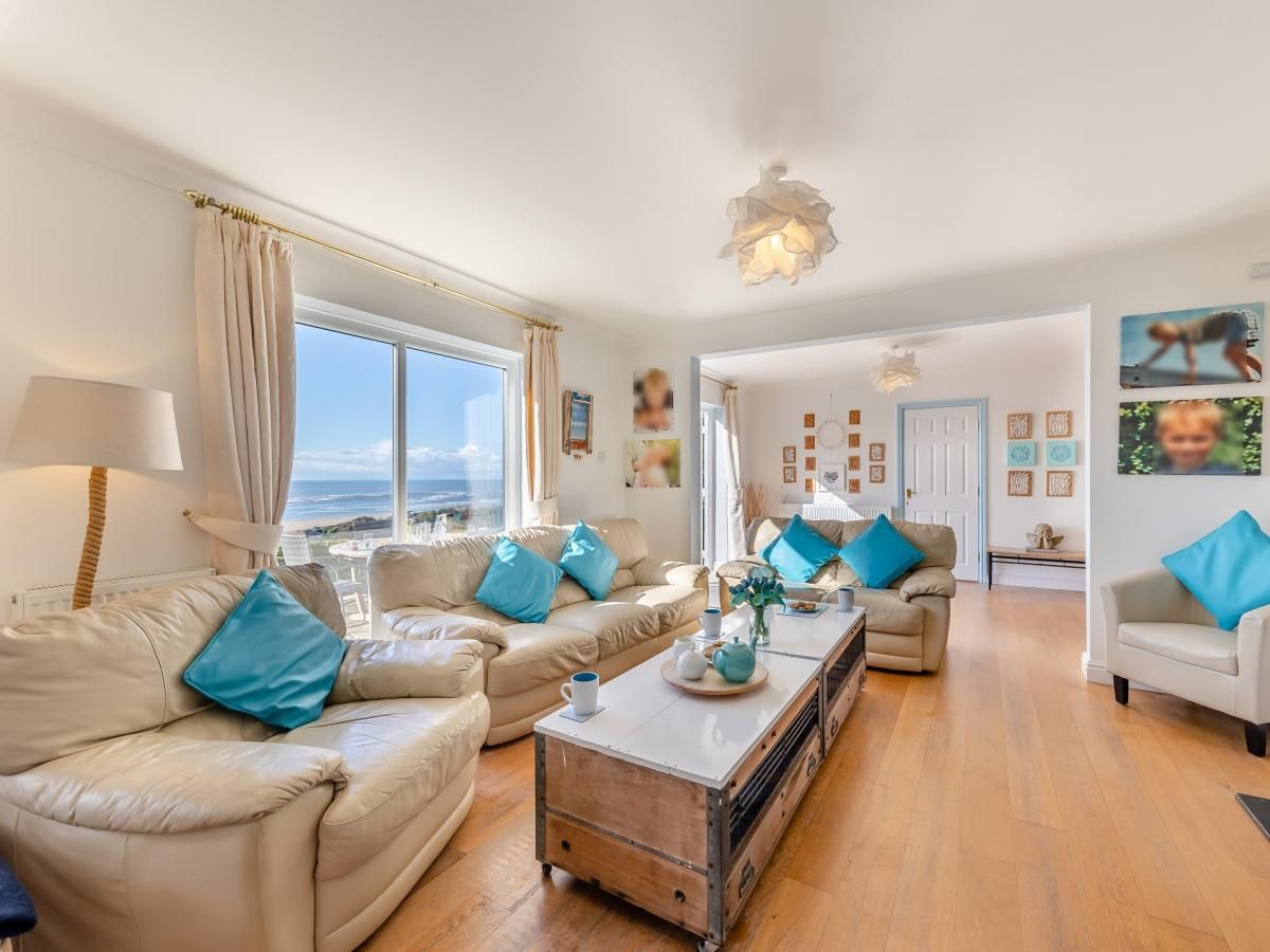 This coastal holiday home sits high above Aberdyfi/Aberdovey, boasting far-reaching sea views.