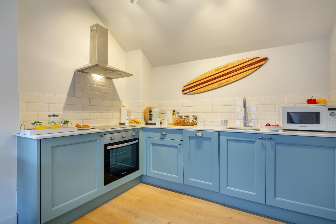Soft, natural tones and textures make for a calming ambience all through this delightful holiday getaway.