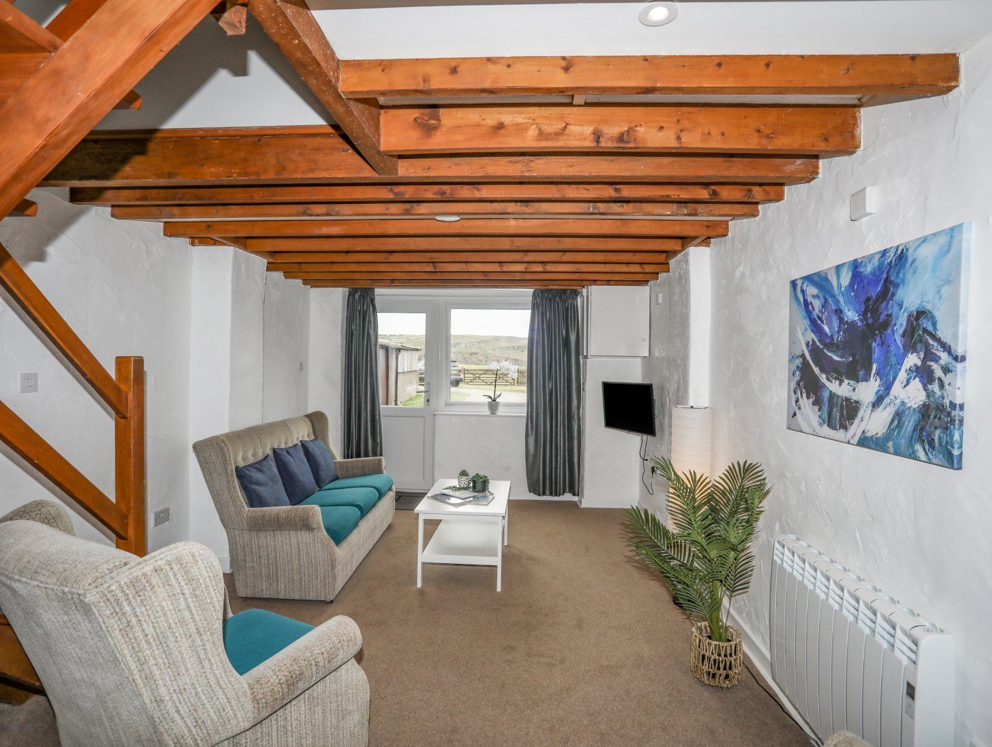 Accomodation Details Duplex apartment. Two bedrooms: 1 x double, 1 x twin. Shower room with walk-in shower and basin. Cloakroom with WC. Open-plan living space with kitchen, dining area, sitting area and electric stove