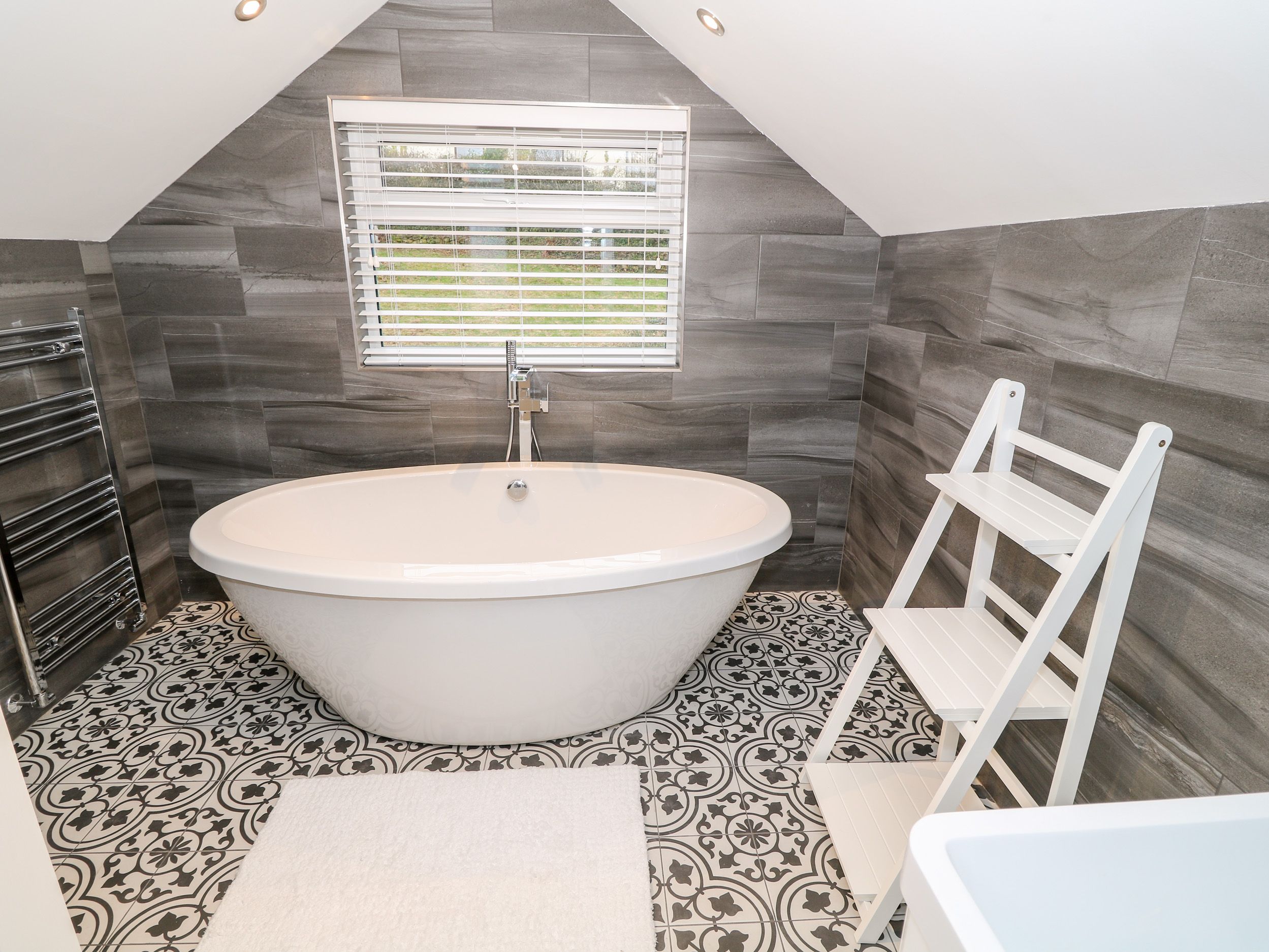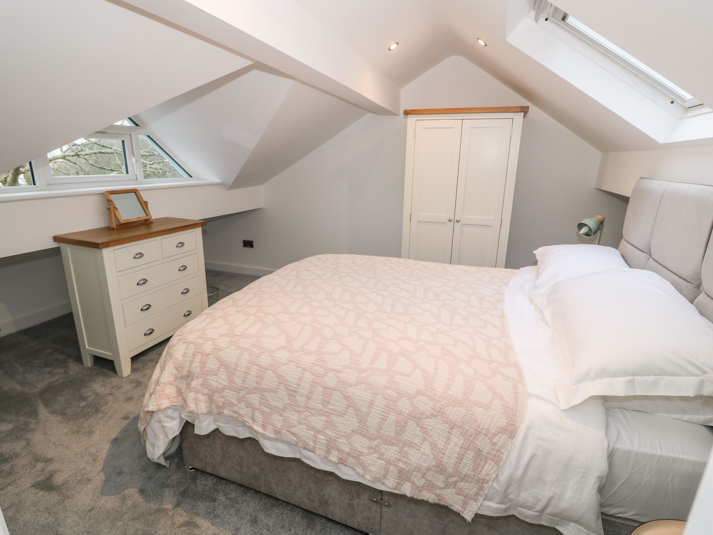 Over two floors. Six bedrooms: 1 x king-size with en-suite bathroom with free-standing bath, basin and WC, 1 x ground-floor king-size with en-suite walk-in shower, basin and WC, 2 x ground-floor double (zip/link, can be twin on request), 2 x twin. Bathroom with free-standing bath, basin and WC. Ground-floor shower room with walk-in rainfall shower, basin and WC. Open-plan living area with kitchen, dining and sitting area. Lounge. Utility