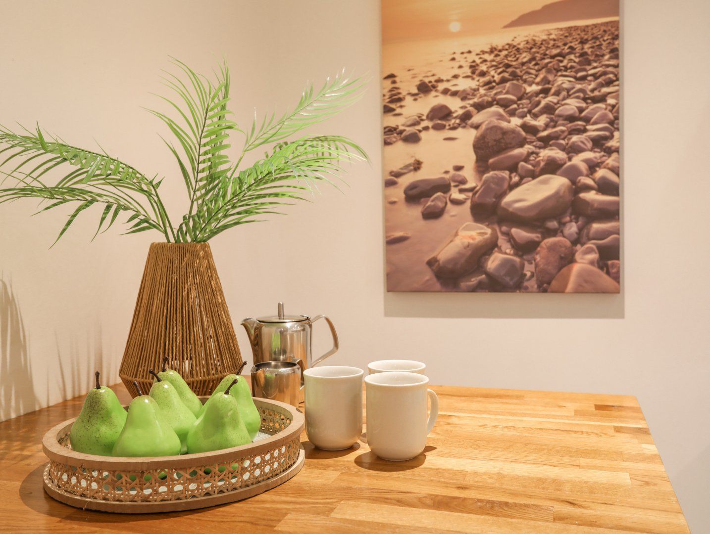 Amenities Air source heat pumps with underfloor heating. Electric oven and hob, microwave, fridge/freezer, washing machine, dishwasher. TV with Netflix Amazon TV. Fuel and power inc. in rent. Bed linen and towels inc. in rent. shared driveway with parking for 1 car with additional on request. Enclosed front garden with decking, lawn and furniture. Two well-behaved dogs only are welcome. Sorry, no smoking. Shop 1.1 miles, pub 1.6 miles, beach 0.6 miles. Note: There are two steps up to the entrance, please take care. Note: Check-in from 4pm and check-out by 10am. Good Housekeeping Bond of £250 in place. Note Guests cannot charge Electric Cars at the property. Note: Hot tub is shared between two houses and can be booked on a first come first serve basis by contacting the owner directly at the extra cost of £200. It's located a 2 minute walk from the property. Note: No other pets other than dogs allowed
