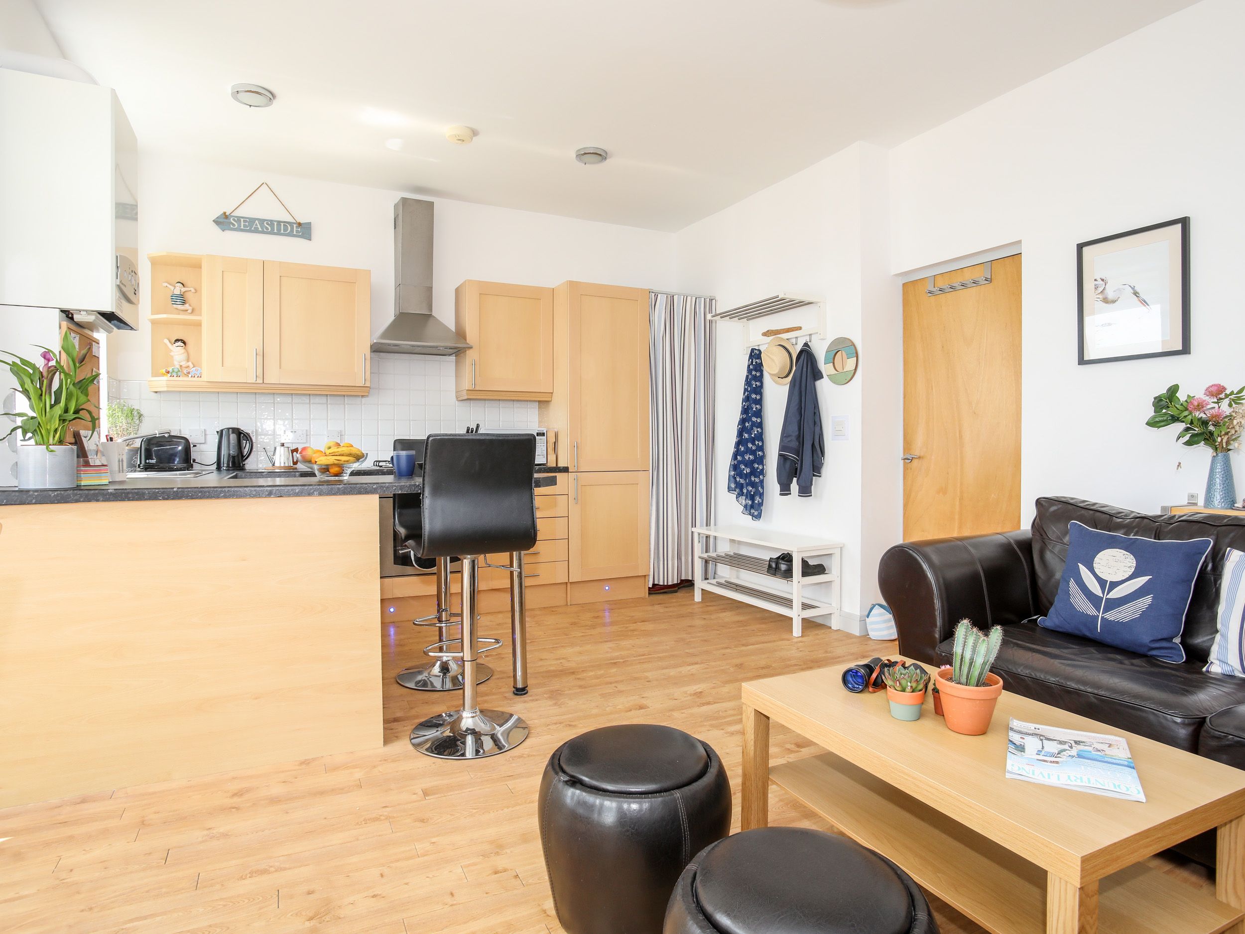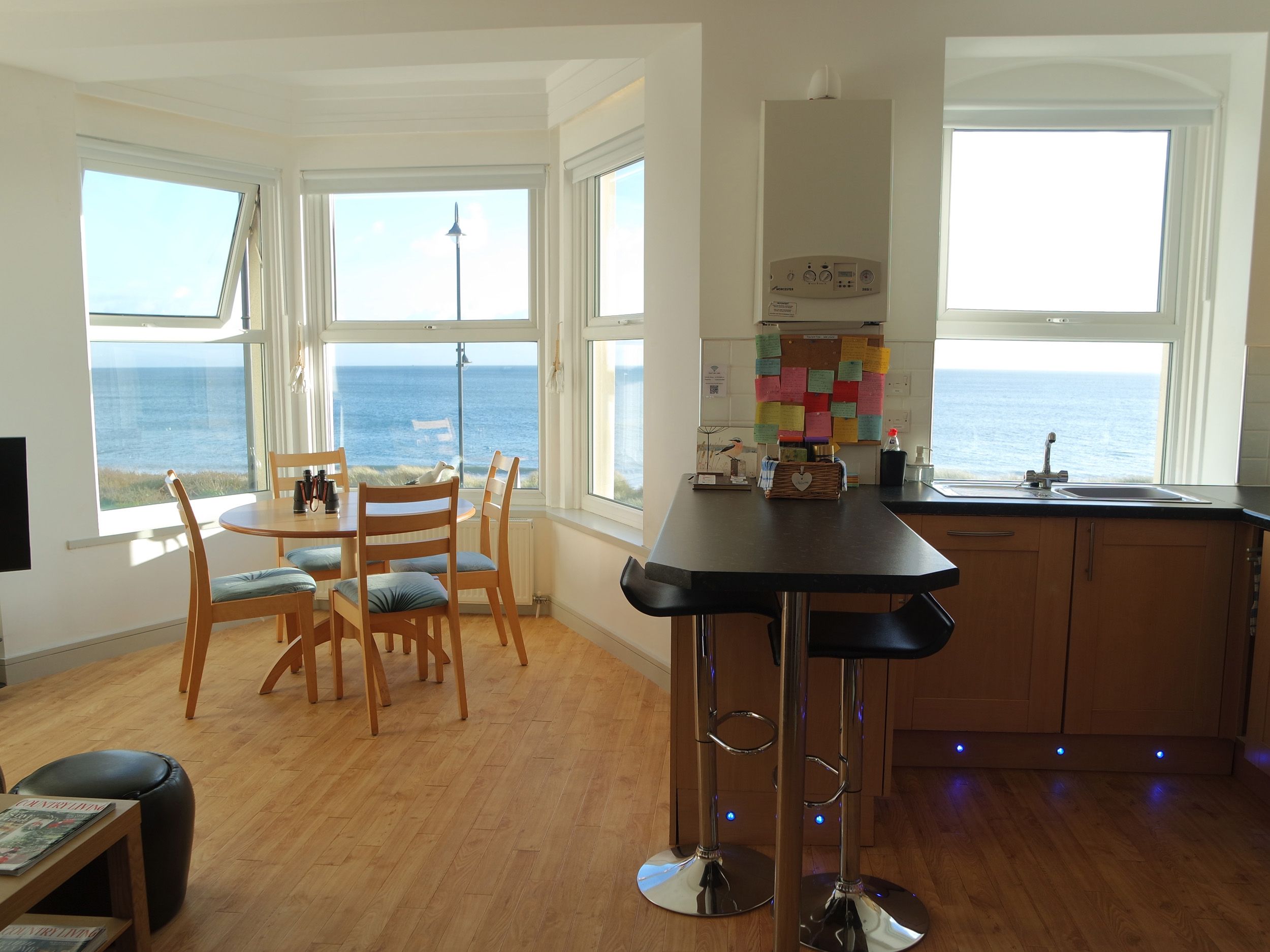 Accomodation Details First-floor apartment. Two bedrooms: 1 x double, 1 x triple bunk room. Bathroom with bath, shower over, basin and WC. Open-plan living space with kitchen, dining area and sitting area