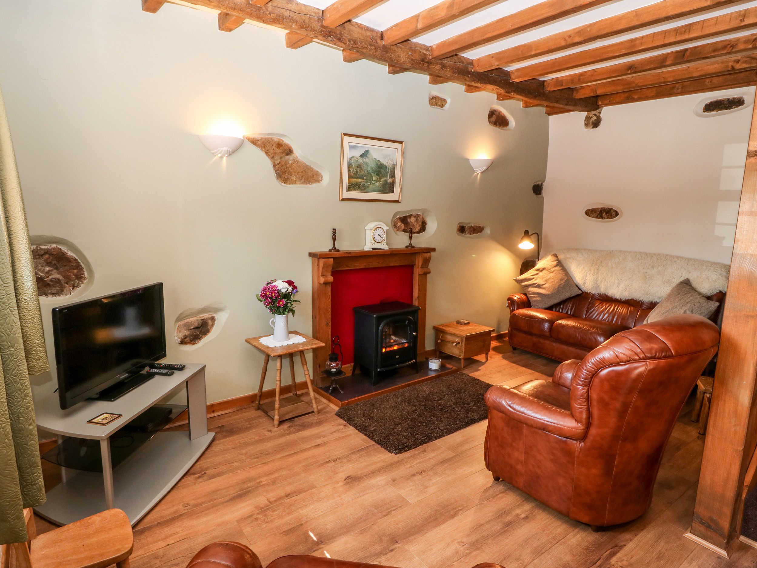 Just returned from a 7 night stay in stable 2 and what a beautiful cottage. We are a family of 2 adults plus 2 children aged 4 years and 13 months and the property was perfect for us. The beds were comfy, linen and towels were in a great condition and the whole cottage was spotless! Enough crockery and utensils for us, it really was home from home. The cottage is on-site with the owners bungalow and their sons farm house, working farm behind the cottage (not that you would know, we were never awoken by the animals!) chickens and guinea fowl roaming free and Doris the pig in her pen nearby!! The kids loved it, especially the play area, which you could see from the cottage, with swings, slide and huge trampoline! The owners made us feel so welcome and nothing was too much trouble. Llanbedrog beach is literally a 5 min walk away, Abersoch 10 min drive one way and Pwllheli 5 mins drive the other. We have stayed on the LLyn Peninsula a few times now in Nefyn, which we love, but with 2 young children we found this area more accessible. We will definitely return to this property and would highly recommend!!