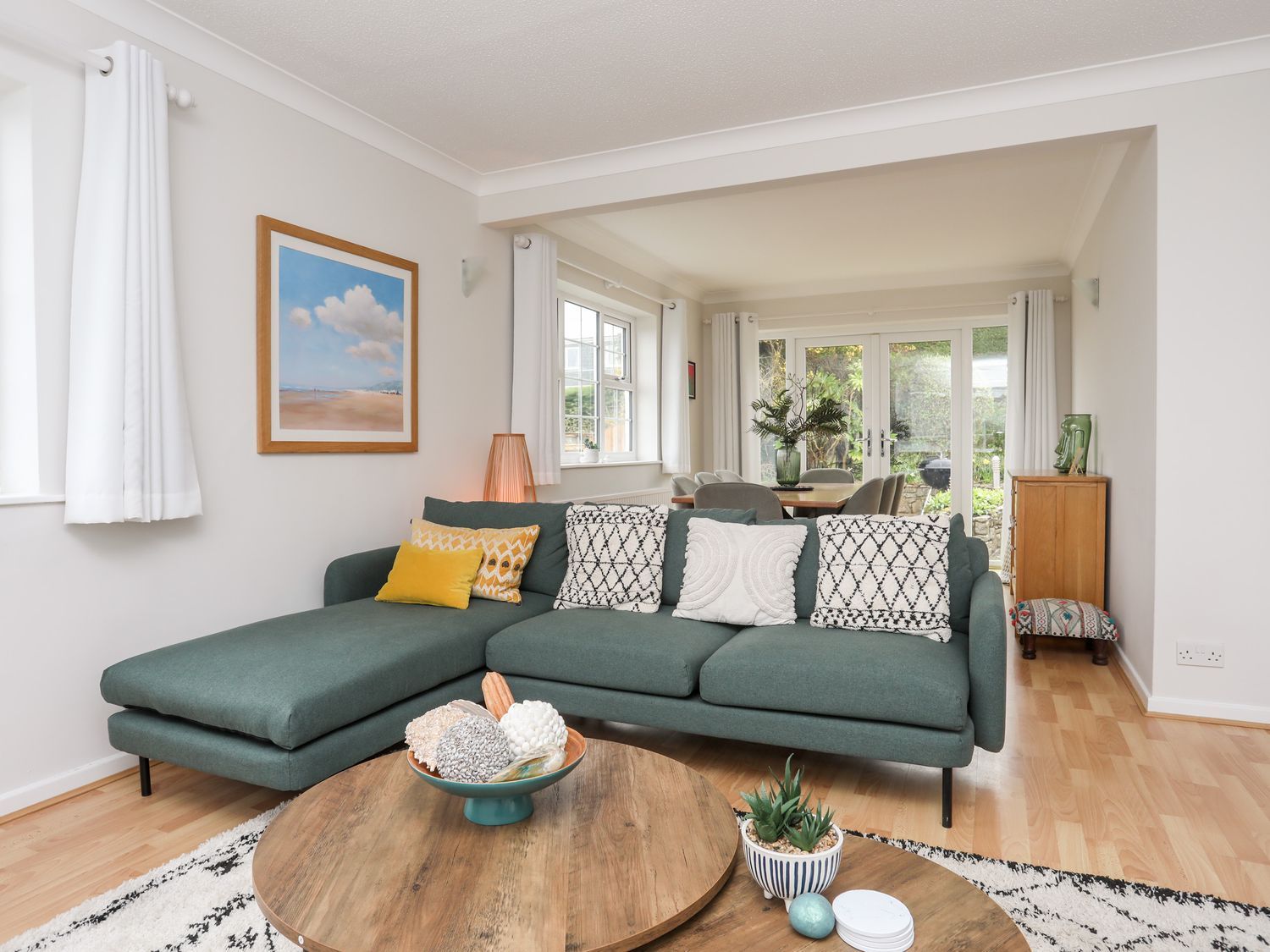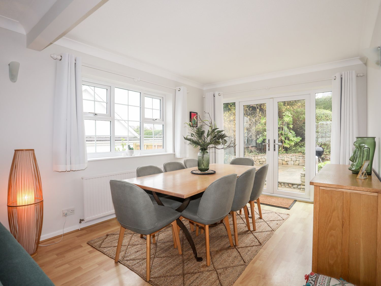 Amenities Oil central heating. Electric oven and hob, fridge/freezer, washing machine, tumble dryer and dishwasher. 2 x TVs with Freeview and WiFi. Fuel and power inc. in rent. Highchair and travel cot available. Off-road parking for 4 cars. Enclosed multi-level back garden with patio, lawned area, charcoal barbecue and furniture. One small well-behaved pet welcome. Sorry, no smoking. Shop and pub 0.6 miles, beach 0.7 miles. Note: There is a Good Housekeeping Bond of £600. Note: There is restricted head height on the first floor, please take care. Note: This property has parking available for a boat. Note: Check-in from 4pm, check-out by 10am.