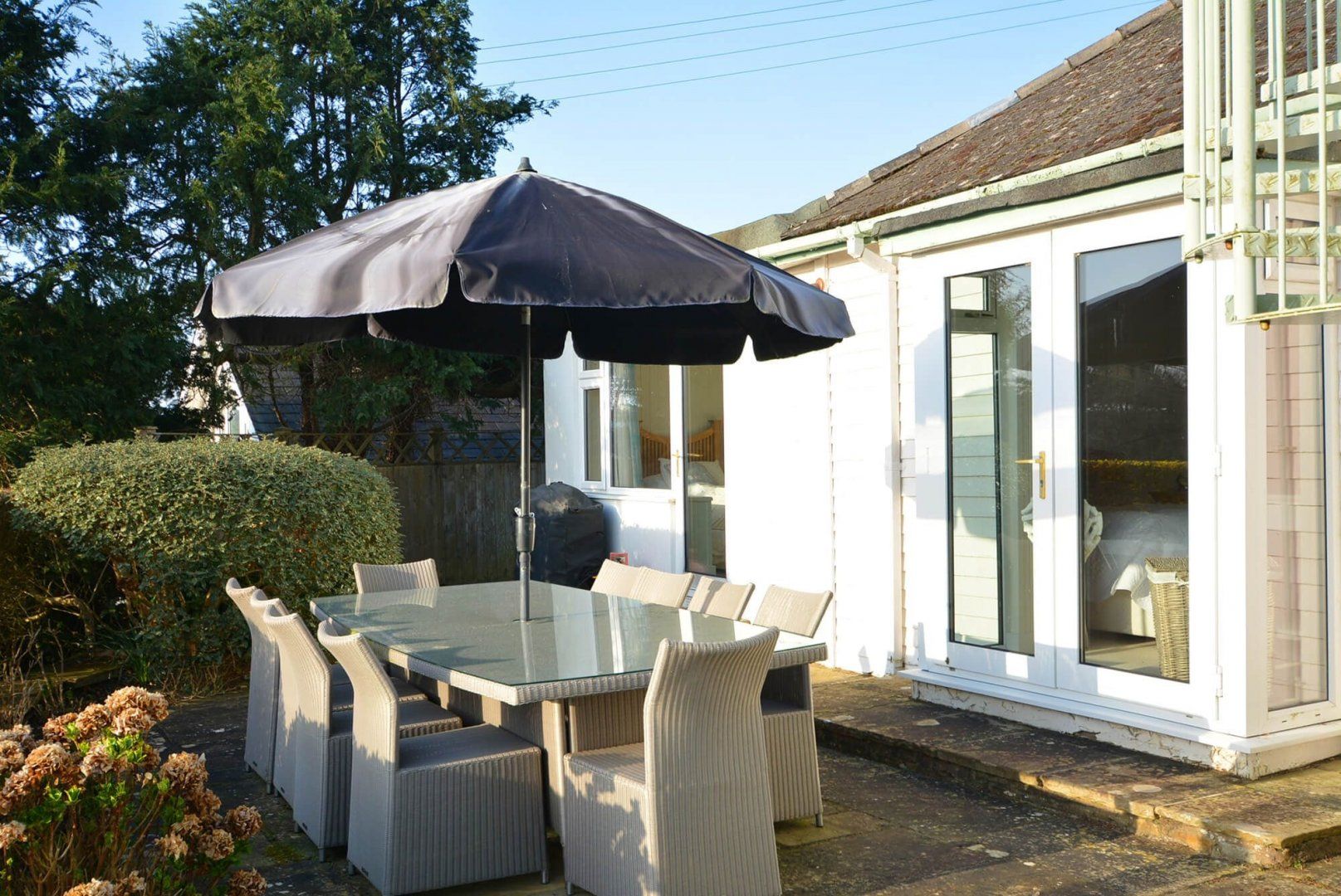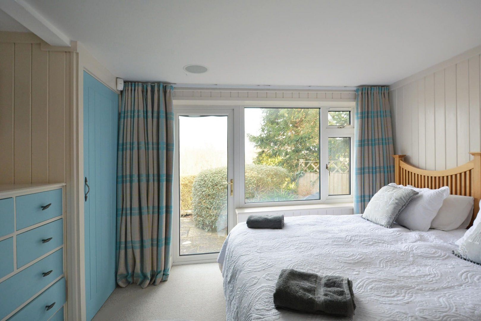 If the sun makes an appearance, there’s a long dining table for the group out on the patio, and an added bonus is the rooftop balcony, accessed by a spiral staircase, and looking out over the countryside towards the sea.
