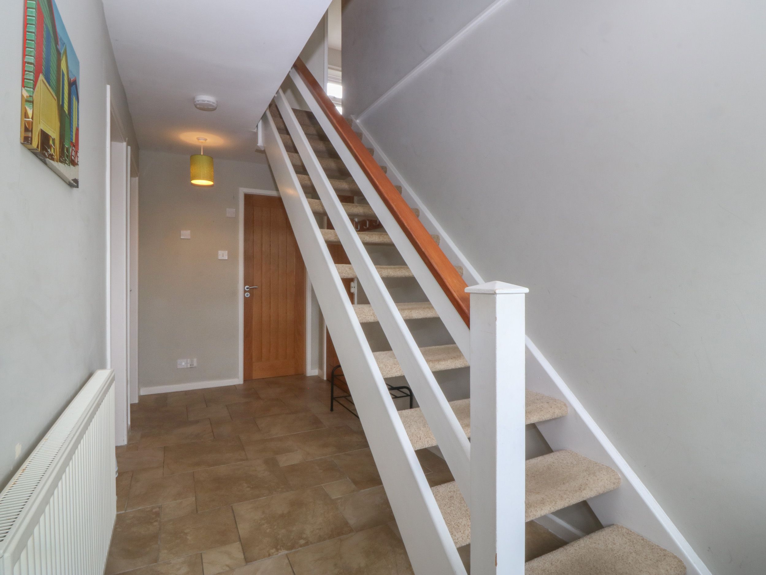 Holiday home Ty Nant is a family-only reverse-level property with four bedrooms: one king-size, one ground-floor double (zip/link to twin on request), one ground-floor twin, and a bunk room. The ground floor also has a bathroom with a bath and shower, and the first floor features a a separate shower room and an open-plan living area with a kitchen, dining, and sitting space. Amenities include central heating, an electric oven and hob, microwave, fridge/freezer, washing machine, dishwasher, and Smart TV. Outside, there's parking for three cars, an enclosed garden, and a garage for equipment storage. One dog is welcome, with a second by prior agreement. WiFi, fuel, power and bed linens are included in the rent (towels and beach towels not included) Shop and pub 0.5 miles, beach 0.6 miles. Book now for a perfect family getaway!