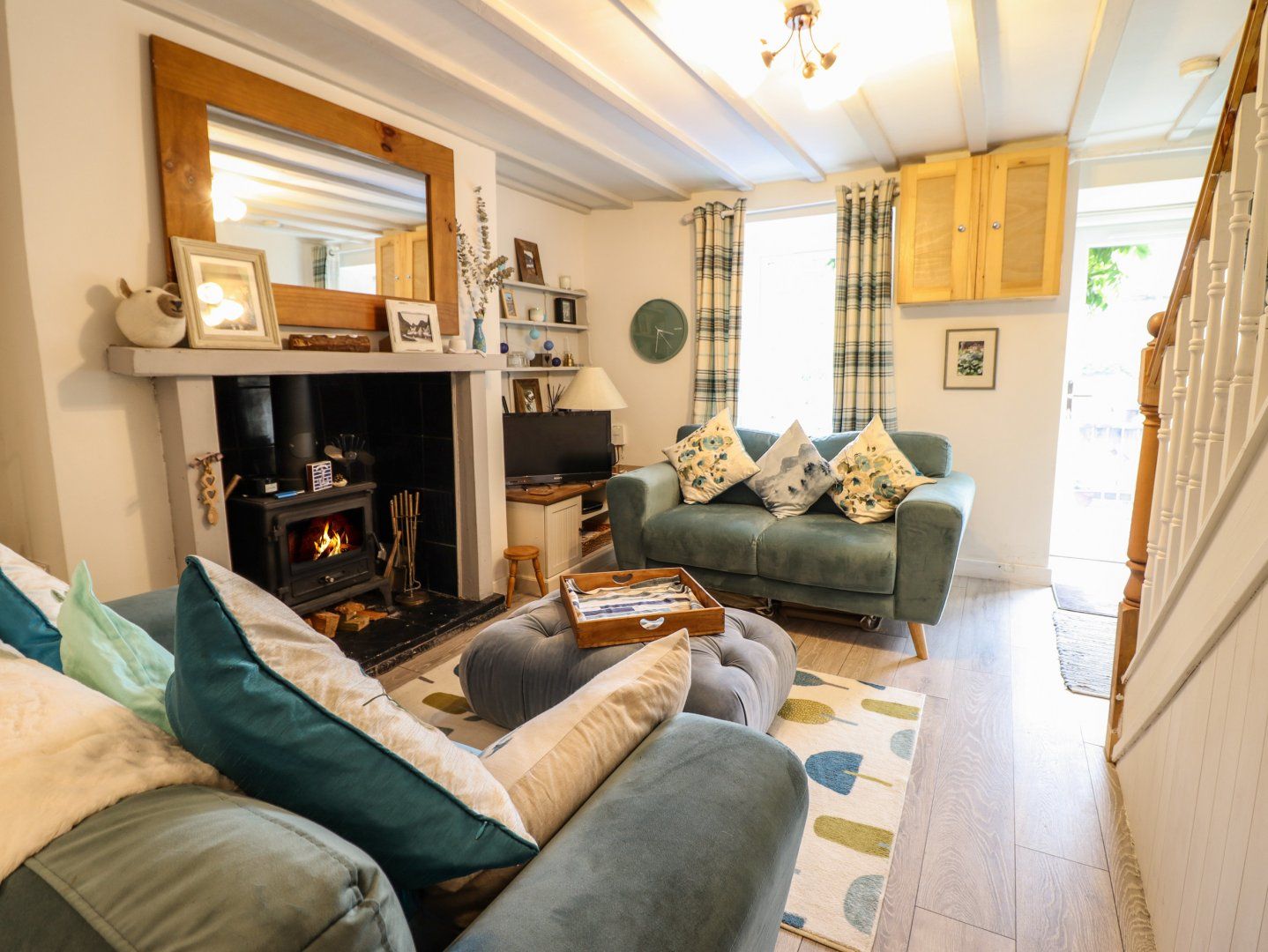 Amenities Electric heating. Electric oven and hob, microwave, fridge/freezer, kettle, toaster, coffee machine. TV, WiFi. Fuel, power and starter pack for woodburning stove inc. in rent. Bed linen and towels inc. in rent. Off-road parking for 1 car. One well-behaved dog welcome. Enclosed front gravelled garden with furniture and enclosed multi-level rear garden with gravelled area, decking, patio and furniture. Sorry, no smoking. Shop and pub 2.2 miles. Note: There are 13 rocky and uneven steps in the rear garden, please take care. Please note: Property can only accommodate 7 day bookings and short breaks from a Saturday to a Saturday. There is no facilities to accommodate outside of these change over days.
