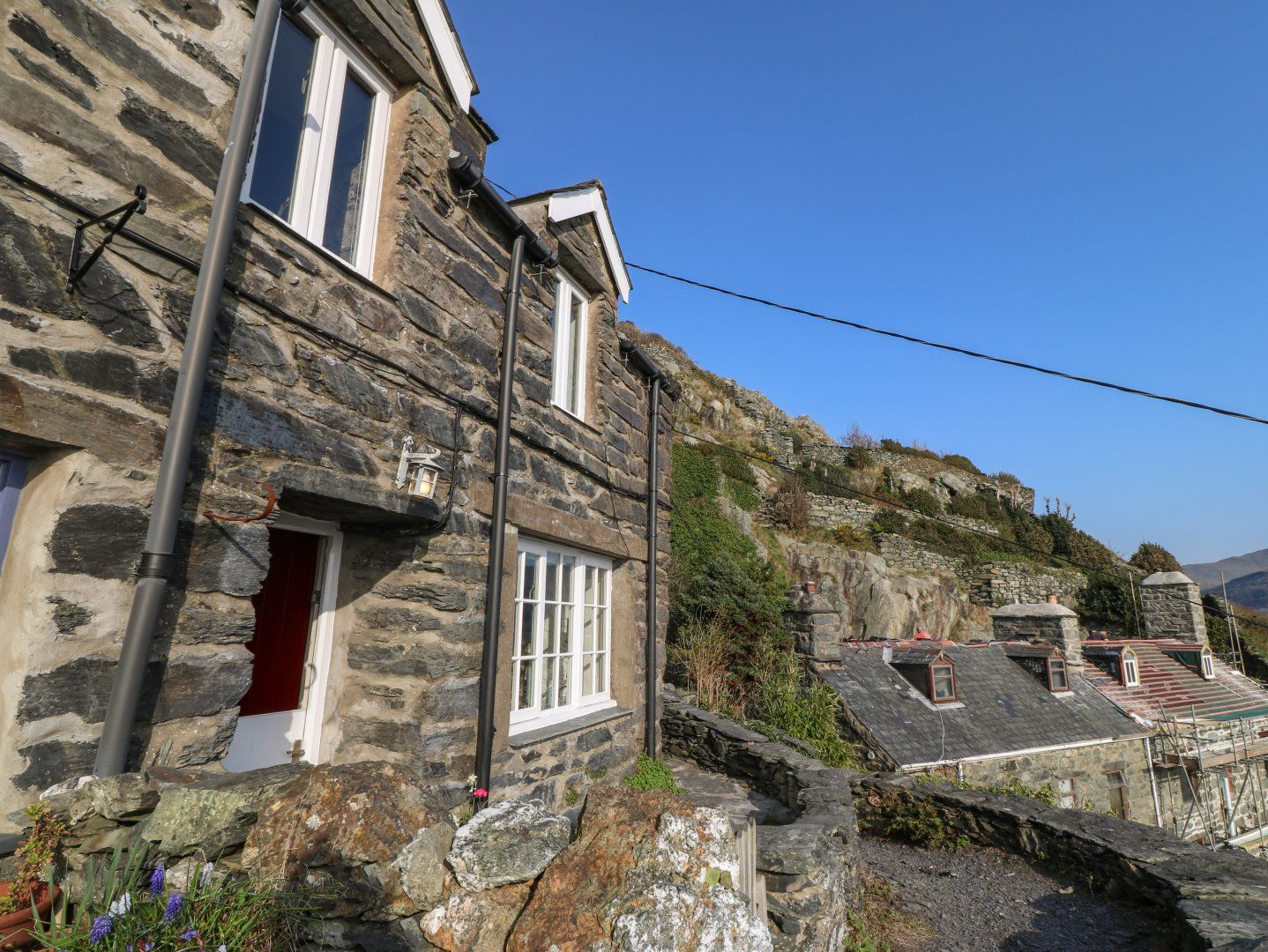 The living area in this delightful, stone-built cottage is open-plan with a kitchen containing an electric oven and hob, fridge with ice box, washing machine and Nespresso coffee maker, dining seating for three, and a sitting area with a TV with Freeview and Sky. The two bedrooms consist of 1 x double and 1 x single, along with a bathroom. Outside, there is a front, multi-level terrace with patio and furniture, and there are public car parks in the town. Within 0.2 miles, there is a shop and pub, and within 0.6, a beach. One well-behaved pet is welcome; however, smoking is not permitted. WiFi, fuel, power, bed linen and towels are all included in the price. 2 Bwth Mawr is a pet-friendly cottage close to Snowdonia for an unforgettable holiday in Wales. Please note the following: There is no parking available or road access to the property. The staircase inside the property is narrow. Property not suitable for children under the age of 6 or persons with limited mobility. The path up to the house is less than a 150 yards from the main street, it is a steep climb however there is an easier route (available in key collection details) Guests can request to have luggage/groceries delivered to the property (due to no car access) for an additional £25 charge Please be aware that this property has a Good Housekeeping Bond £300.