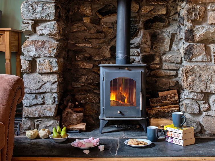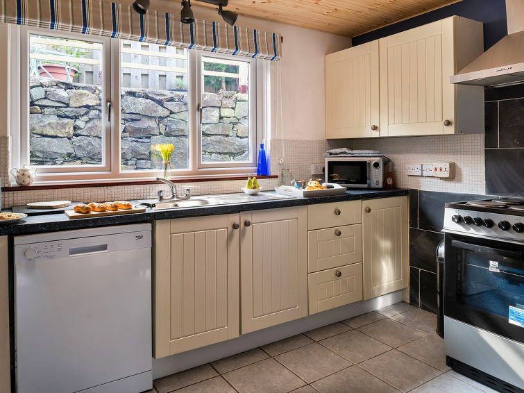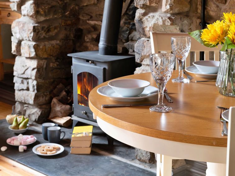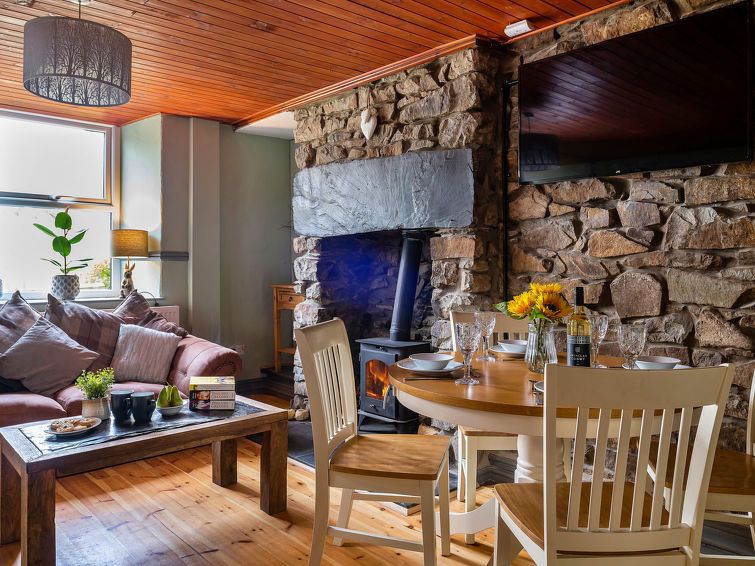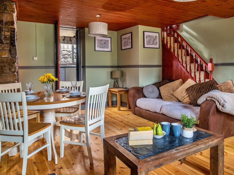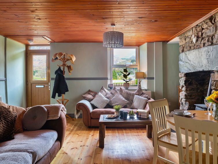 "Maes Neuadd", 3-room house 120 m2. Object suitable for 4 adults. Living room with open-hearth fireplace. 1 room with 1 double bed. 1 room with 1 x 2 bunk beds. Kitchen (oven, dishwasher, toaster, kettle, microwave, freezer). Shower/WC. View of the mountains and the garden. Facilities: washing machine, iron.