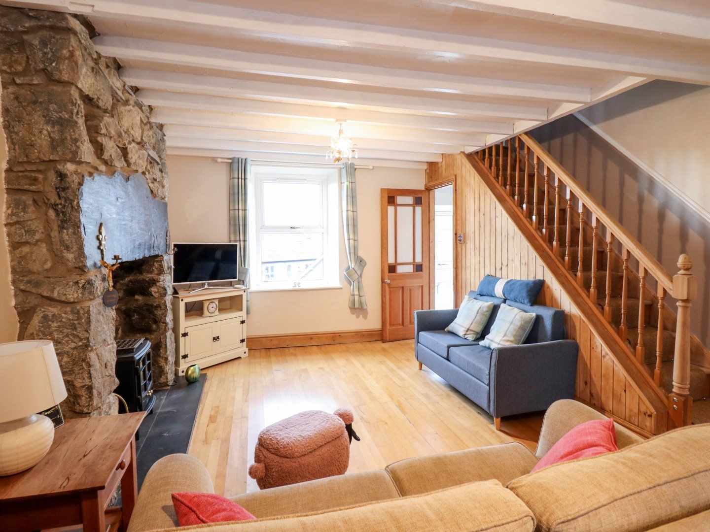 Amenities Gas central heating throughout. Wifi, gas & electricity included. Bed linen and towels included. Roadside parking. Sorry, no pets and no smoking. Town centre with shops 0.5 mile, pub 0.1 miles. Highchair available. Note: Check-in from 16:00 and check-out is 10:00. Note: Steep drops in garden – small children should be supervised at all times
