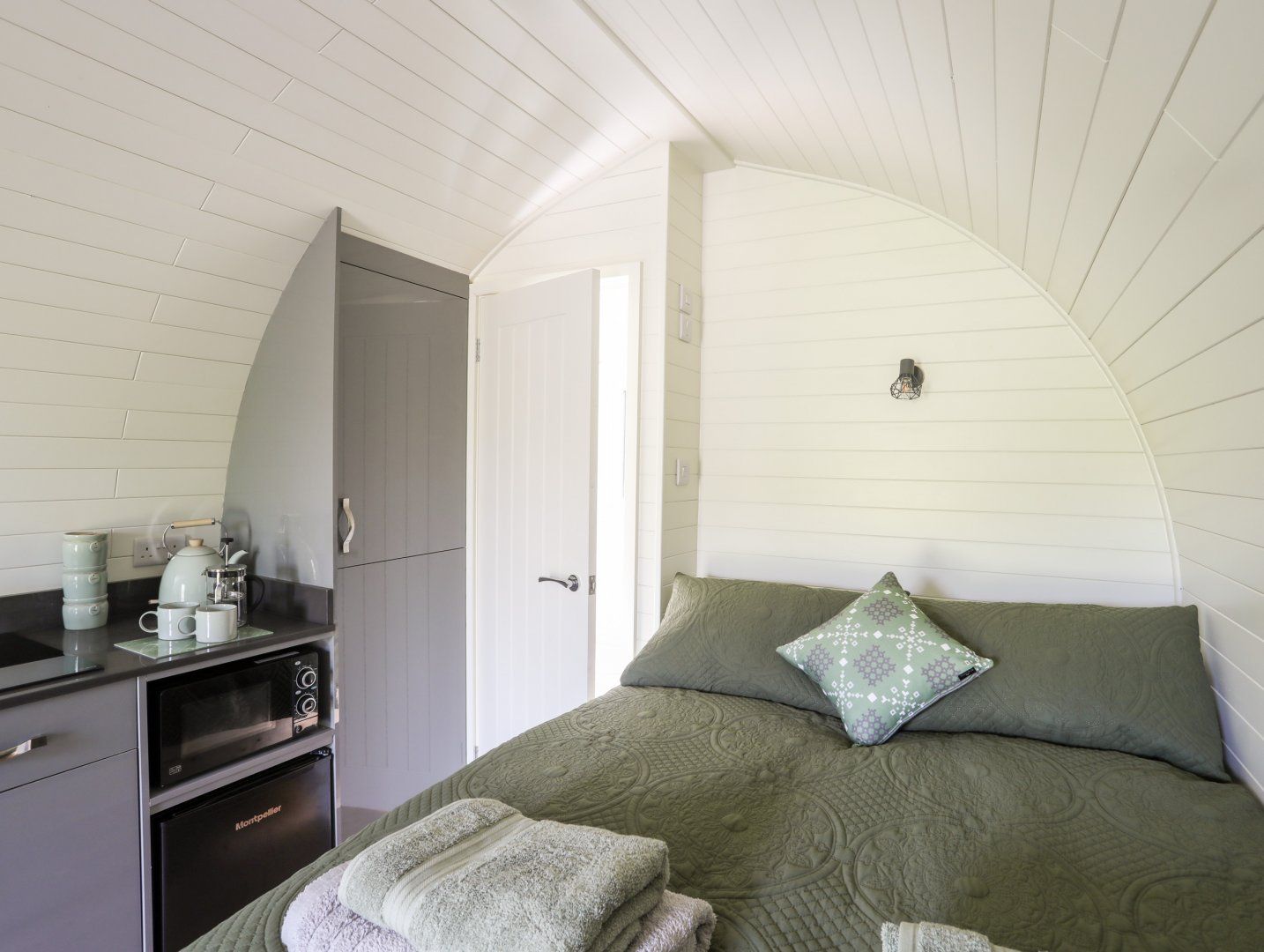 Holiday home The living areas in this single-storey pod consist of a studio-style kitchenette with electric plate hob, microwave, kettle and toaster, a dining area, and a double bed, serviced by a shower room. Outside there is a front patio with furniture, wrap-around lawn, and parking. This is a smoke-free home. Fuel, power, bed linen and towels are all included in the price. You'll find a shop in 0.7 miles and a pub in 0.8 miles. For a romantic break to Gwynedd, book Tyddyn Parthle Pod 1. Note: Check-in from 4pm, check-out by 10am.