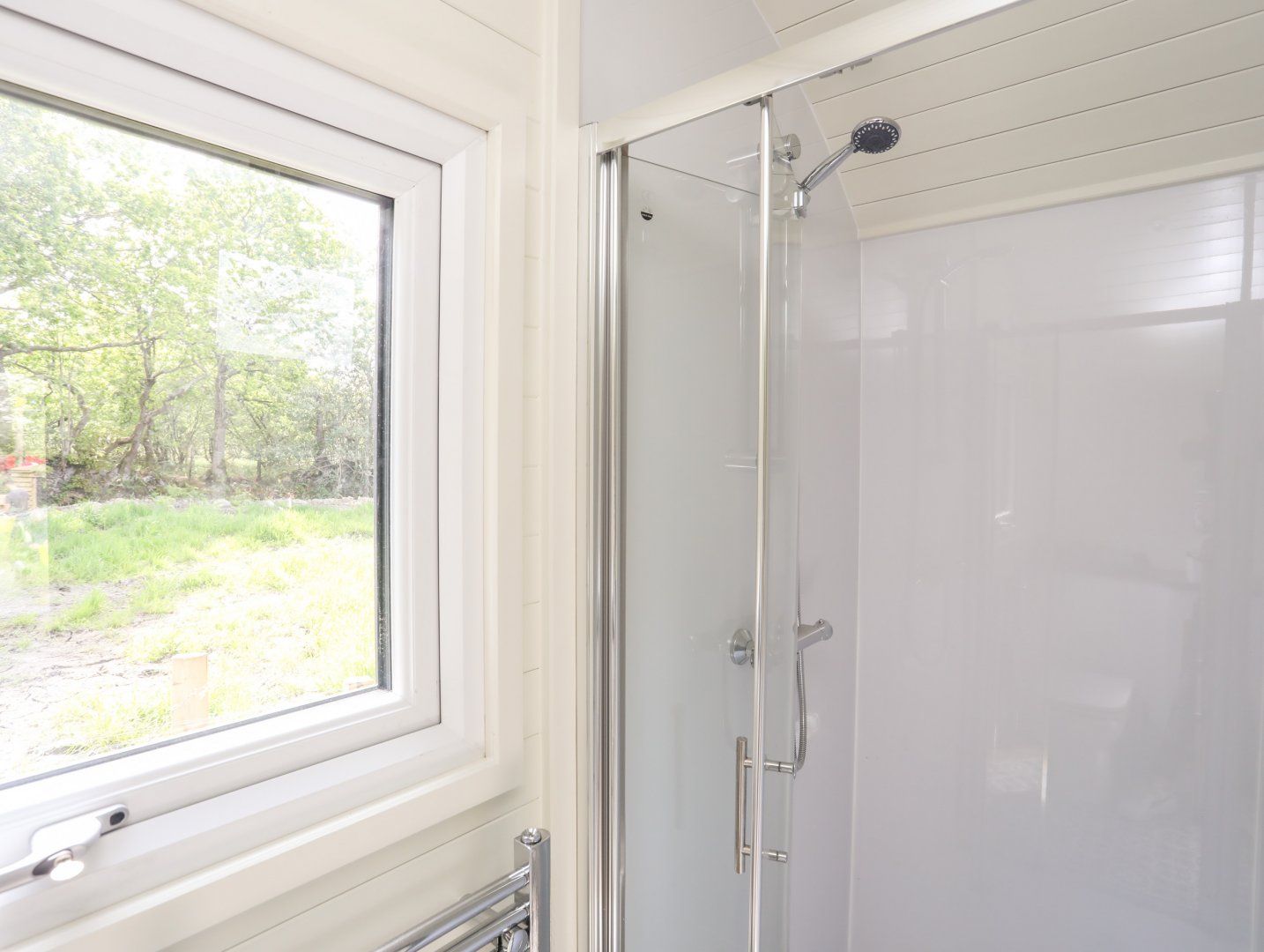 Accomodation Details Single-storey. Studio-style layout with double bed, kitchenette, and dining area. Shower room with walk-in shower, basin, heated towel rail, and WC