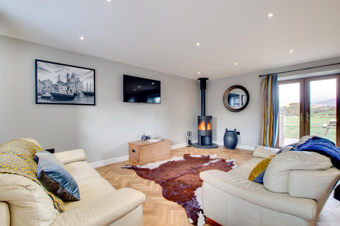 The attention to detail, the handmade kitchen and table, the welcoming log burner and deep oval bath, all complemented by an amazing location between the Snowdonia mountains and North Wales coast. Sea views from the grounds and on a clear day, you can even see the train going up Snowdon.