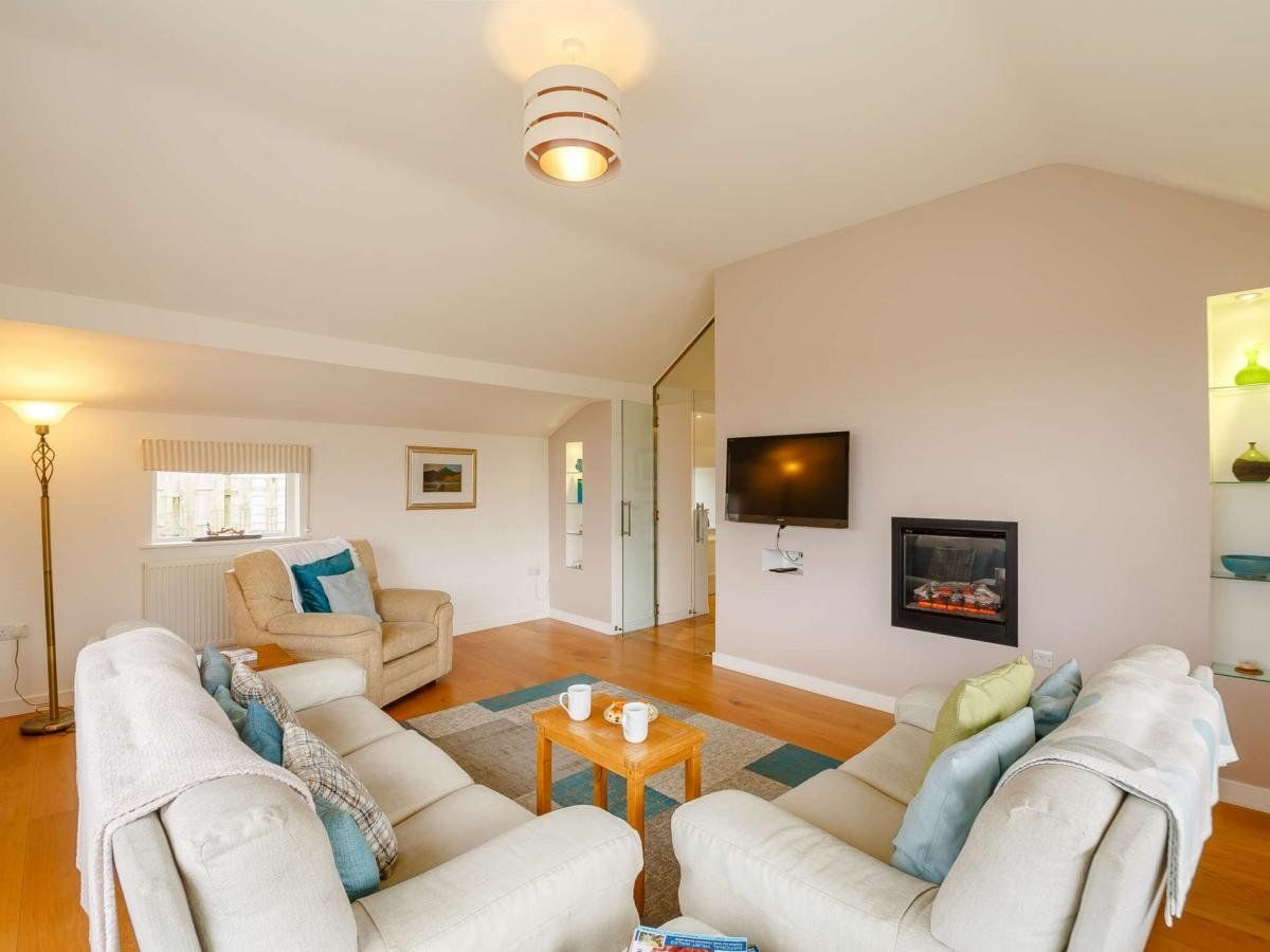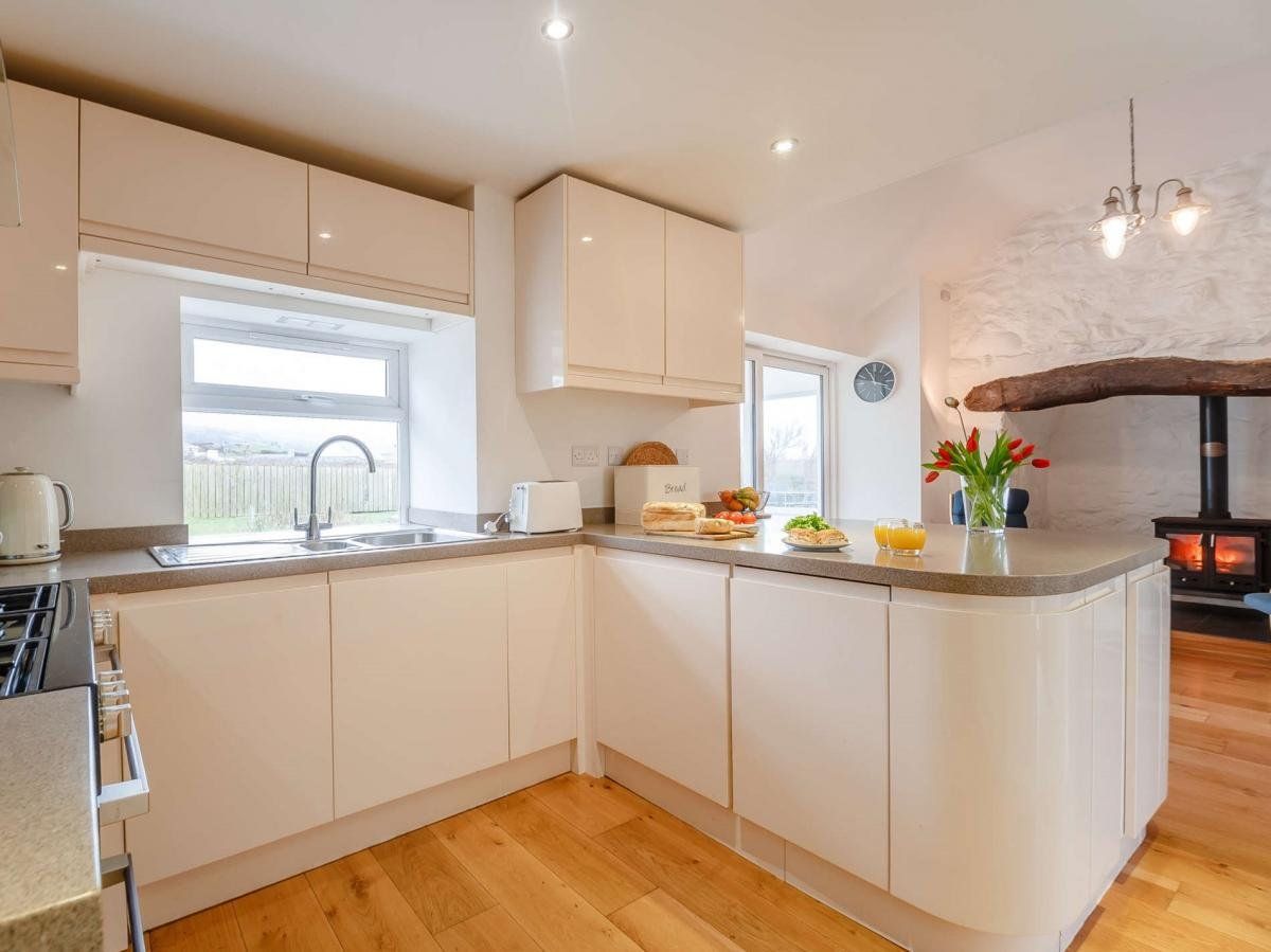 With bright, airy interiors throughout, you’ll be able to truly unwind, be it sat beside the wood burner with a book in hand or sprawled out in the spacious living room. What’s more, the generous garden offers panoramic views of the coast, as well as plenty of lawn for your dogs to stretch their legs.