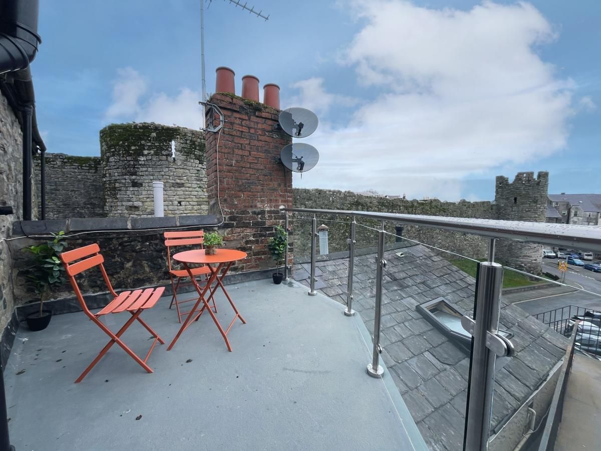 Tucked away in the heart of Caernarfon, perched above Wales' smallest pub, this apartment offers a welcoming retreat for couples seeking a romantic escape, complete with a crackling wood burner in the cosy living space and a roof terrace overlooking the town.