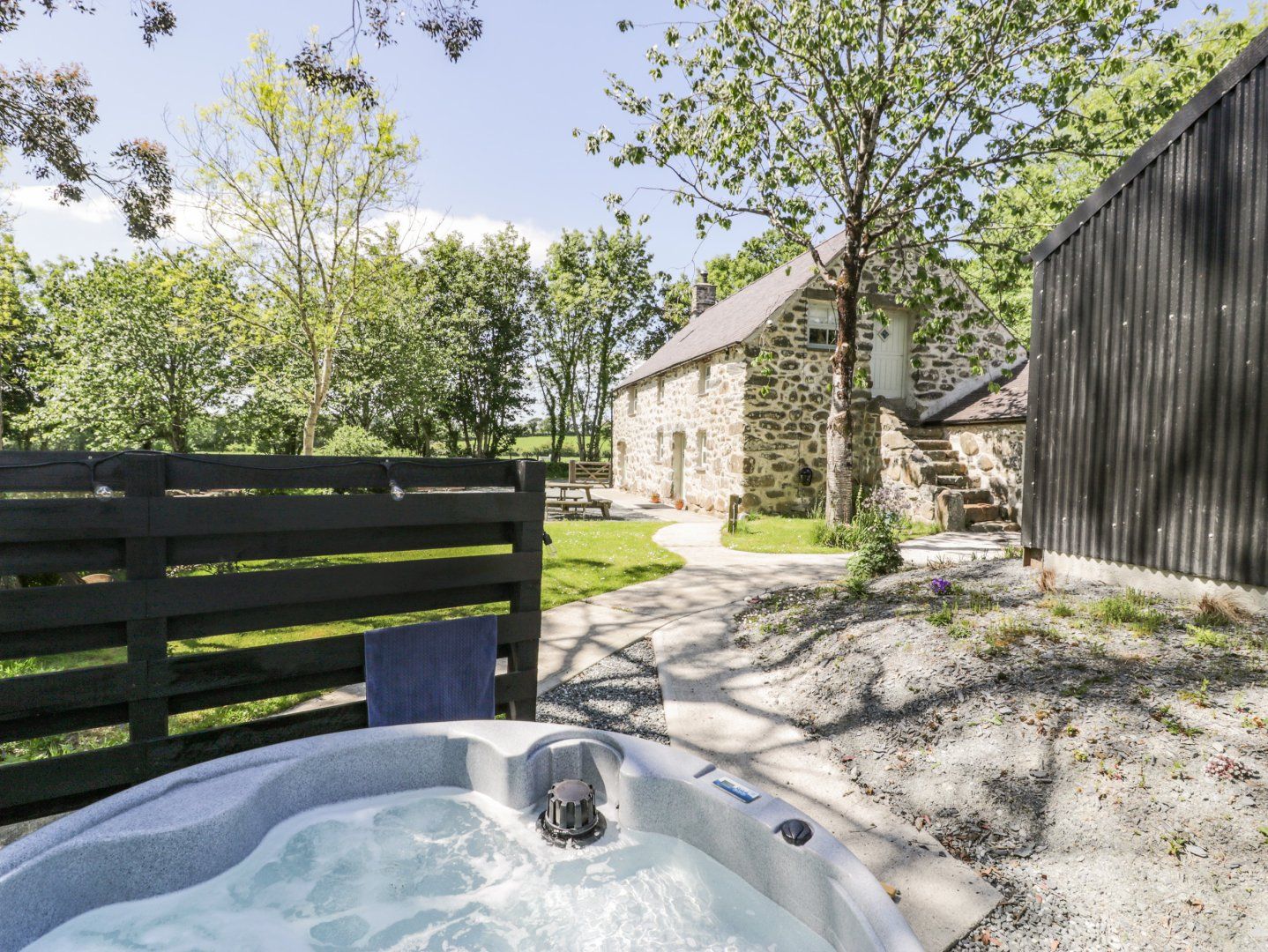 The living areas in the property consist of a kitchen with electric double oven and grill, induction hob, microwave, fridge/freezer, washer/dryer, dishwasher, and living/dining room with dining seating for eight people, a Smart TV, DVD player and a woodburning stove. The bedrooms consist of a king-size, two doubles and a ground-floor twin, along with a ground-floor bathroom and a shower room. Outside, there is an enclosed garden with lawn, patio, furniture, hot tub, barbecue, as well as ample off-road parking with electric car charging point. Within 2 miles, you will find a shop, and within 1.8 miles, a pub, and please note that this is a non-smoking property. WiFi, fuel, power, bed linen and towels are all included in the price. A hairdryer is provided. Highchair, travel cot and stairgate available. One well-behaved dog welcome. Note: The garden is enclosed but not secure. Note: Please bring own bedding for use of the travel cot. Add a touch of character to your North Wales escape with a stay at The Stables.
