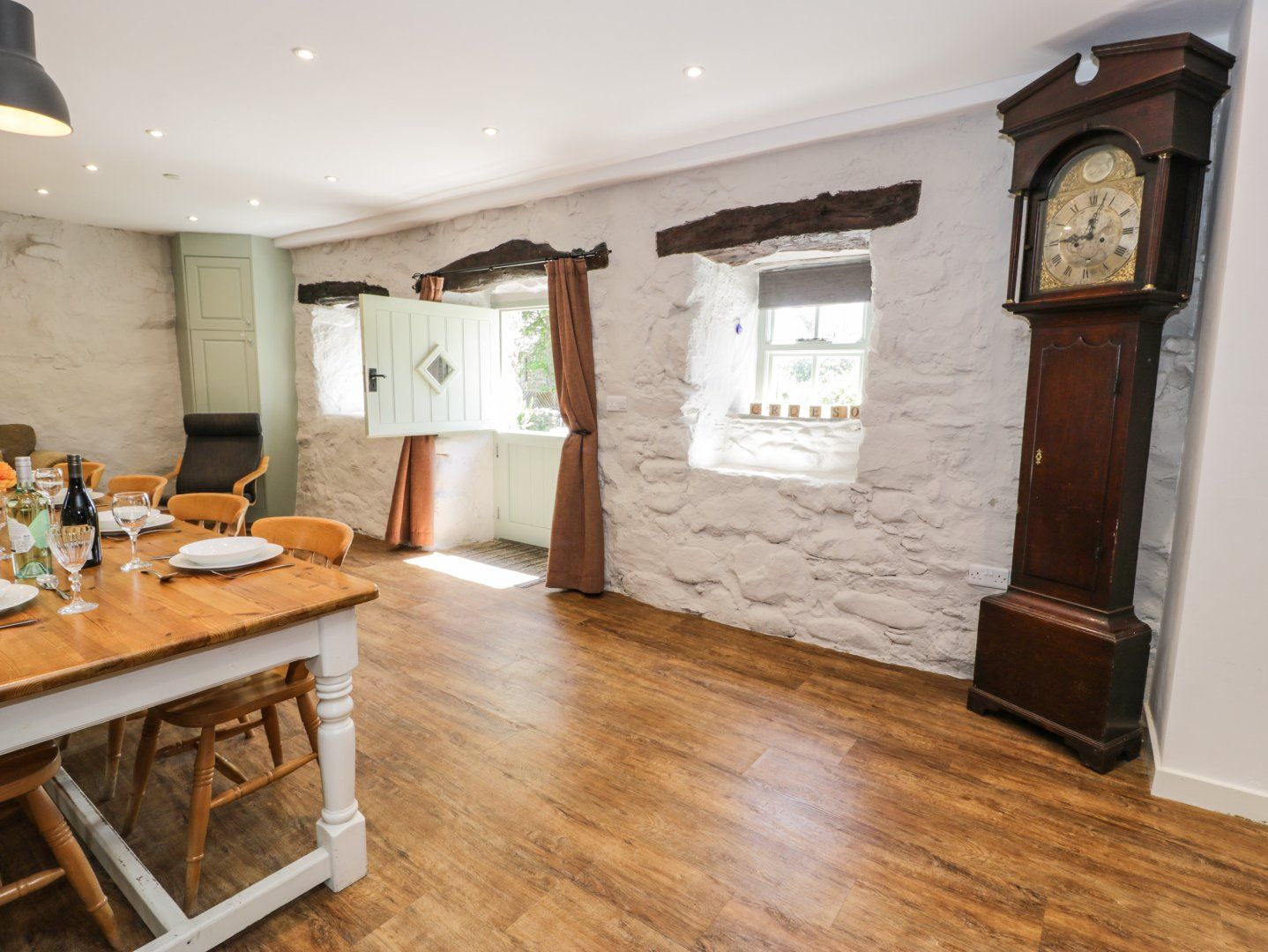 Oil central heating with underfloor heating on the ground floor. Electric double oven and grill, induction hob, microwave, fridge/freezer, washer/dryer, dishwasher, hairdryer. Smart TV, DVD player, WiFi. Fuel, power and starter pack for woodburning stove inc. in rent. Bed linen and towels inc. in rent. Highchair, travel cot and stairgate available. Ample off-road parking with electric car charging point. Enclosed garden with lawn, patio, furniture, hot tub, barbecue. Two well-behaved dogs welcome. Sorry, no smoking. Shop 2 miles, pub 1.8 miles, beach 2.3 miles. Note: The garden is enclosed but not secure. Note: Please bring own bedding for use of the travel cot
