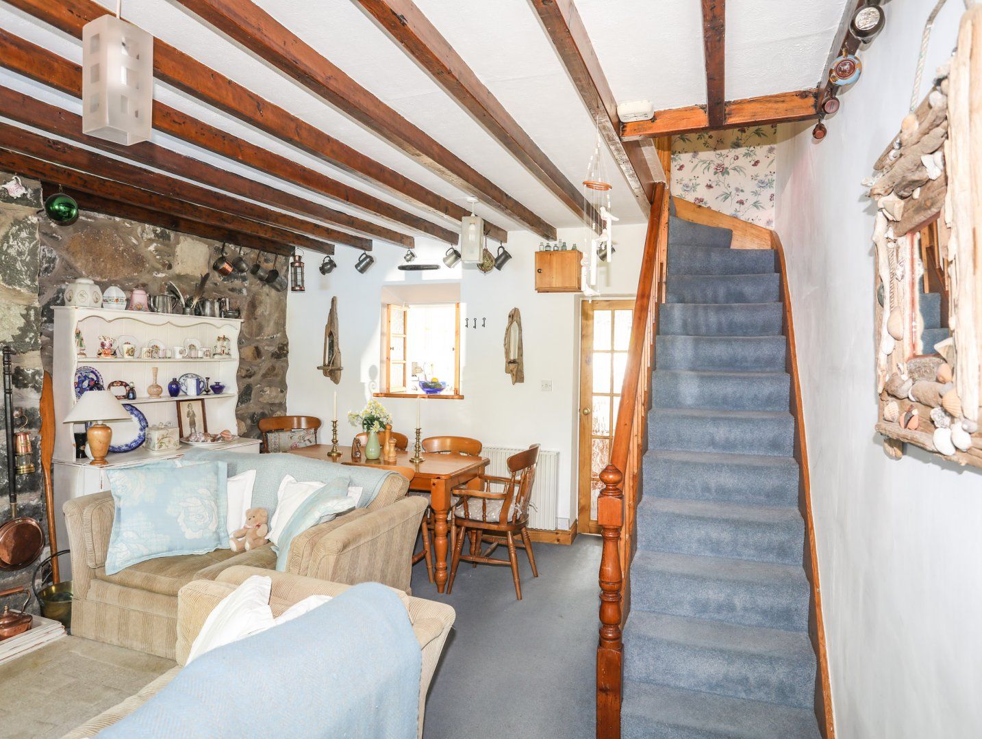 Storage heaters. Electric oven and hob, microwave, fridge, washing machine. TV and WiFi. Fuel and power inc. in rent. Bed linen and towels inc. in rent. Two travel cots available x 1 highchair and stairgate. Off-road parking for 1 car, additional roadside parking available. Two well-behaved dogs are welcome. Enclosed, multi-tiered garden to rear. Sorry, no smoking. Shop 1.4 miles, pub 0.1 miles. Note: Check-in from 4pm, check-out by 10am. Note: There are steps in the garden; please take care. Note: There is £150 good housekeeping bond