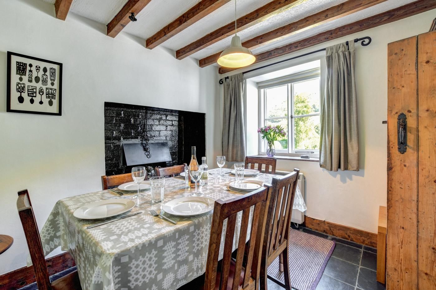 This detached cottage is located in a small rural hamlet and boasts a large private garden and a mix of traditional and modern decor. Enjoy the scenic views along mountain roads and absorb the fresh air along mountain and countryside walks.