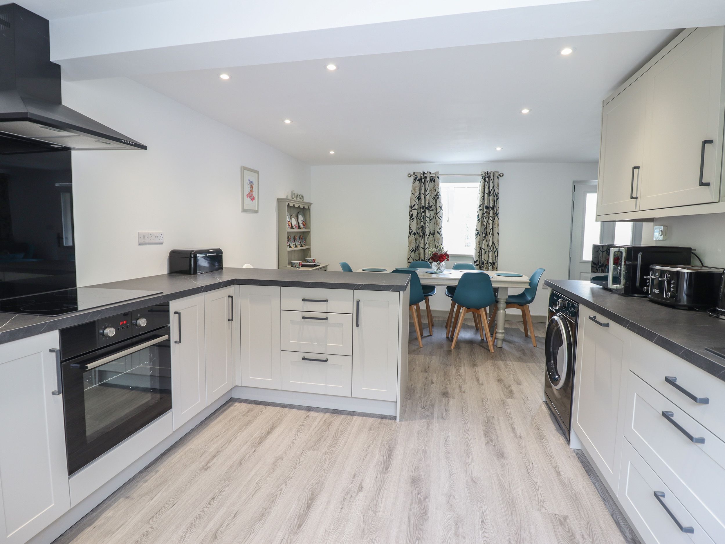 Accomodation Details Three bedrooms: 1 x king-size, 1 x double, 1 x twin. Bathroom with bath, walk-in shower, basin, heated towel rail and WC. Cloakroom with basin and WC. Open-plan living space with kitchen, dining area and sitting area with woodburning stove