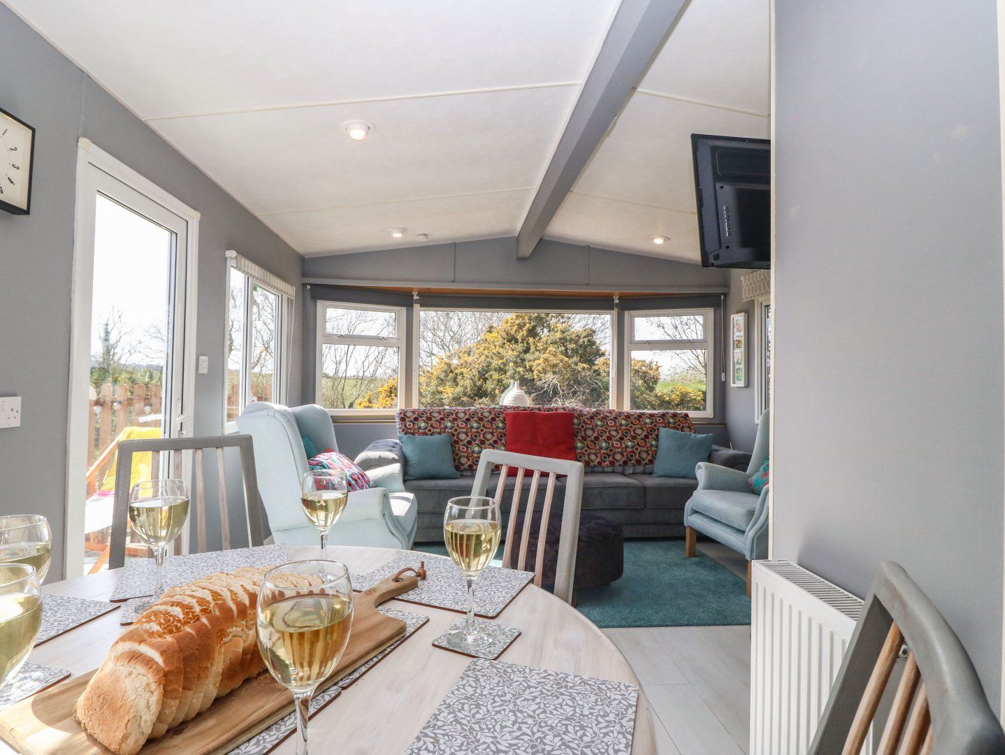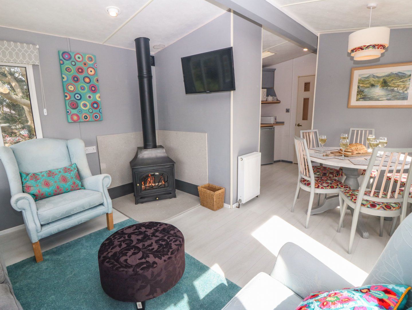 The living areas in this single-storey lodge consist of an open-plan kitchen, dining area and sitting area with a gas oven and hob, microwave, and fridge, and a gas fire and a Smart TV. The bedrooms consist of a double, and two twins, serviced by a shower room. Outside there is a front lawn, with an elevated patio with picnic bench, and a private driveway. One well-behaved dog welcomed, but sorry, no smoking. Fuel, power, bed linen and towels are all included in the price. You'll find a shop in 3 miles and a pub in 2.3 miles. Treferwyn Caravan is a wonderful base for a rural break to Gwynedd. Note: There are steps up to the lodge. Note: This property does not have WiFi. Note: The field next door houses horses. Note: This property has a 4-night minimum stay policy.
